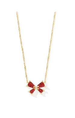 Blair Bow Small Short Pendant Necklace in Gold Bright Red Drusy