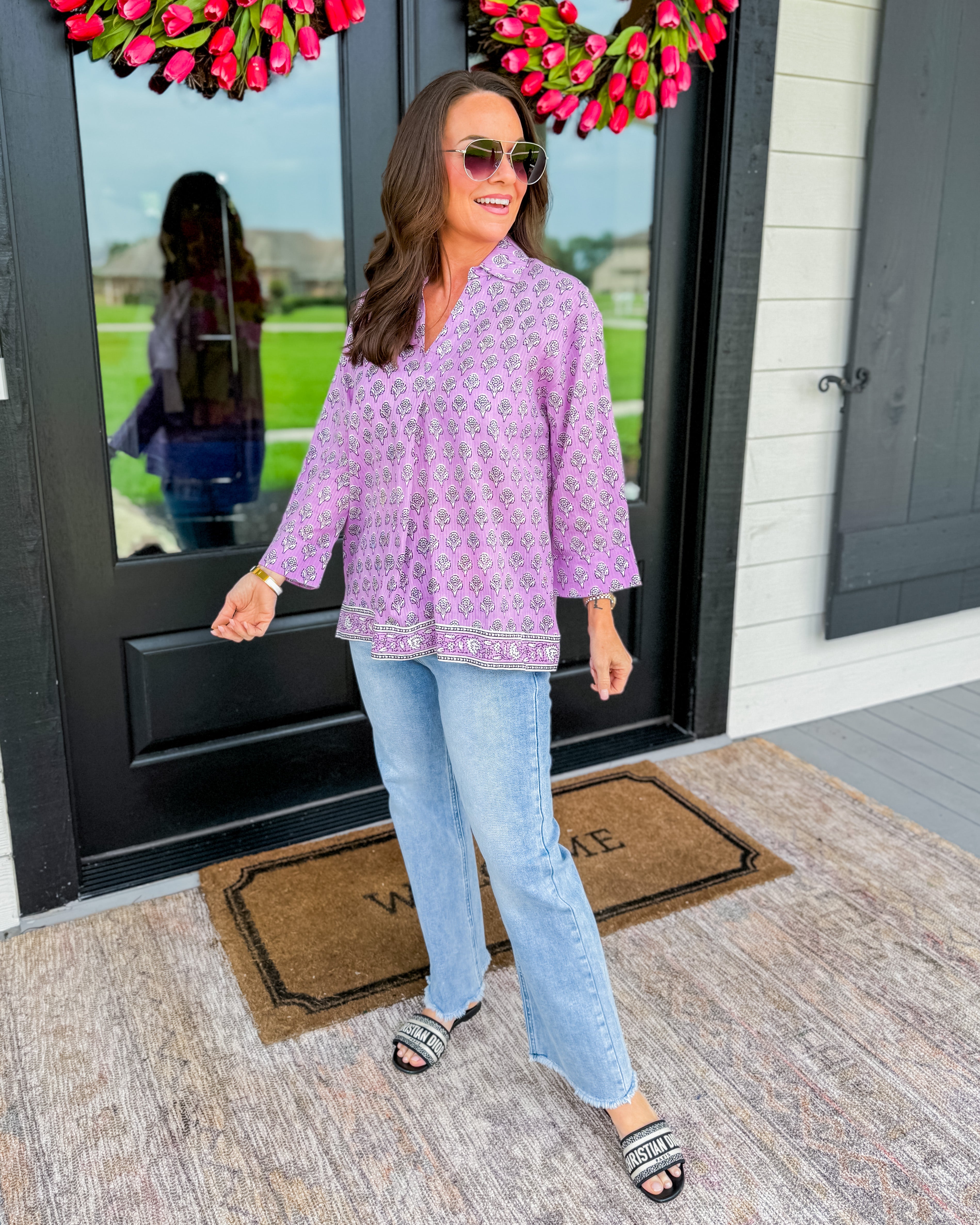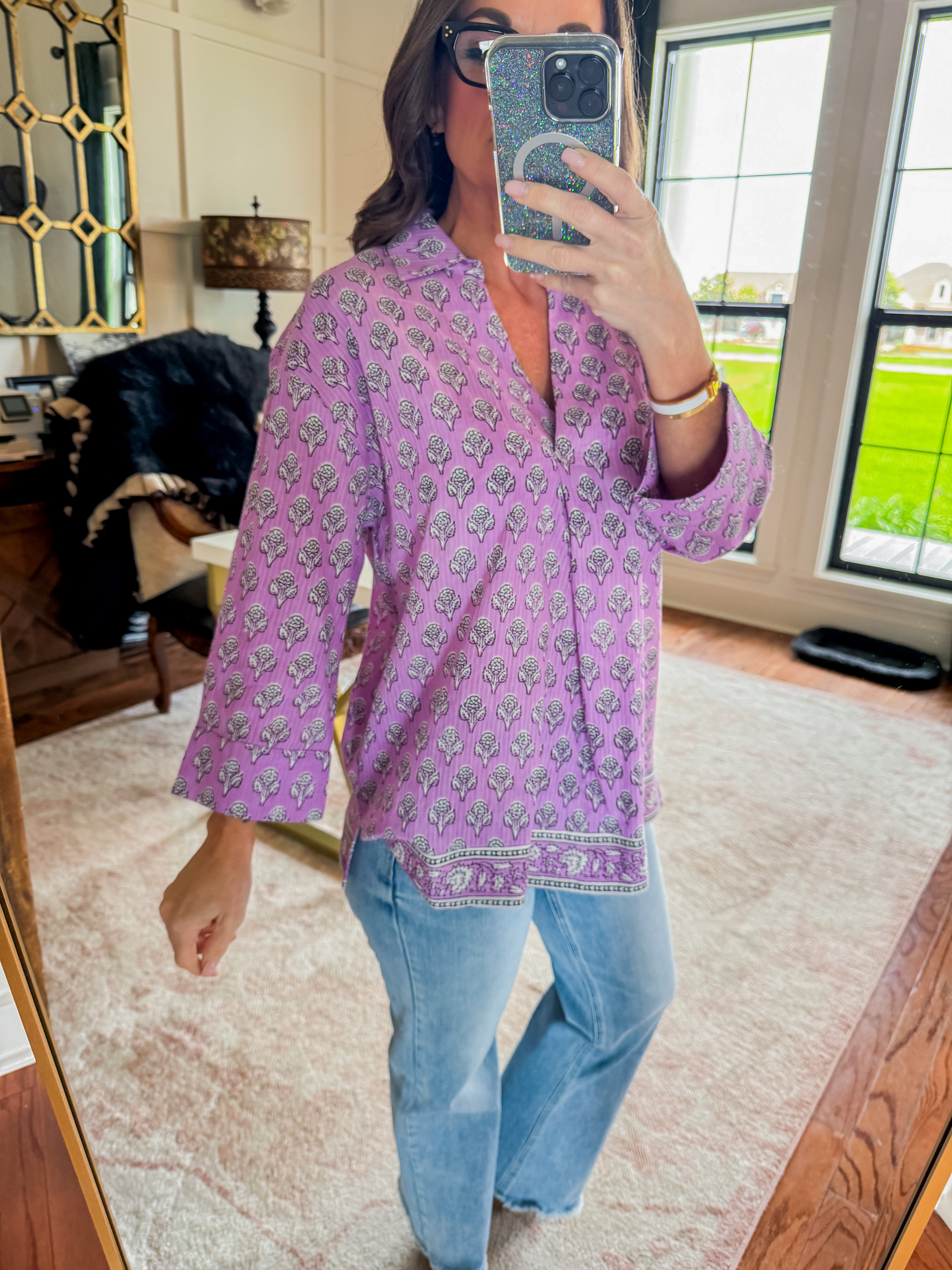 Block Print Shirt in Lavender | Ivy Jane