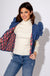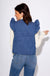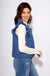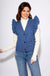 Add a playful yet polished layer to your wardrobe with this denim quilted vest. Featuring a stitched pattern, ruffle shoulder accents, and a flattering V-neck, it’s designed with a front button-down closure and convenient side pockets. Fully lined for comfort and warmth, this versatile piece elevates any outfit from casual to chic.
