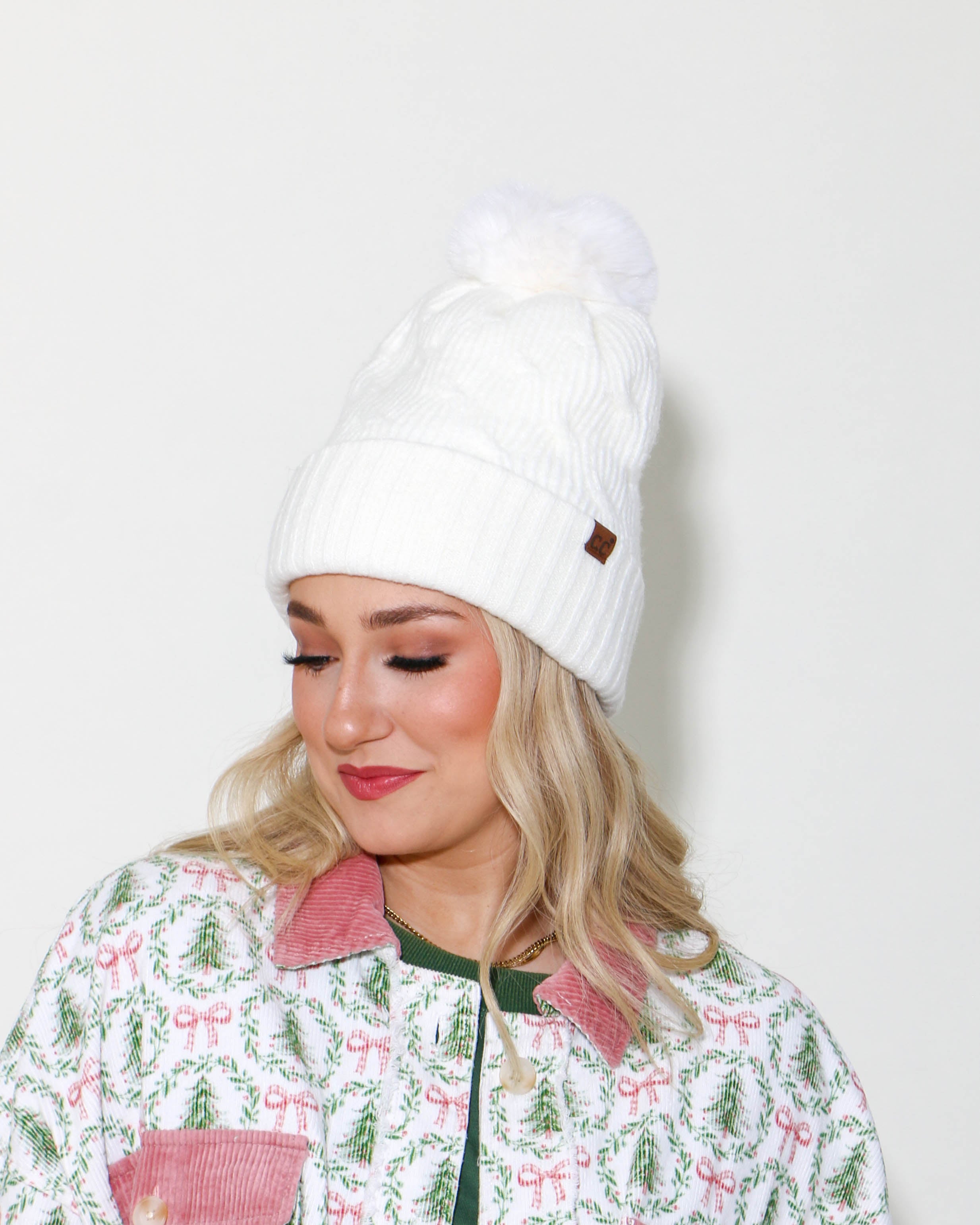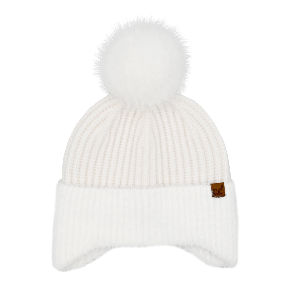 Stay warm and stylish this winter with the CC Fur Earflap Pom Beanie. Crafted with soft fur and a cozy earflap design, this beanie will keep you toasty in the cold. The playful pom adds a touch of fun to any outfit. Perfect for outdoor adventures or a fashionable accessory, this beanie is a must-have for the season.