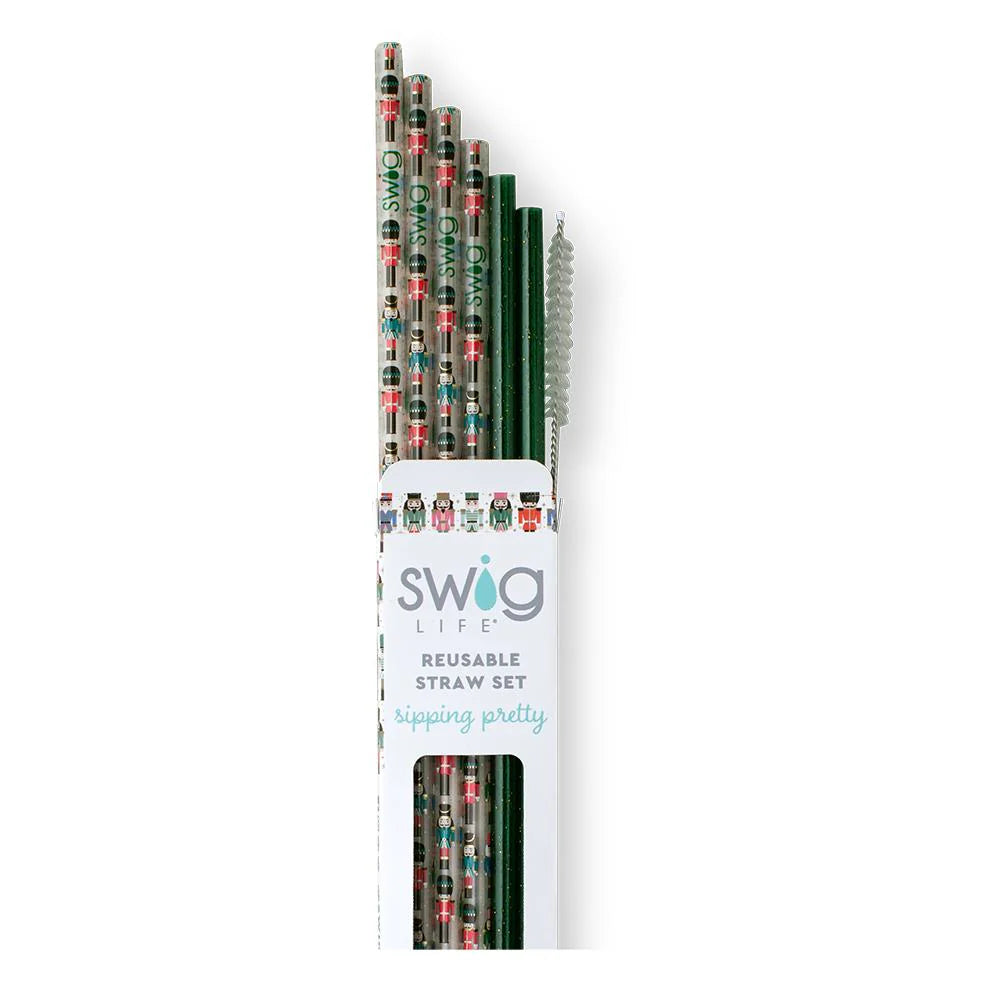 Classic Nutcracker + Green Glitter Reusable Straw Set