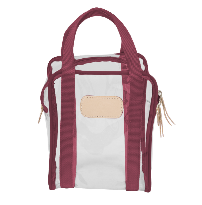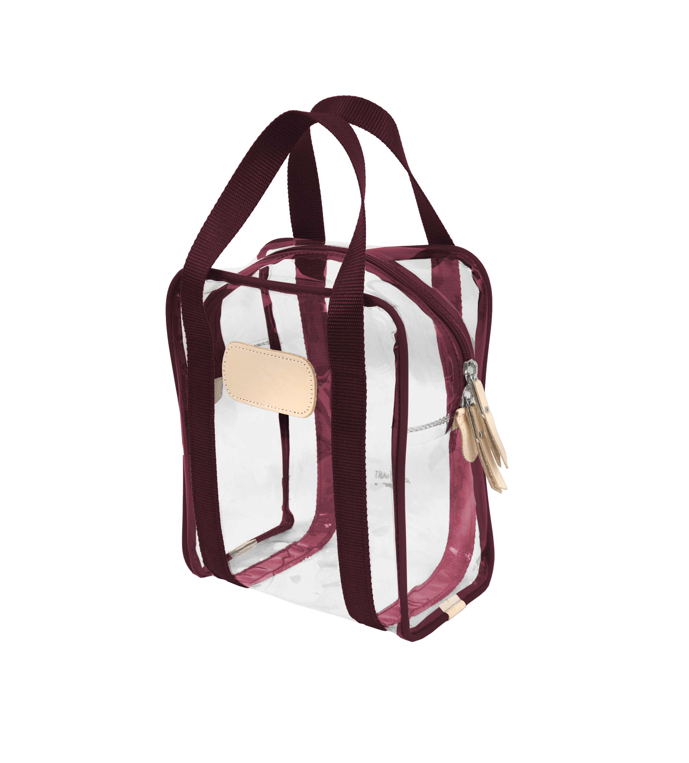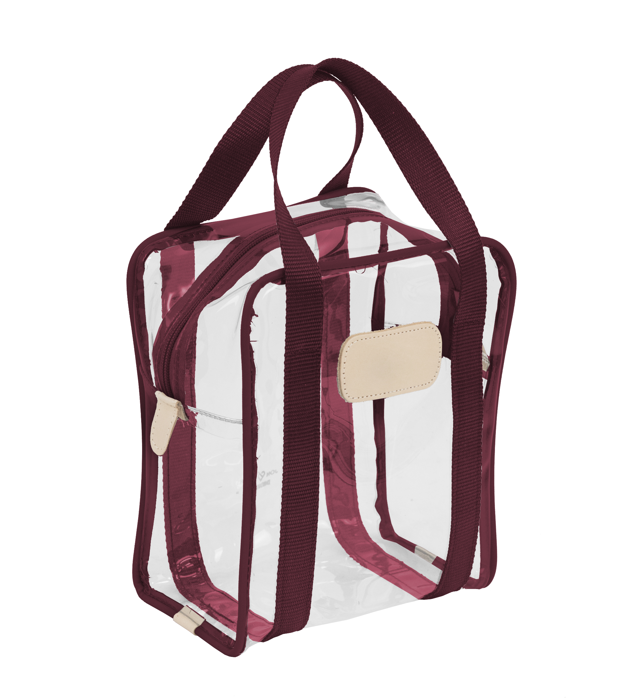 - Clear Plastic material with Vinyl Trim and a Natural Leather Patch