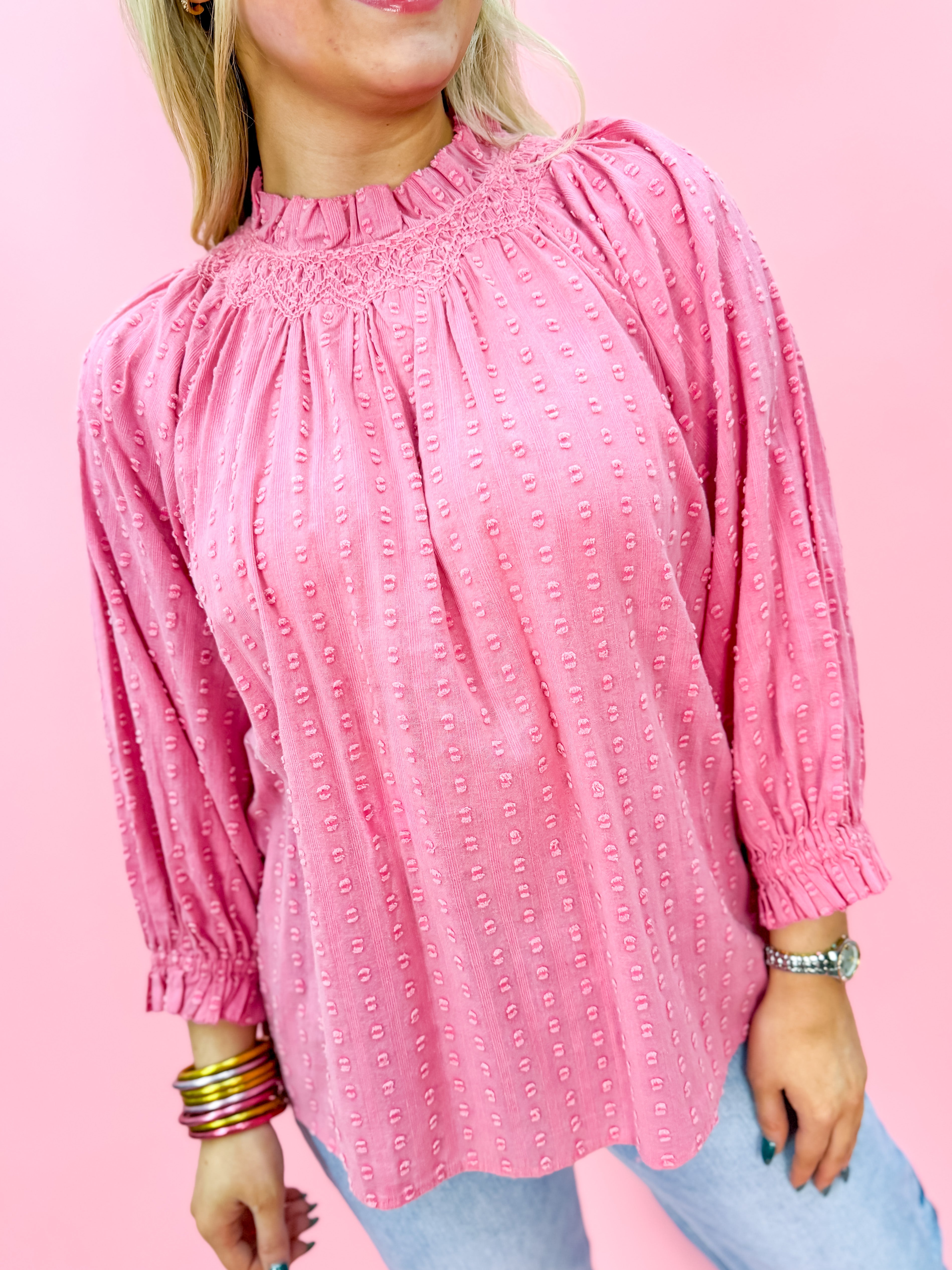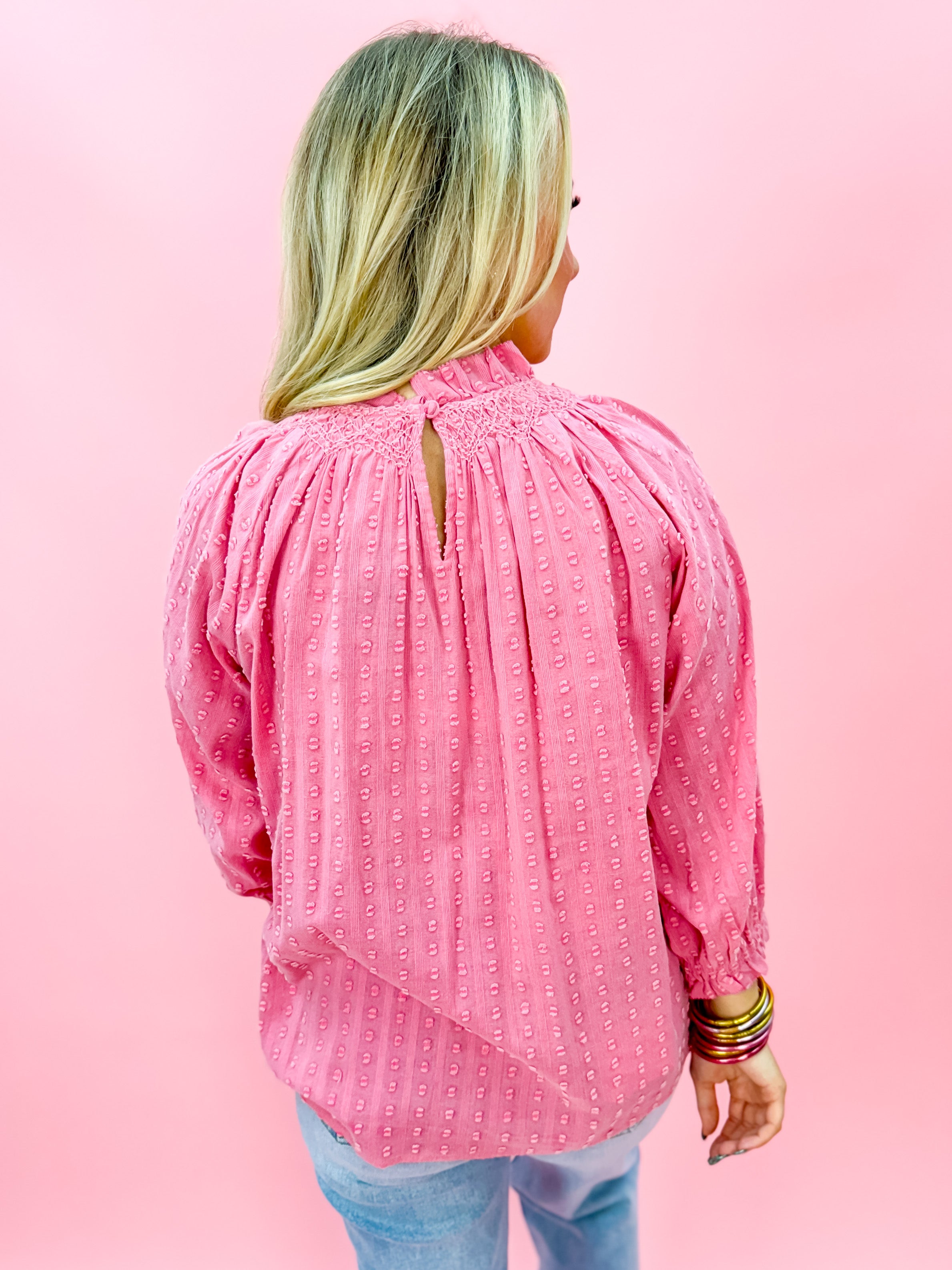 Elevate your style with our exquisite Clip and Stripe Top in Pink. This textured masterpiece is designed for those who appreciate the finer details and embrace sophistication in their attire. The pink hue of this top exudes charm, making it a perfect choice for a variety of occasions. Crafted from textured fabric, this top adds depth and visual interest to your outfit, ensuring you stand out with impeccable style.