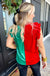 Introducing the Color Block Velvet Ruffle Sleeve Top, a must-have addition to your wardrobe! This beautifully designed top features a trendy color block pattern and luxurious velvet material. The ruffle sleeves add a touch of femininity and elegance, making you stand out from the crowd. Elevate your style with this statement piece!
