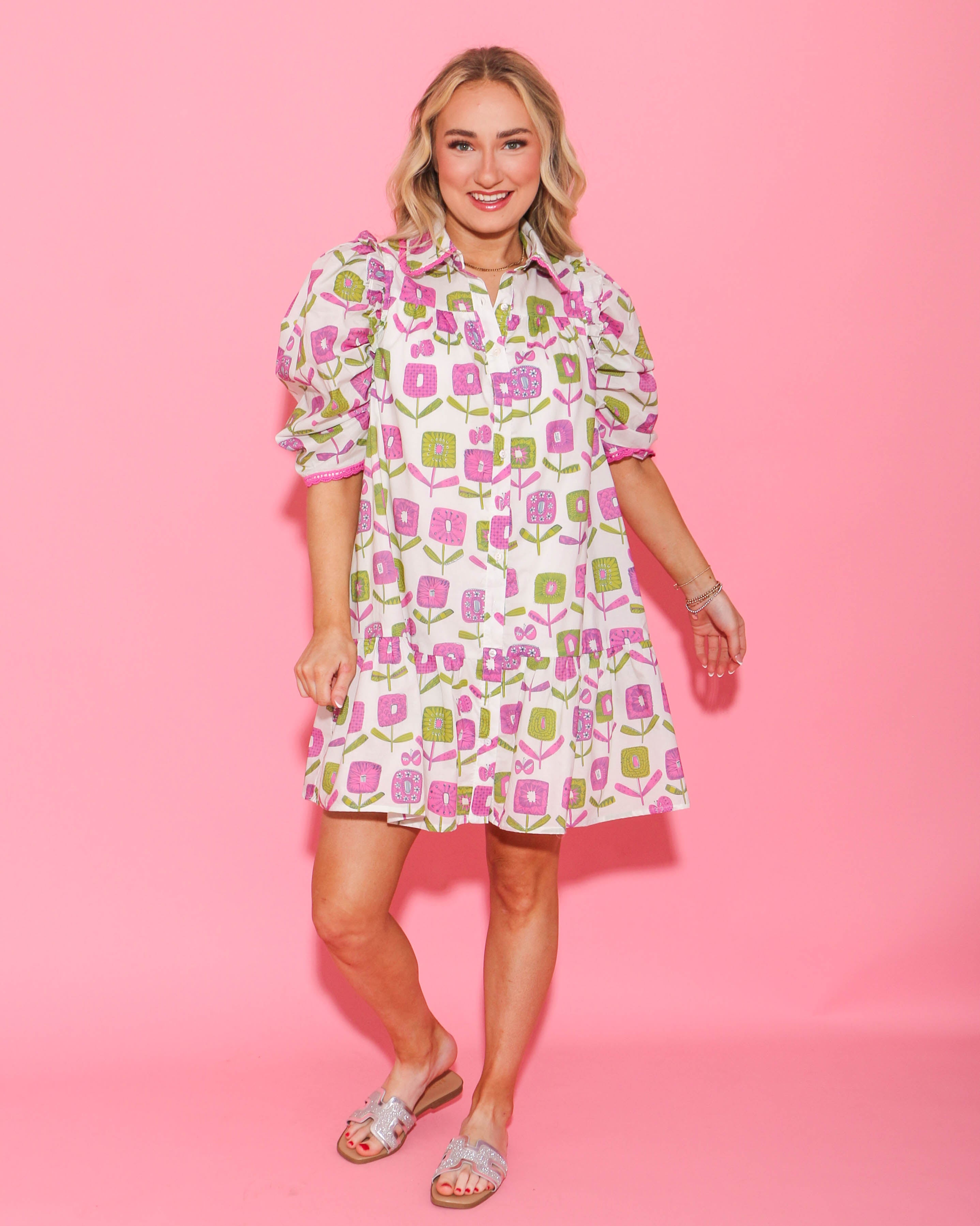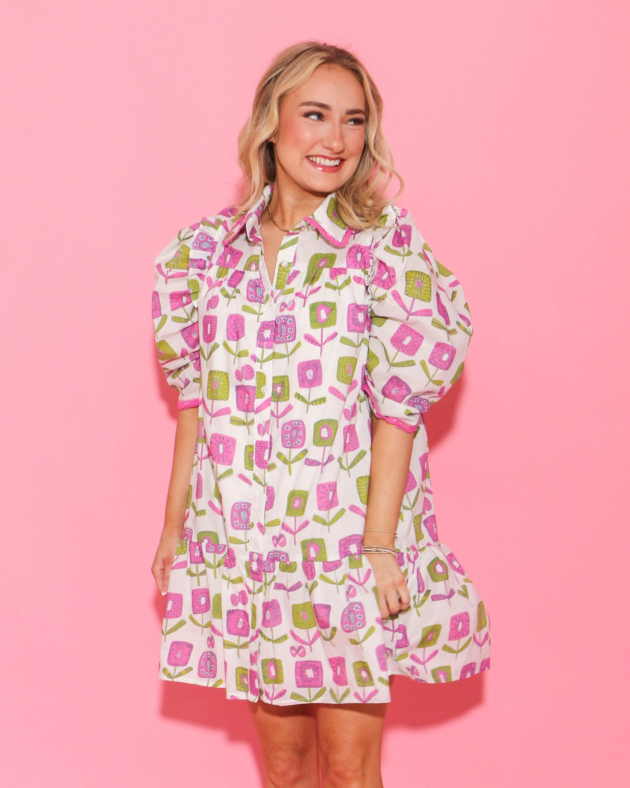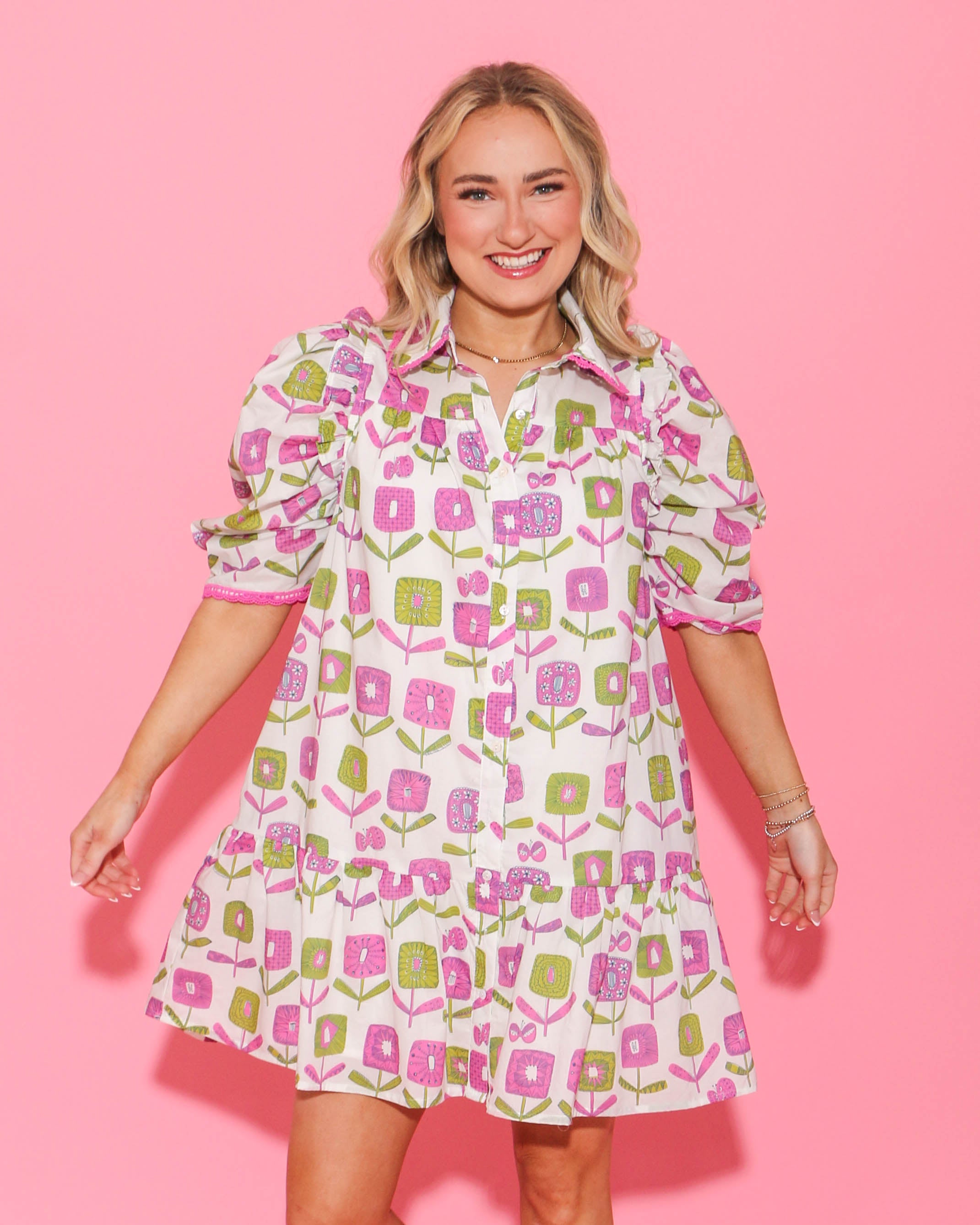 This Pink and Green Flowers Dress is a stunning addition to any wardrobe! With its beautiful floral design and vibrant color combination, you'll feel confident and stylish wherever you go. Perfect for both casual and formal occasions, this dress is sure to impress. Make a bold statement with this must-have piece!