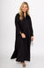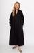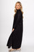 This solid, woven midi dress offers a lightweight and comfortable fit with a high neck and button-down front. Designed with three-quarter length sleeves, a flattering v-neck, and side pockets, it combines style and practicality effortlessly. Fully lined and non-sheer, it provides modest coverage while maintaining breathability for all-day wear. Perfect for any occasion, this dress delivers both elegance and ease.