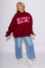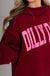 Flip your style with the 'Dilly Dally' reversible mockneck sweatshirt—a cozy essential that works double duty. Crafted from the softest fleece, this oversized pullover features a mock-neck, drop shoulders, and long sleeves for effortless comfort. One side showcases bold burgundy with bright pink lettering for a playful pop of color, while the reverse offers a clean, solid look. Rib-banded cuffs and hemline keep everything in place.