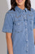 This Western-inspired denim mini dress blends classic style with everyday ease. Crafted in a timeless blue denim wash, it features a collared neckline and short sleeves for a polished yet relaxed look. The stitched western yoke detail adds a touch of vintage charm, while the button-down front makes it easy to wear and style. Designed with a flattering mini length, this versatile dress pairs perfectly with boots, sneakers, or sandals for effortless day-to-night styling. A true closet staple you’ll reach for season after season.