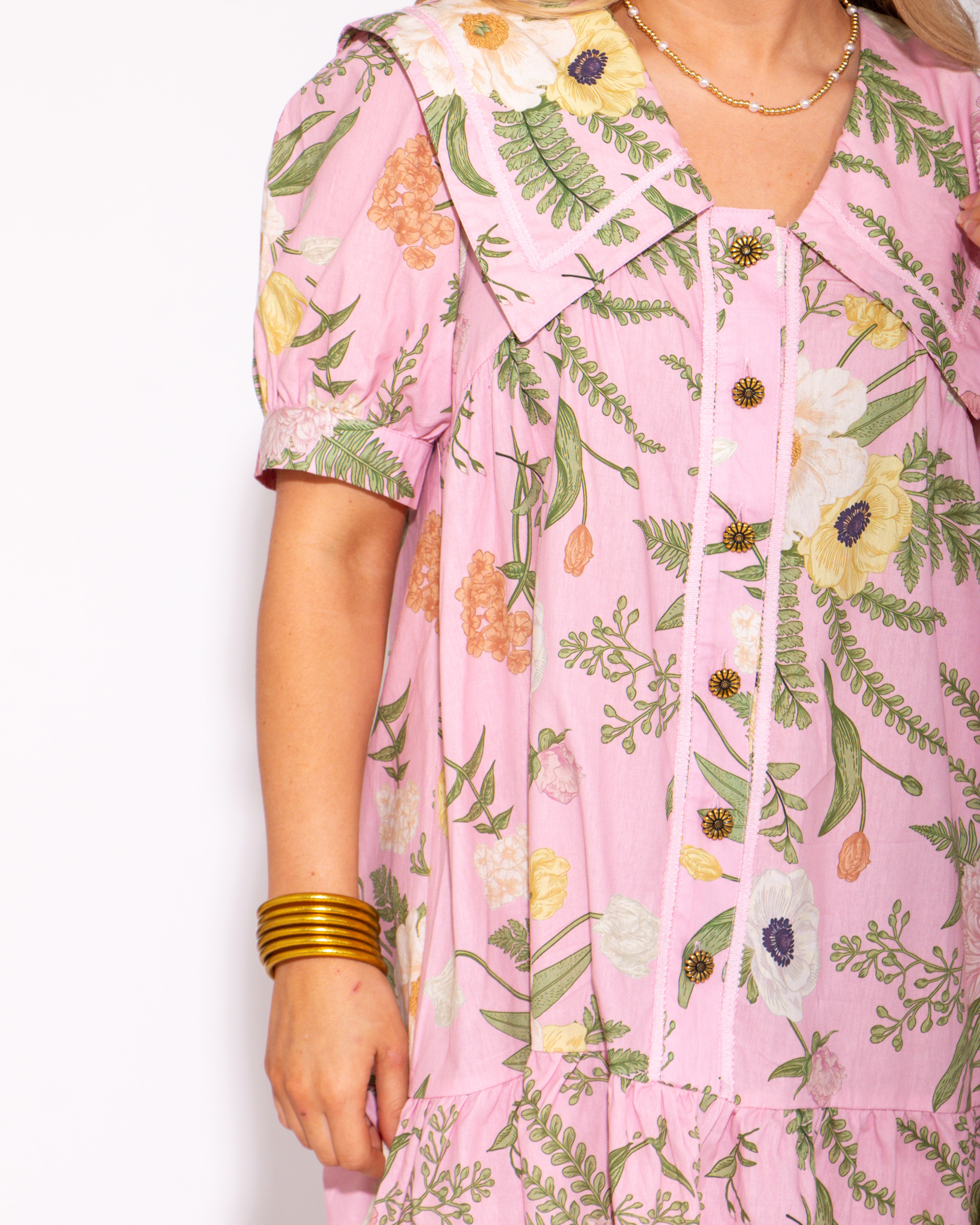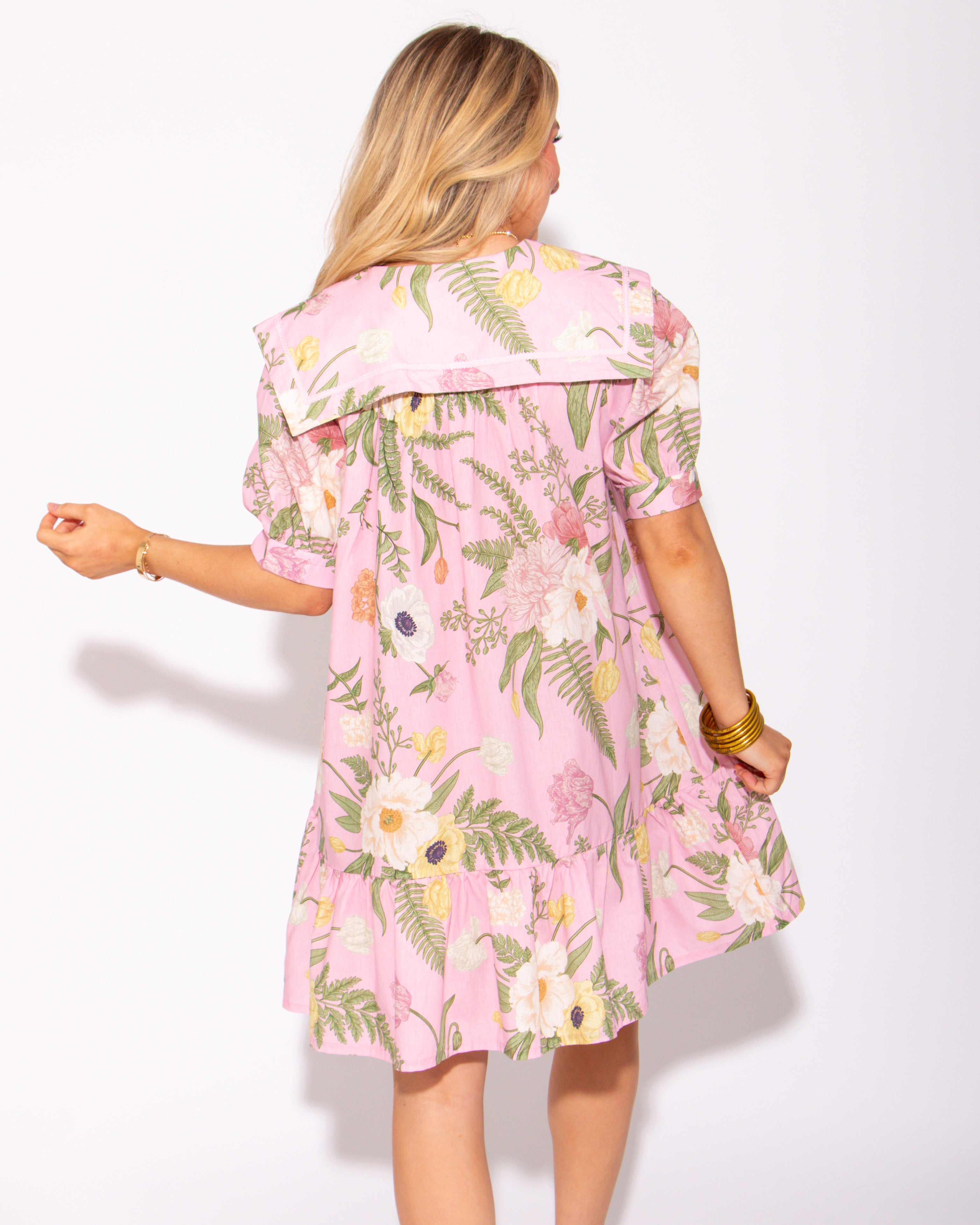 Elevate your style in our Floral Button Detailed Mini Dress. The vibrant floral print and sailor collar add a touch of whimsy, while the trim details give a sophisticated look. Perfect for any occasion, this mini dress is a must-have addition to your wardrobe.