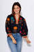 Floral Contrast Trim Puff Sleeve Top in Black