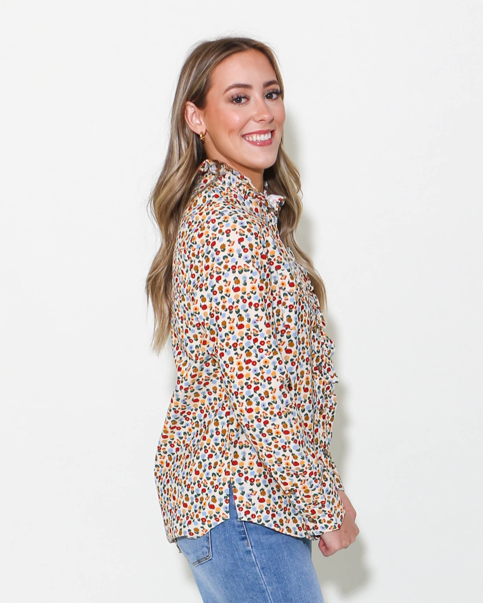 Elevate your style with our Floral Corduroy Snap Shirt! Made with soft and durable corduroy, this shirt features a vibrant floral pattern and convenient snap buttons. Make a statement and stay comfortable all day long.