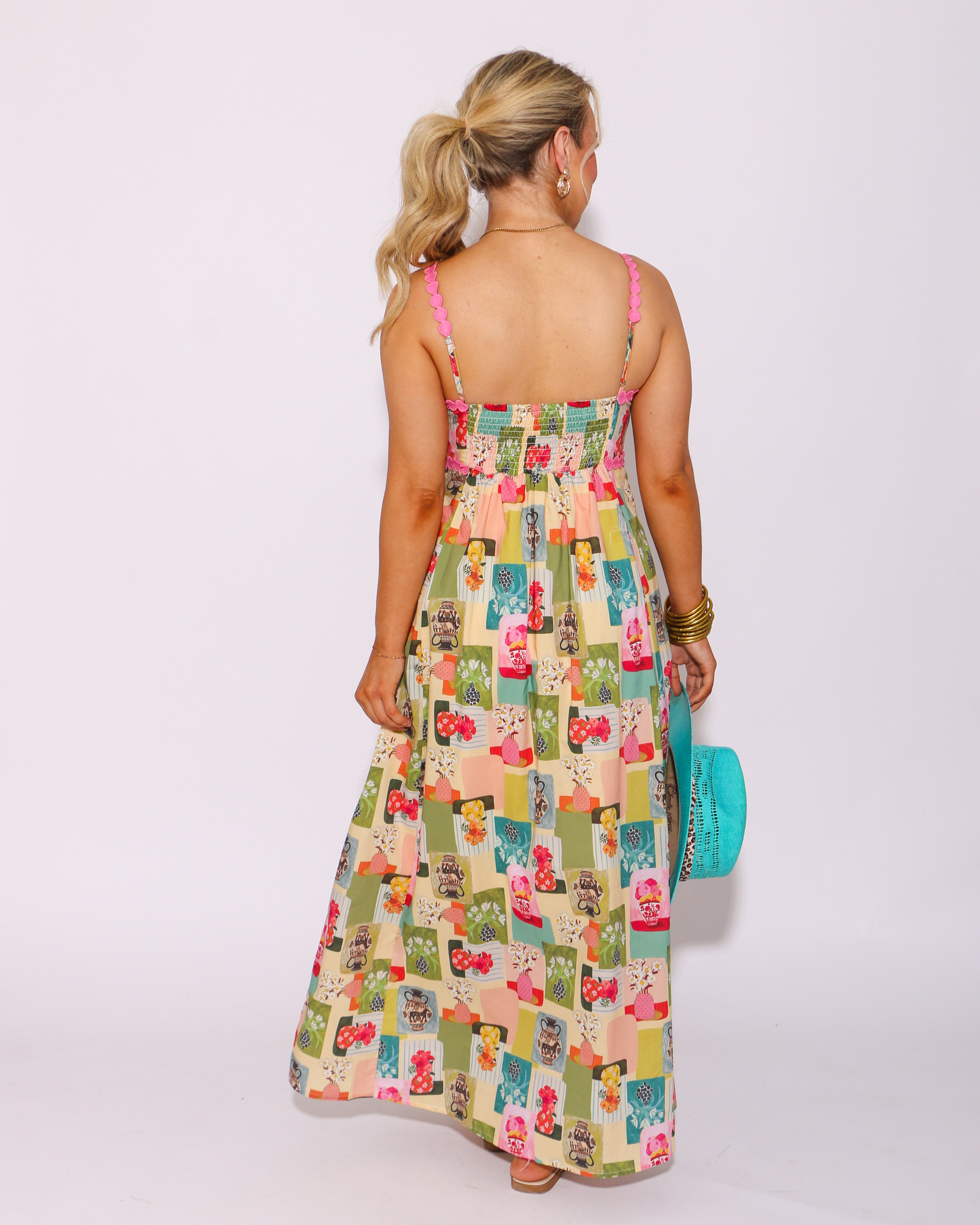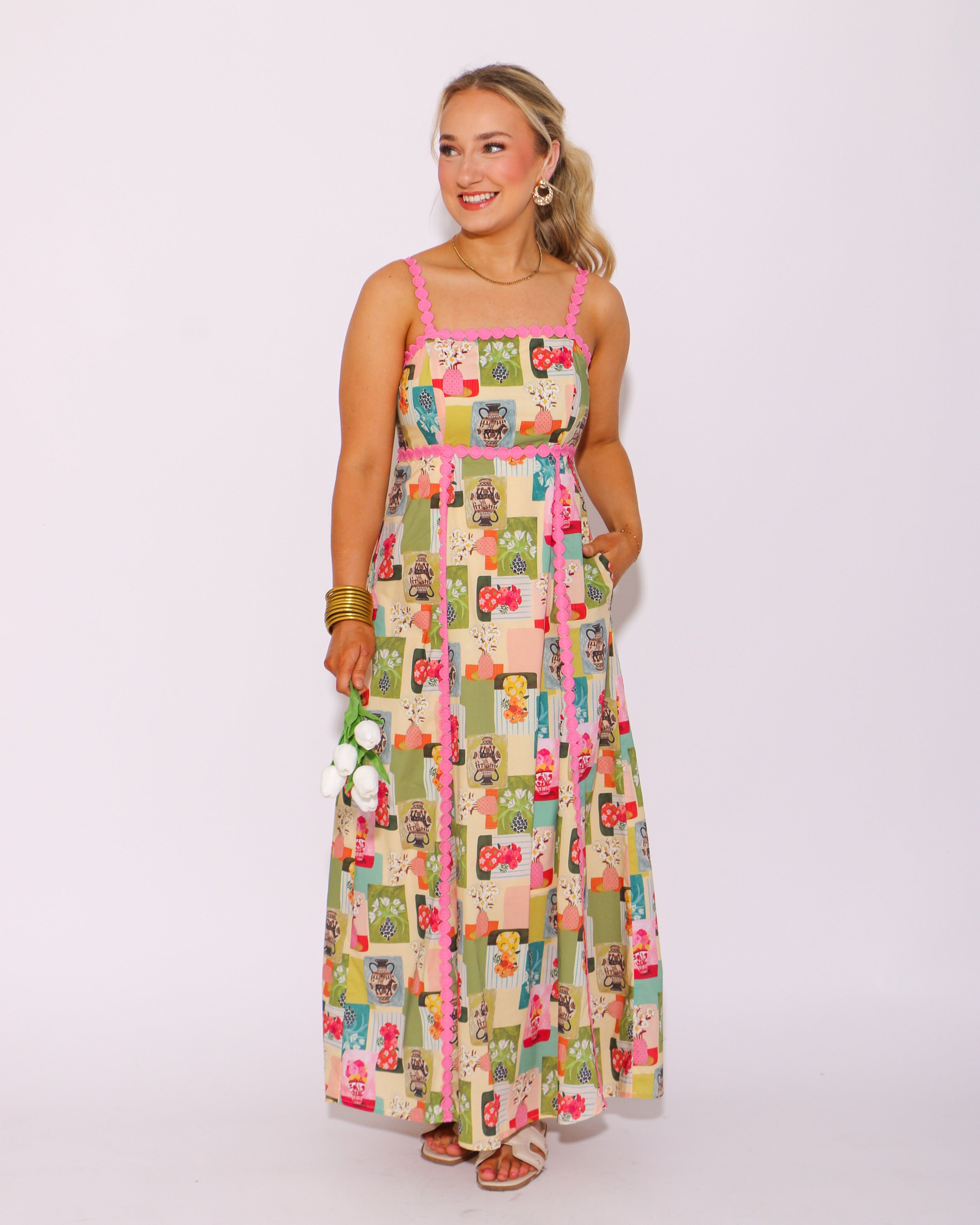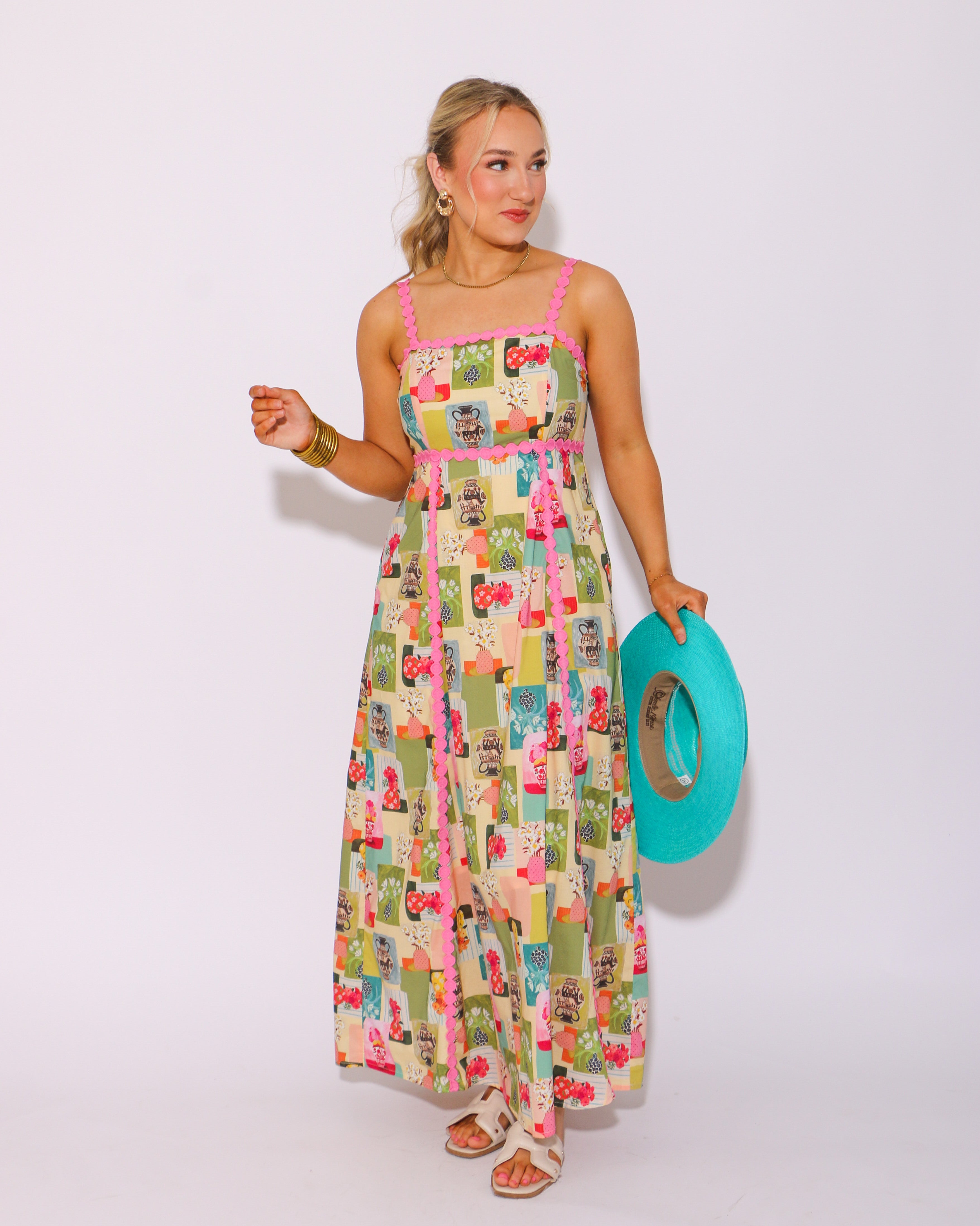 Experience the beauty of nature in our Floral Galore Abstract Midi Dress! This stunning dress features a high empire silhouette with a mesmerizing abstract floral print. The medallion trim accent adds a delicate touch, while the adjustable shoulder strap and smocked back provide a comfortable fit. Perfect for any occasion, this dress also includes convenient side pockets and a lightweight, non-sheer lining. Embrace the essence of summer in style!