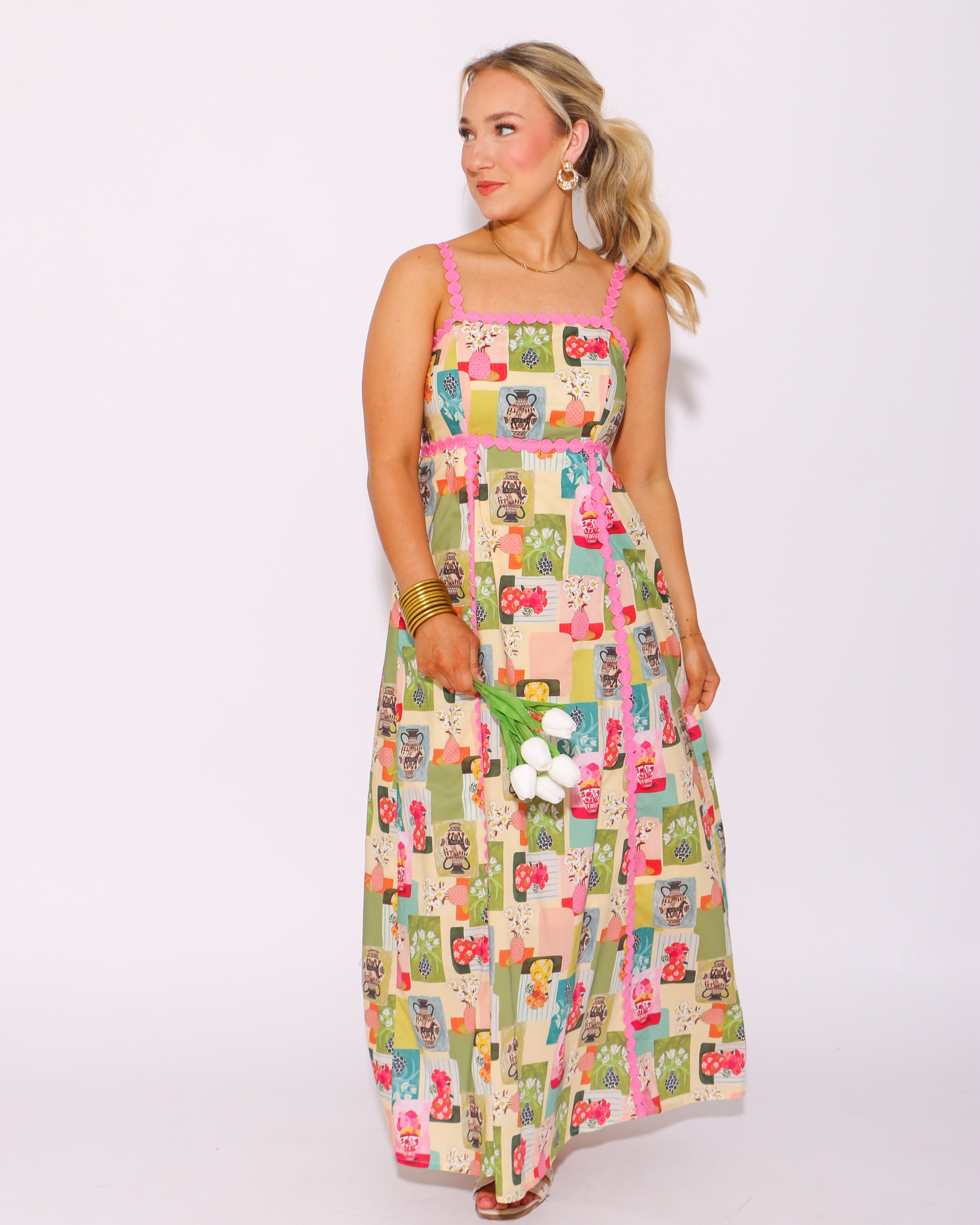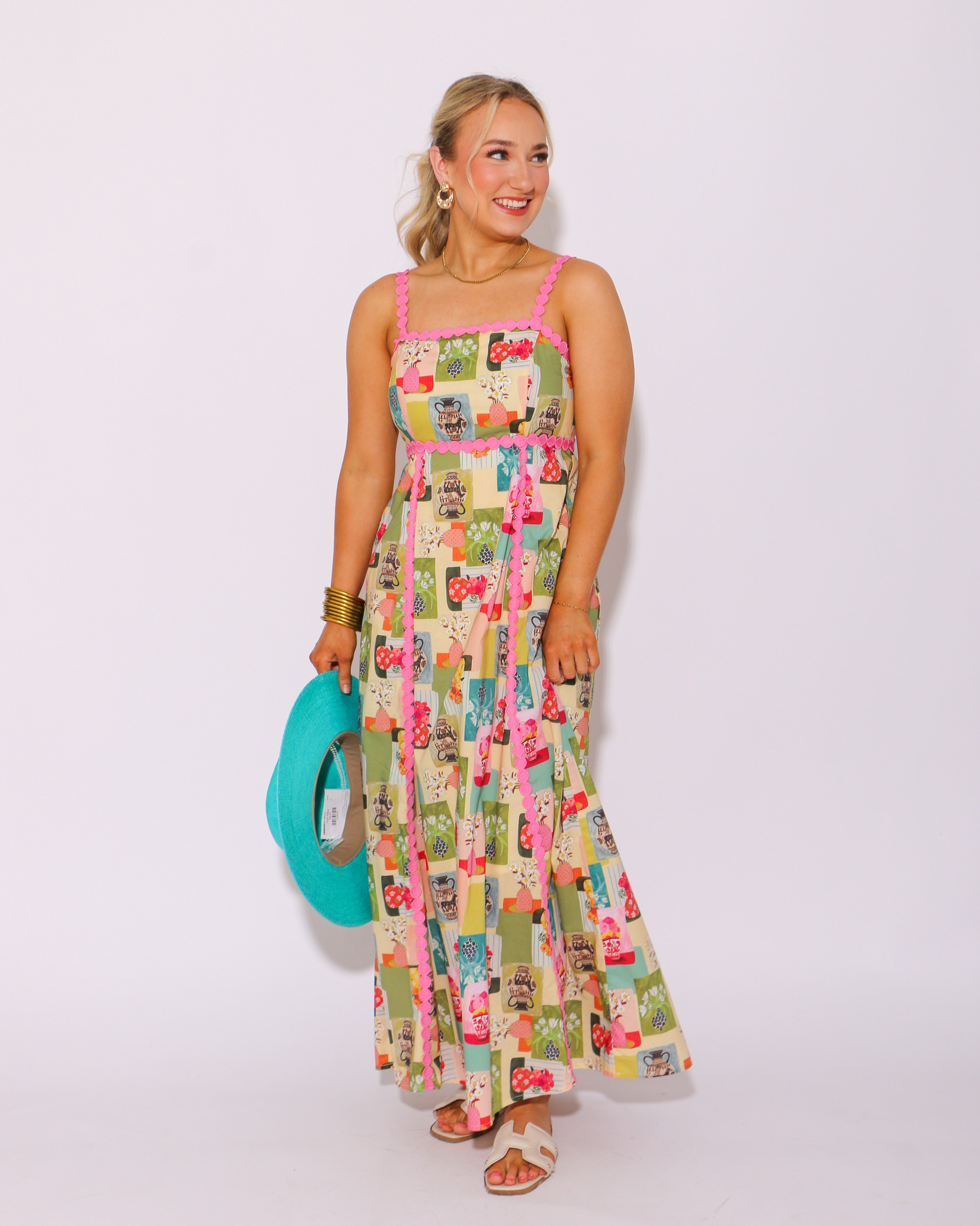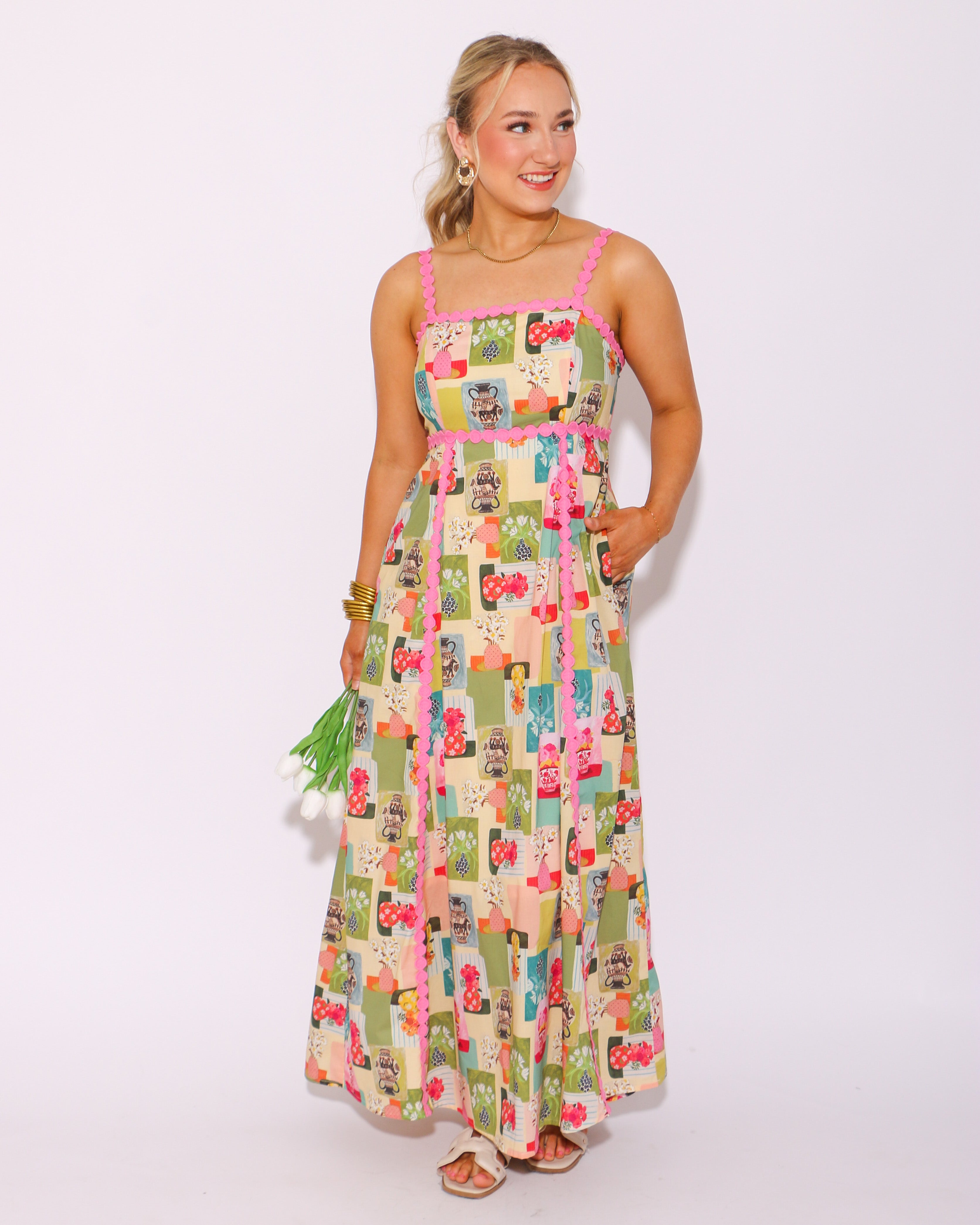 Experience the beauty of nature in our Floral Galore Abstract Midi Dress! This stunning dress features a high empire silhouette with a mesmerizing abstract floral print. The medallion trim accent adds a delicate touch, while the adjustable shoulder strap and smocked back provide a comfortable fit. Perfect for any occasion, this dress also includes convenient side pockets and a lightweight, non-sheer lining. Embrace the essence of summer in style!