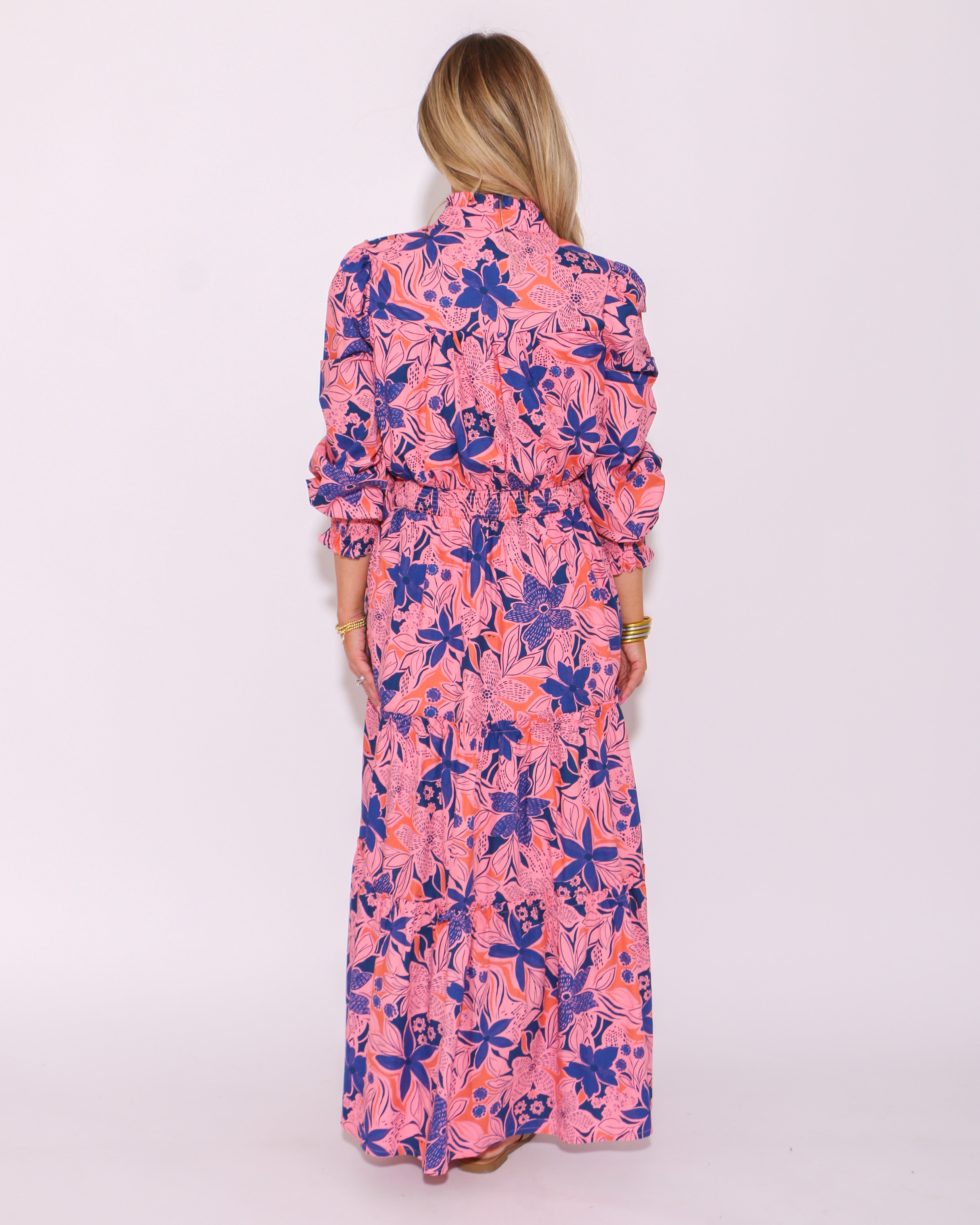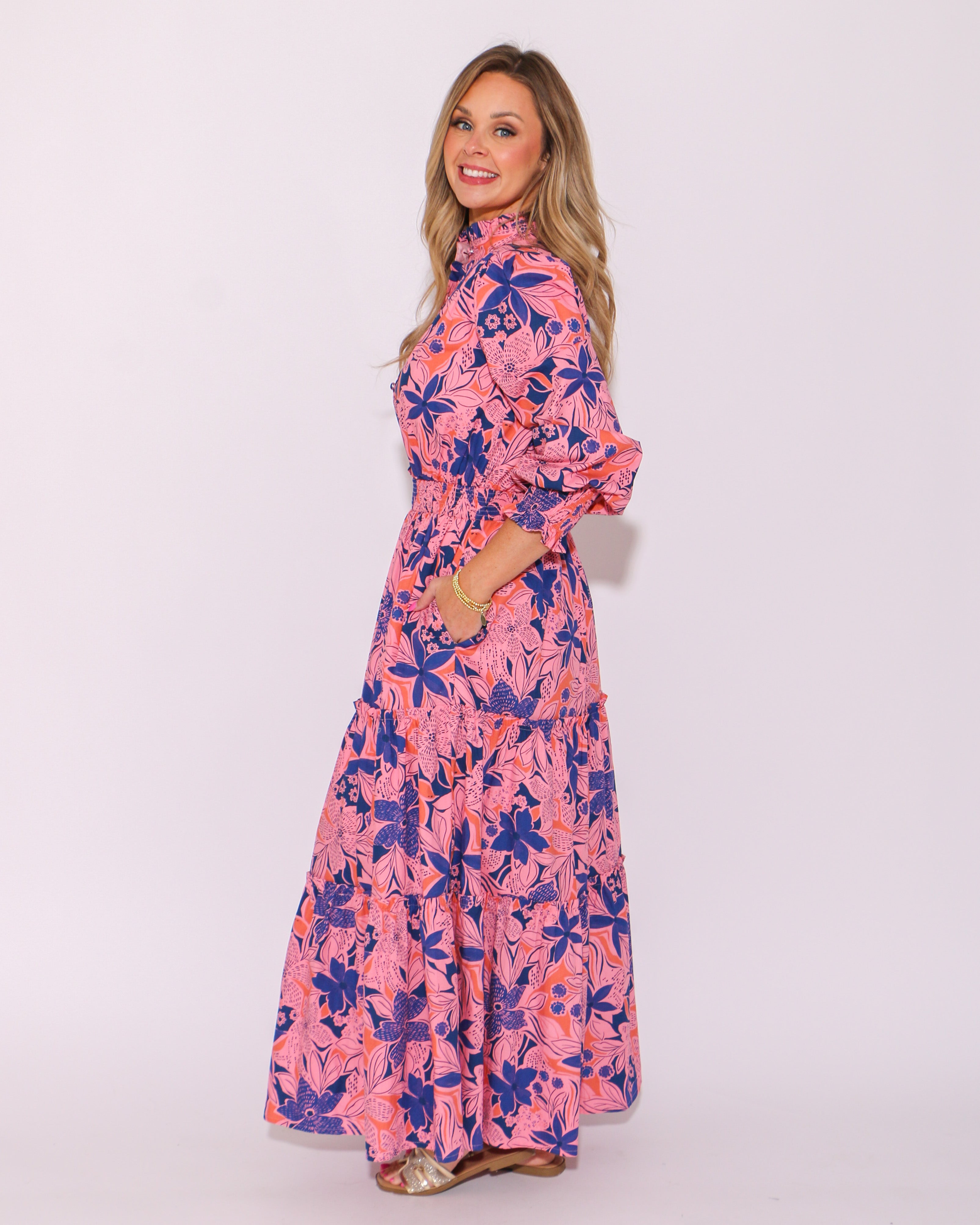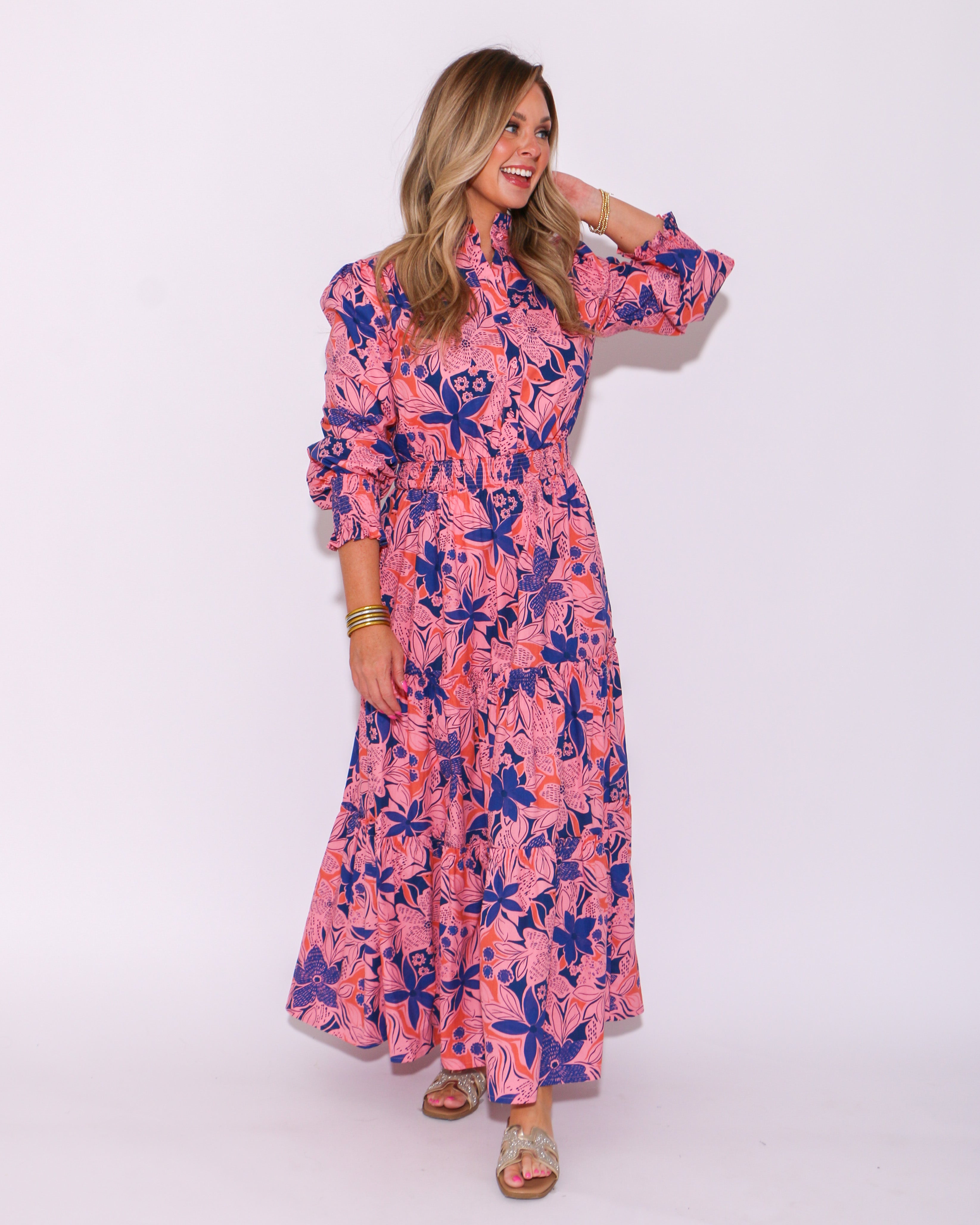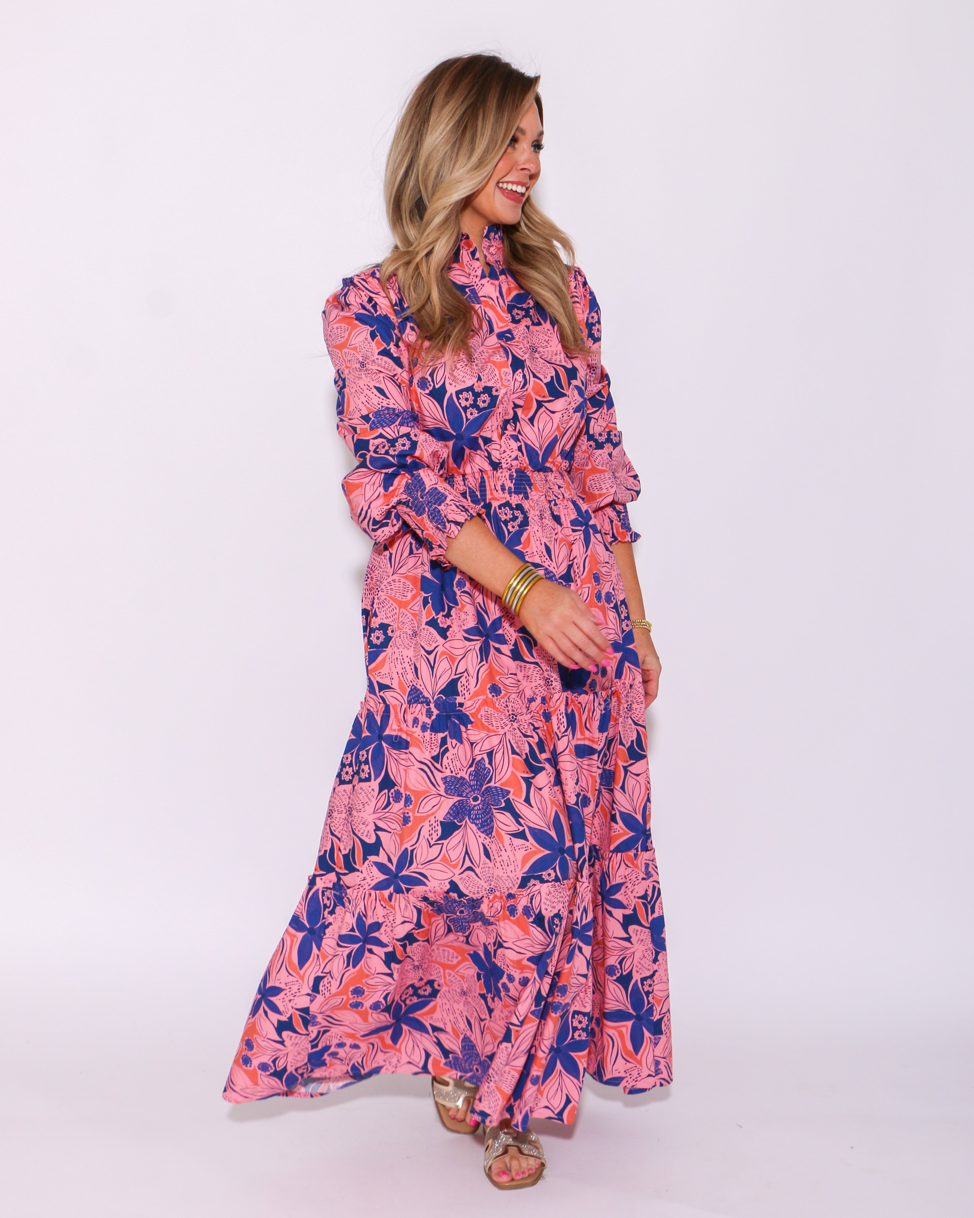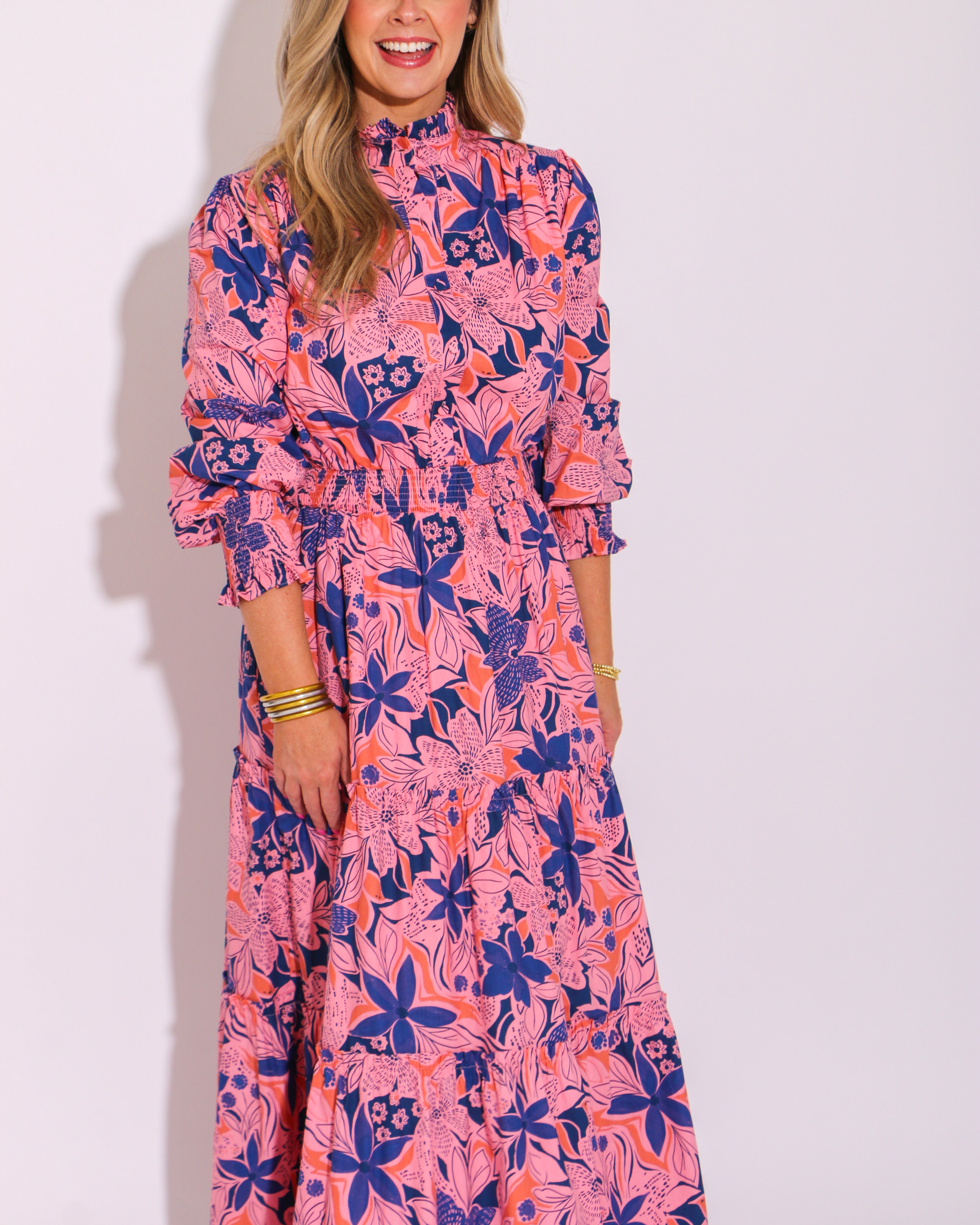 A "Floral Poplin Tier Maxi Dress" is a stylish and feminine garment perfect for warm weather occasions. This dress likely features a maxi length, meaning it extends to the ankles or floor, providing an elegant and flowy silhouette. The use of poplin fabric suggests a lightweight and breathable material, ideal for staying comfortable in hotter temperatures. The "floral" aspect indicates that the dress is adorned with floral patterns, adding a charming and romantic touch. Additionally, the "tier" detail suggests that the dress has multiple layers or tiers, adding volume and dimension to the overall look. Overall, the "Floral Poplin Tier Maxi Dress" offers a combination of comfort, style, and sophistication, making it a versatile option for various events and occasions.