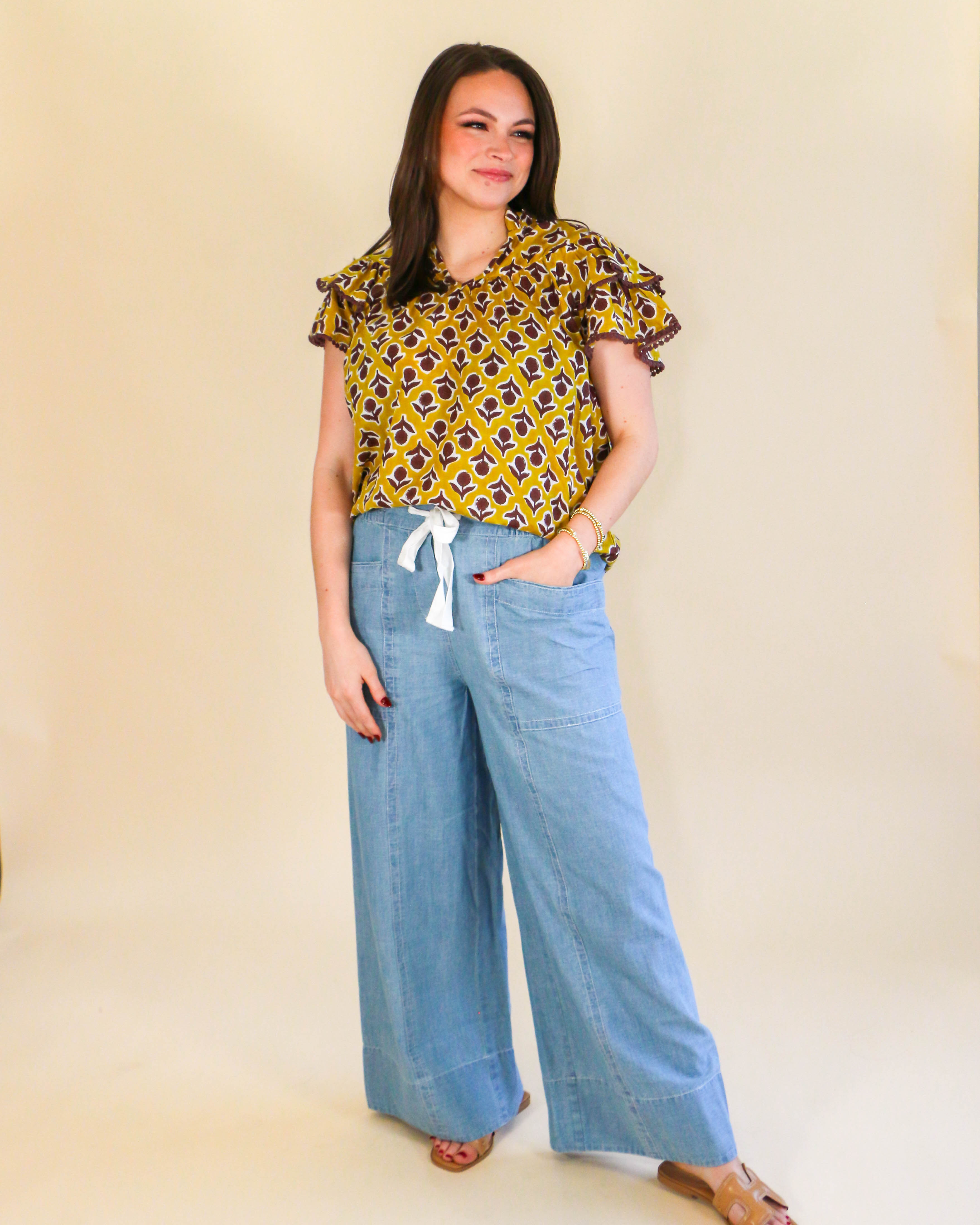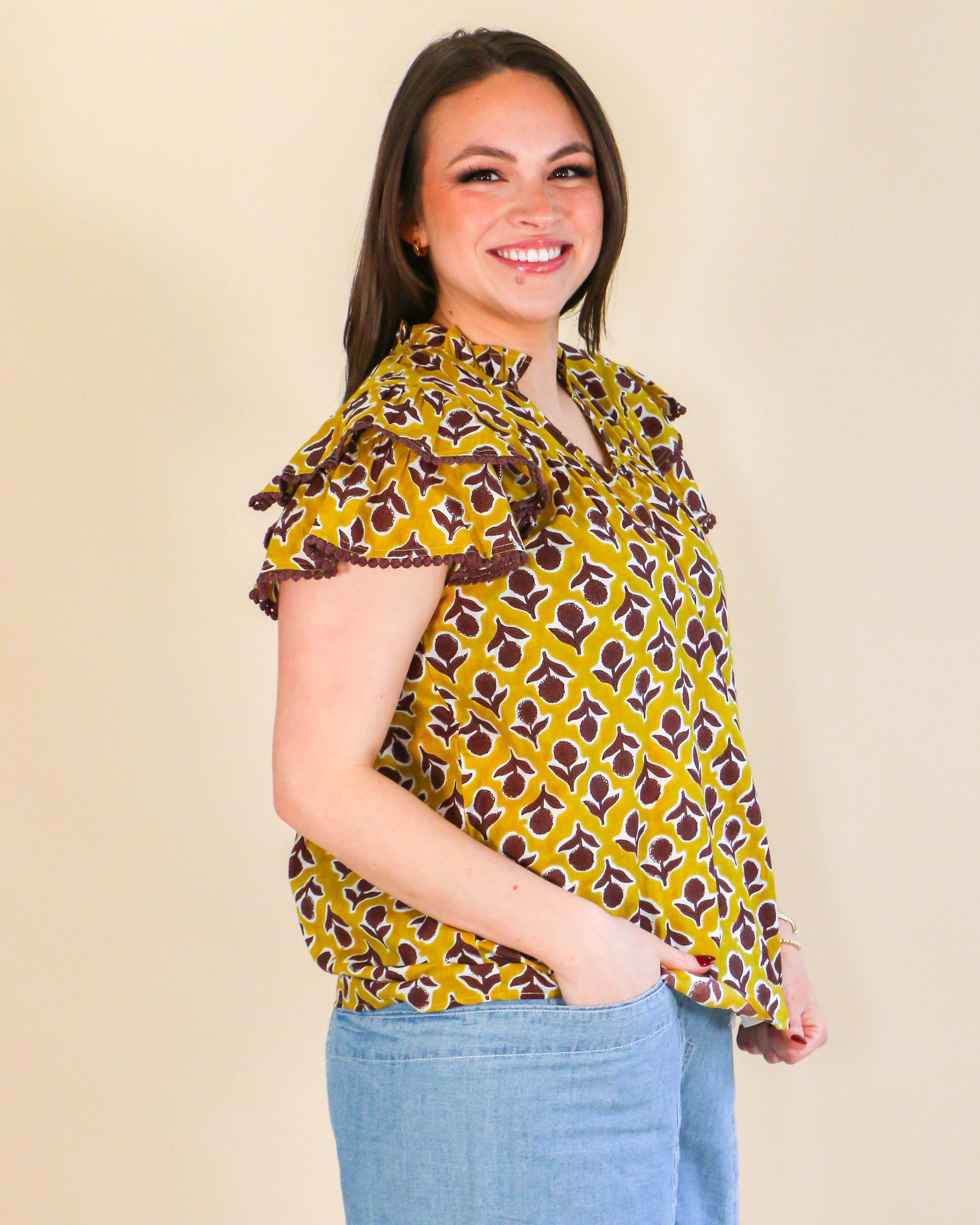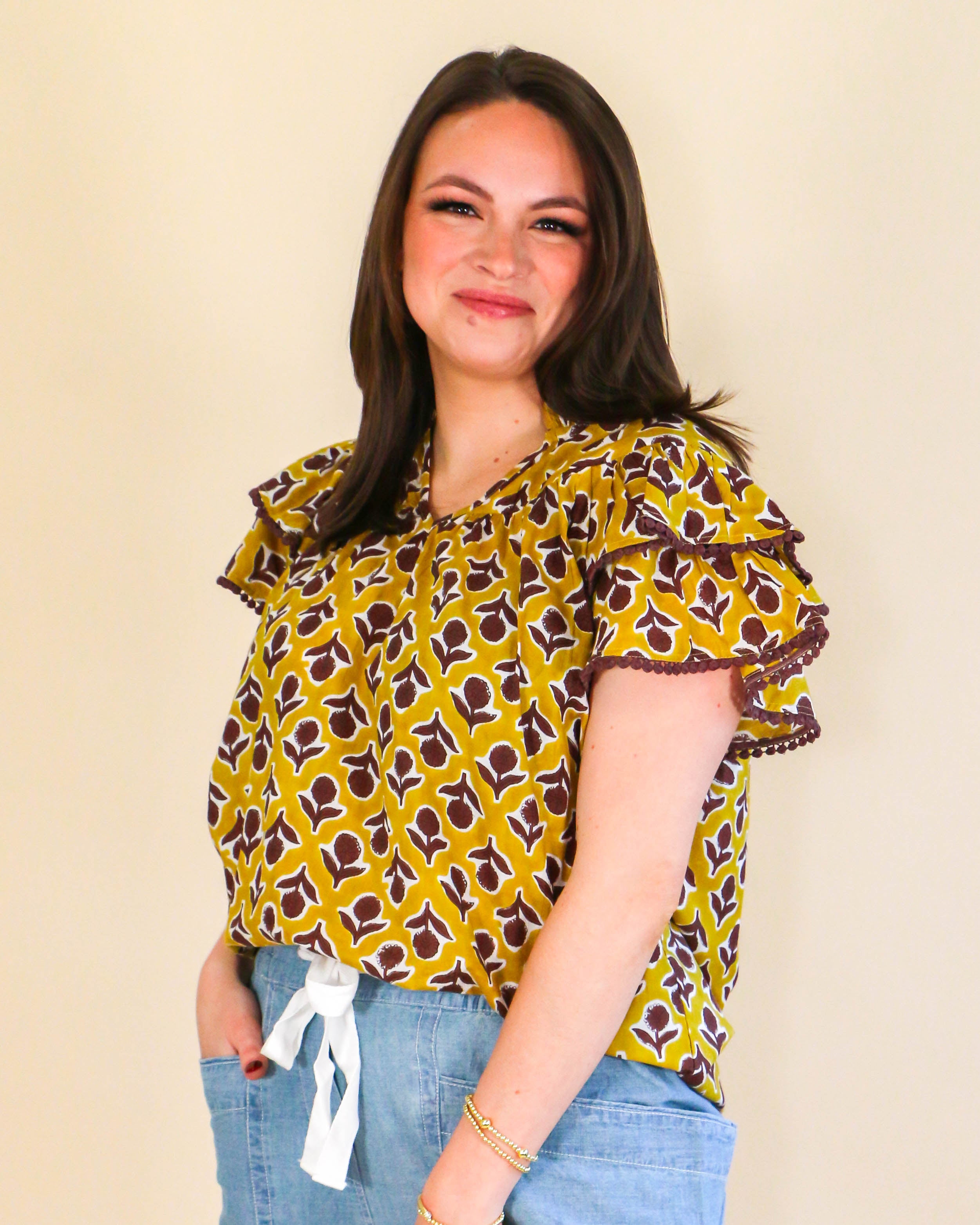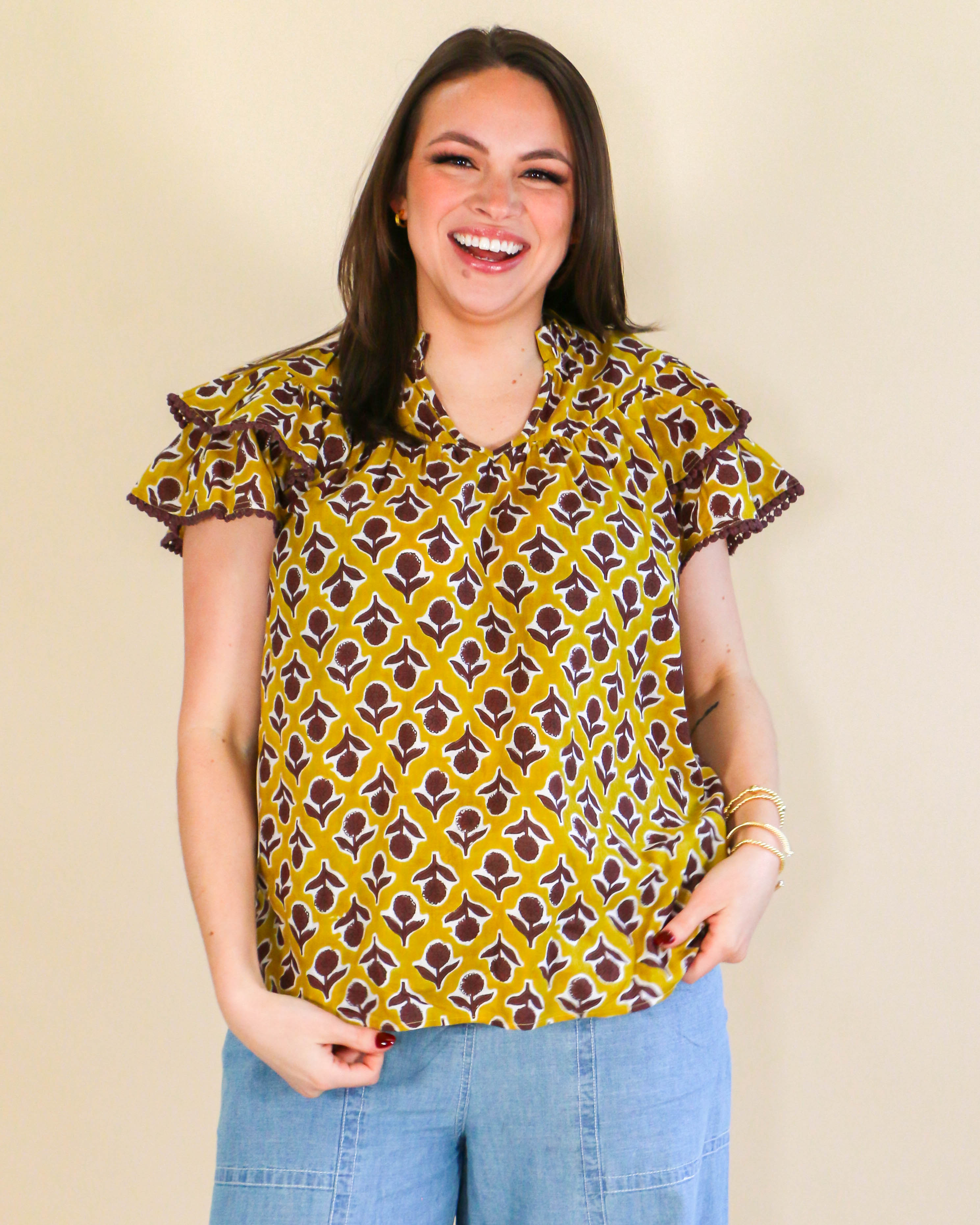 Experience the ultimate comfort and style in our Flutter Block Top in Mustard! The lightweight, flowy fabric and trendy flutter sleeves add a touch of femininity to your wardrobe. Perfect for any occasion, this top will elevate your look and leave you feeling confident and stylish.