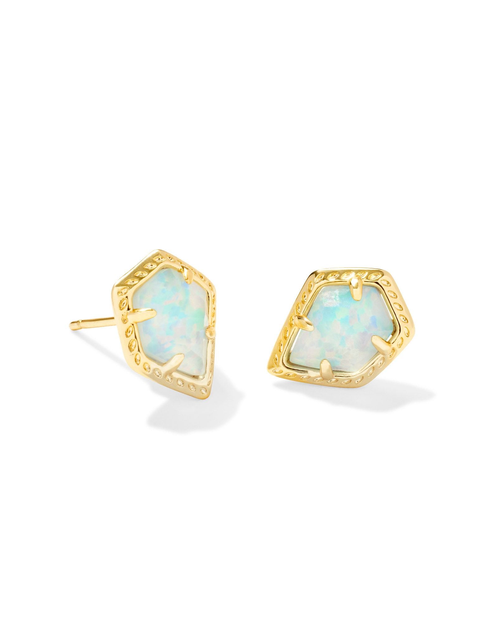 Framed Tessa Stud Earring in Gold Luster Light Blue Kyocera Opal