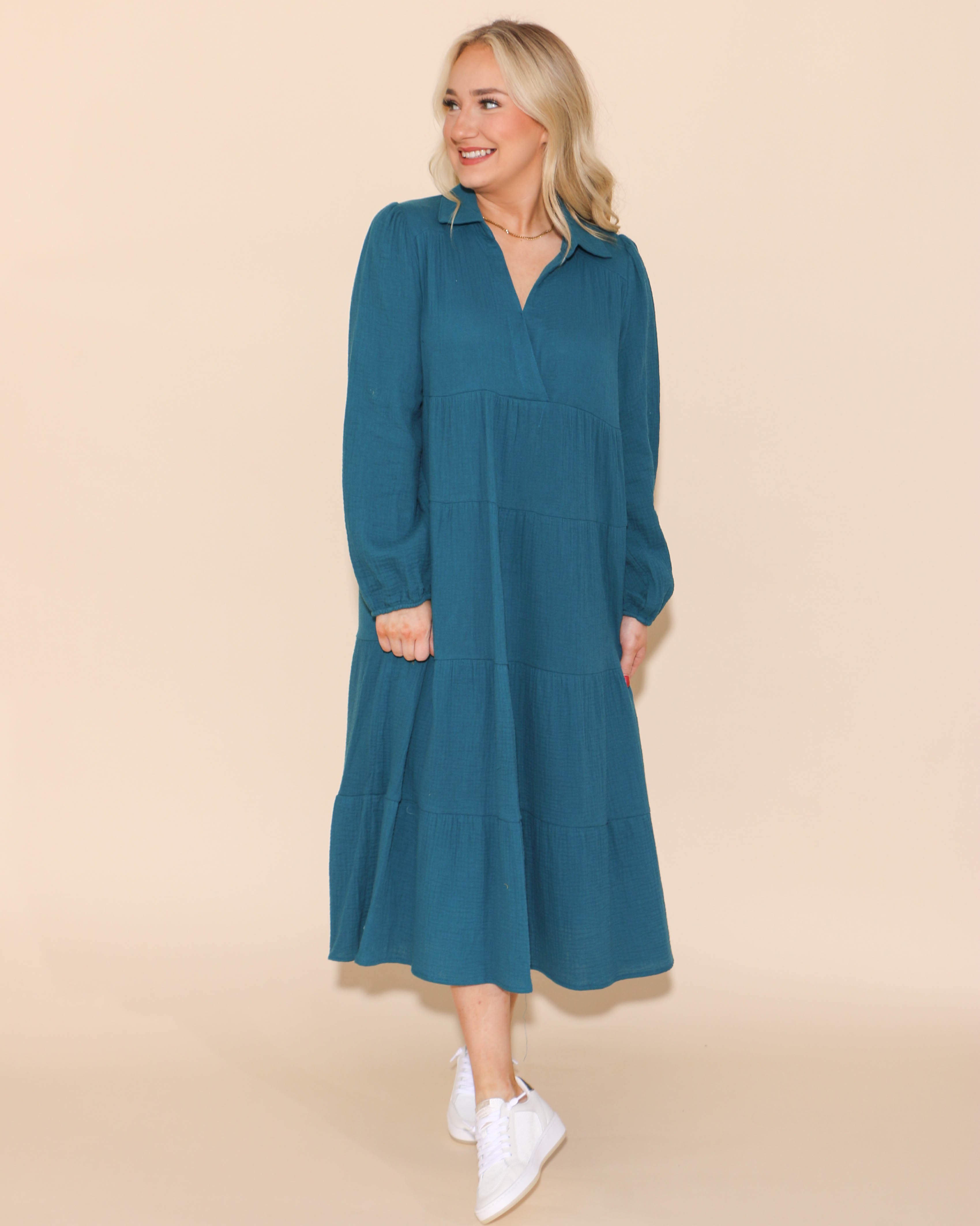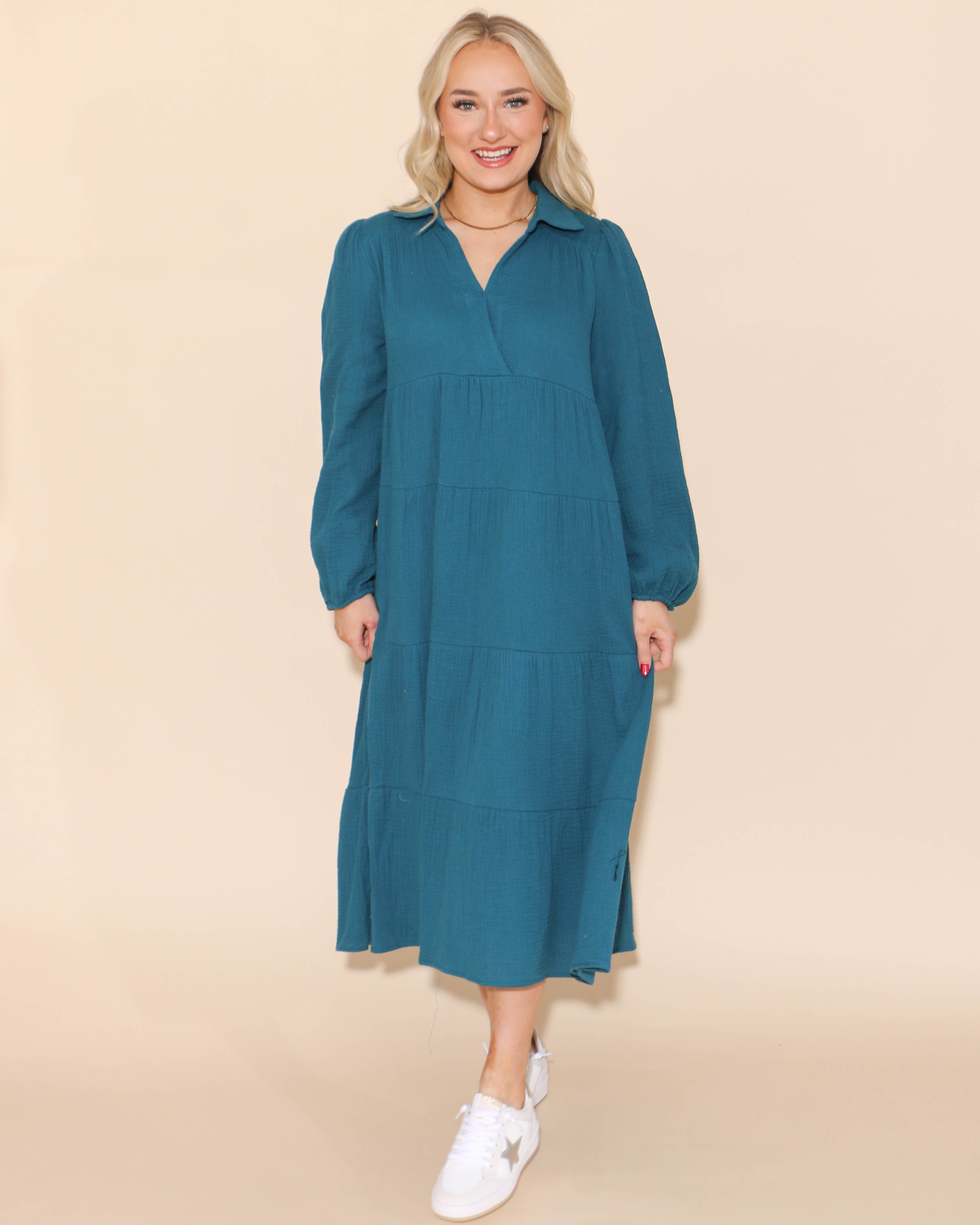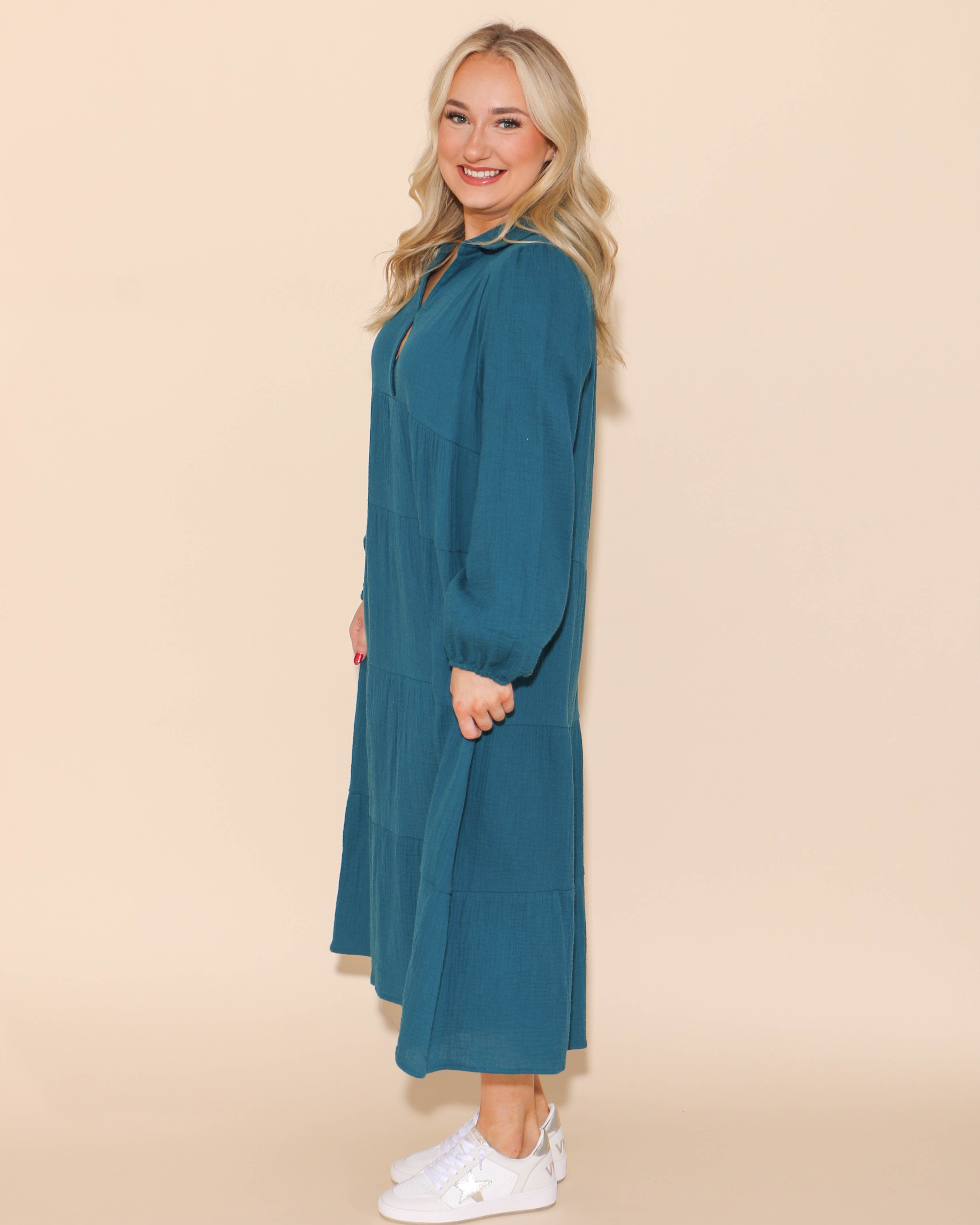 Introducing our Gauze Long Sleeve Split Neck Maxi - the perfect dress for any occasion! Made with lightweight and breathable gauze fabric, this maxi dress will keep you comfortable and stylish all day long. The split neck design adds a touch of sophistication, making this dress a must-have in your wardrobe.