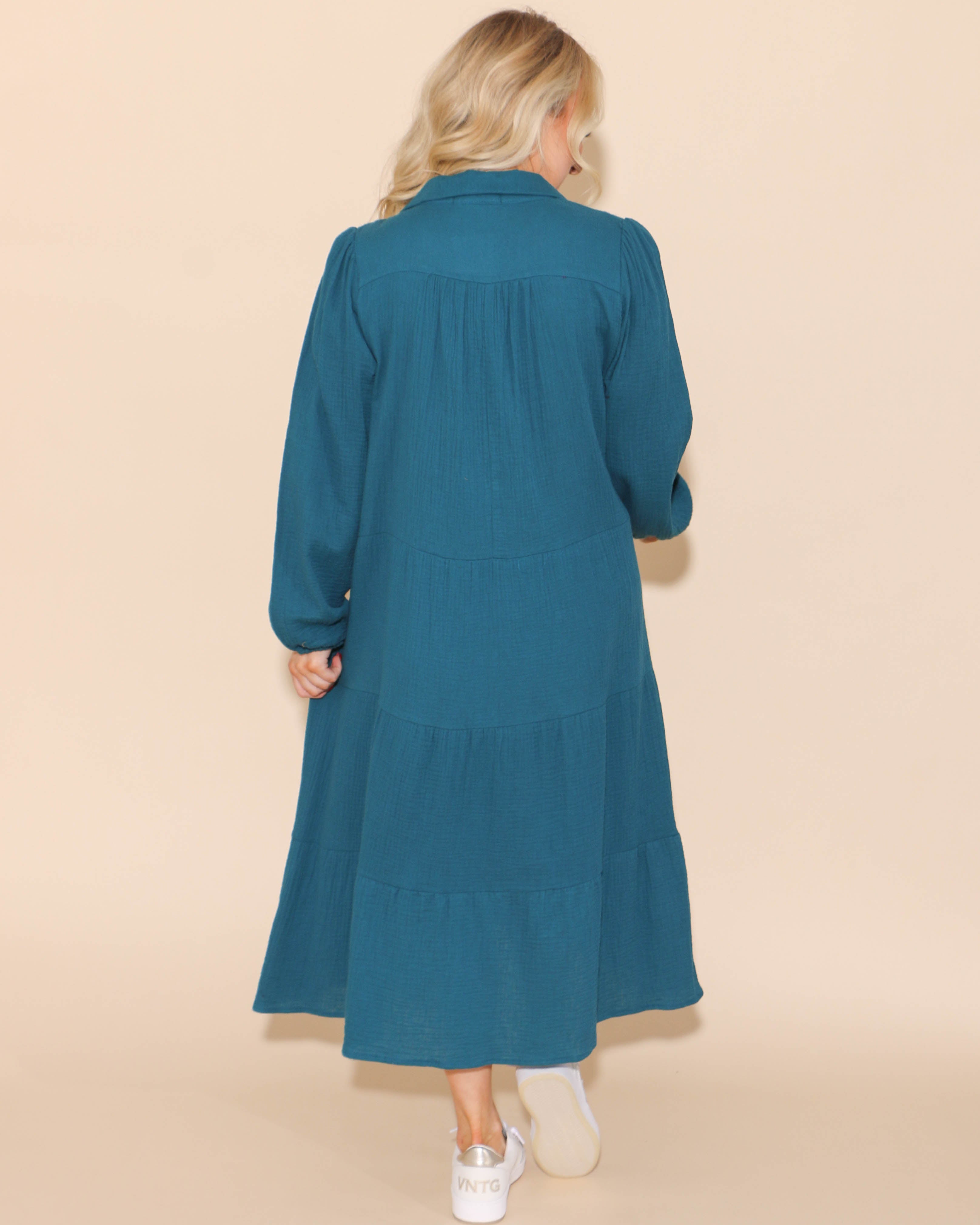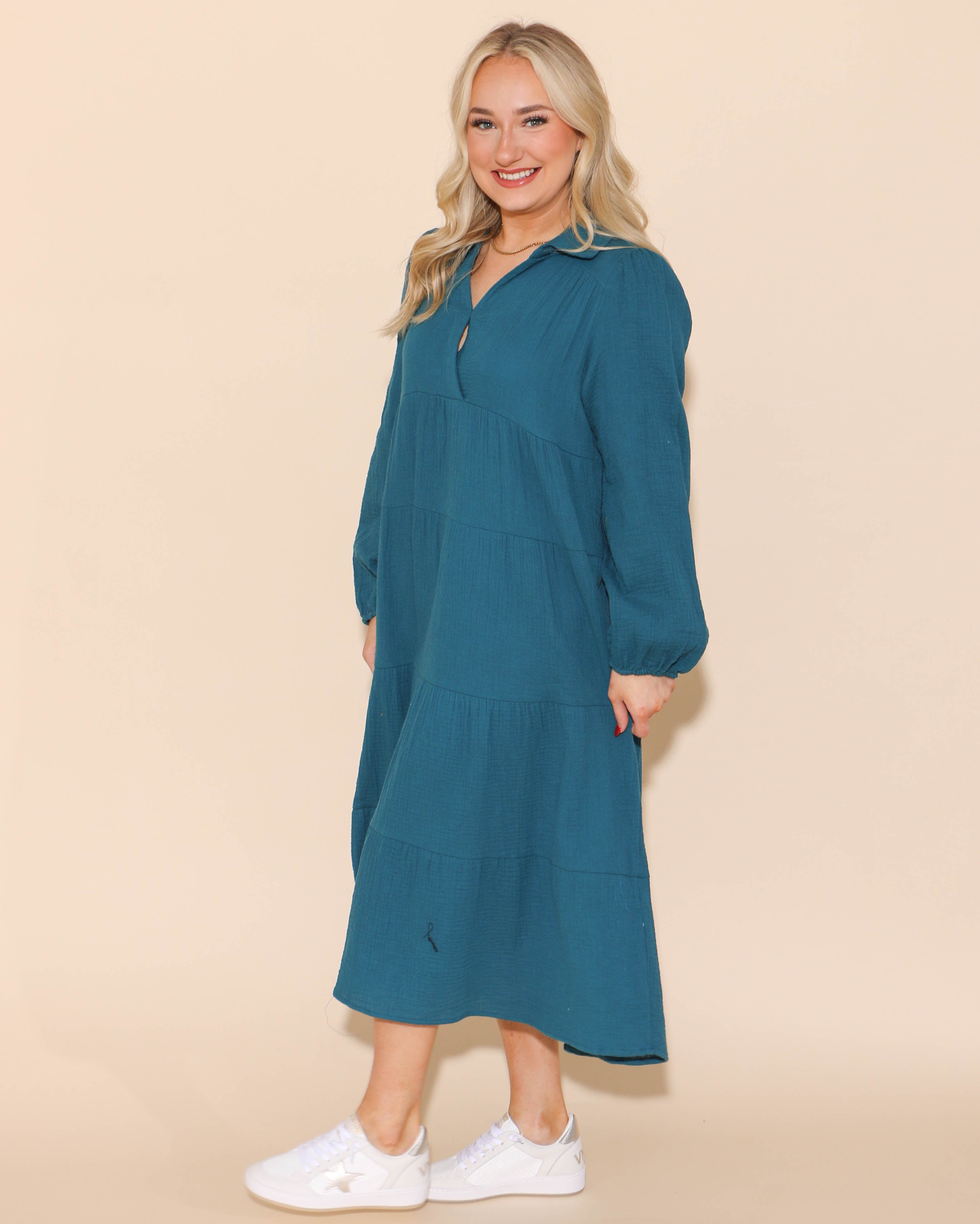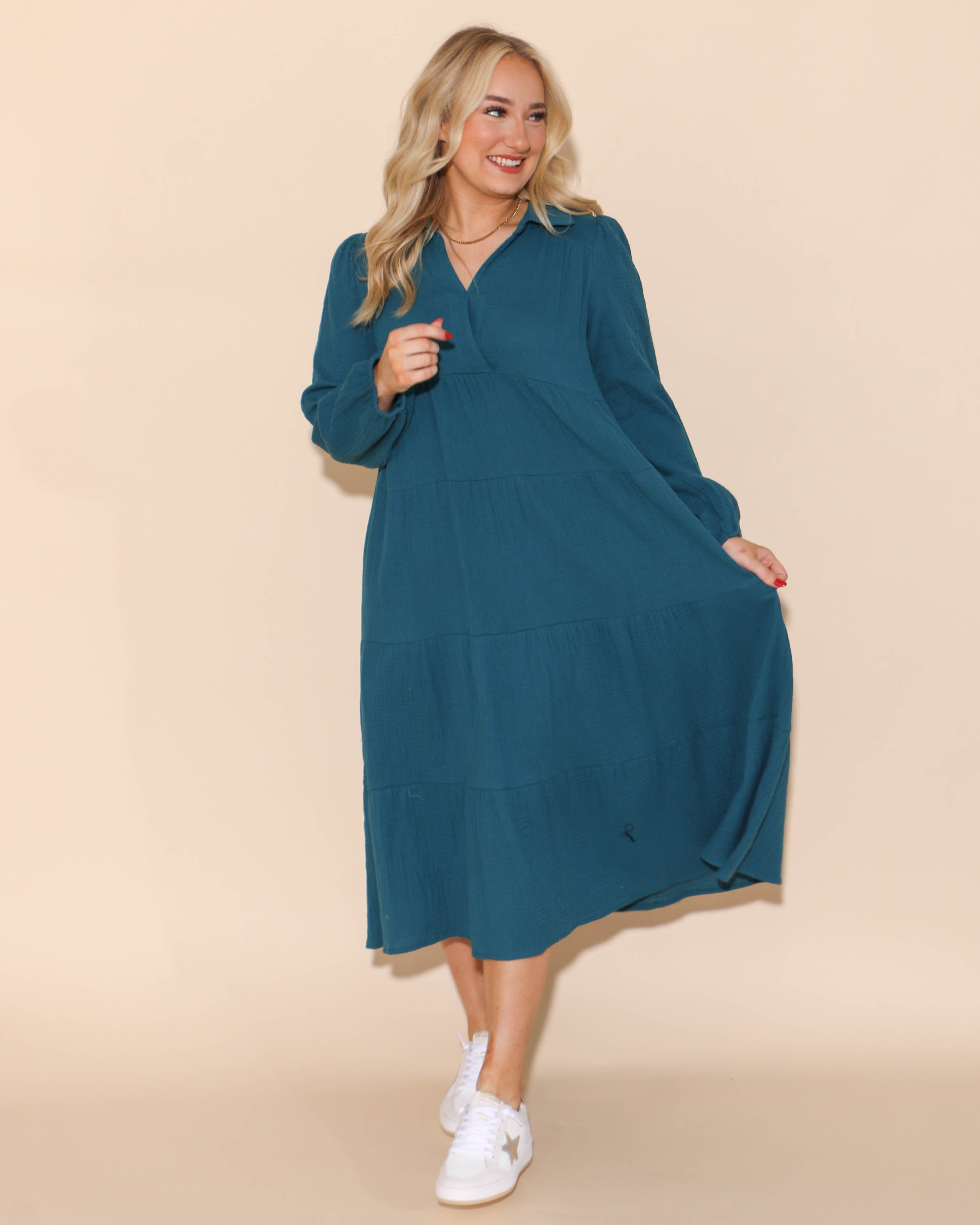 Introducing our Gauze Long Sleeve Split Neck Maxi - the perfect dress for any occasion! Made with lightweight and breathable gauze fabric, this maxi dress will keep you comfortable and stylish all day long. The split neck design adds a touch of sophistication, making this dress a must-have in your wardrobe.