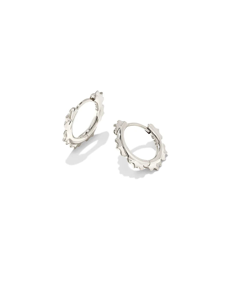 The trending huggie style meets intricate metal detailing in the Genevieve Huggie Earrings in Rhodium. Dainty and lightweight, floral-inspired metal shapes elevate these huggies for a truly unique style.