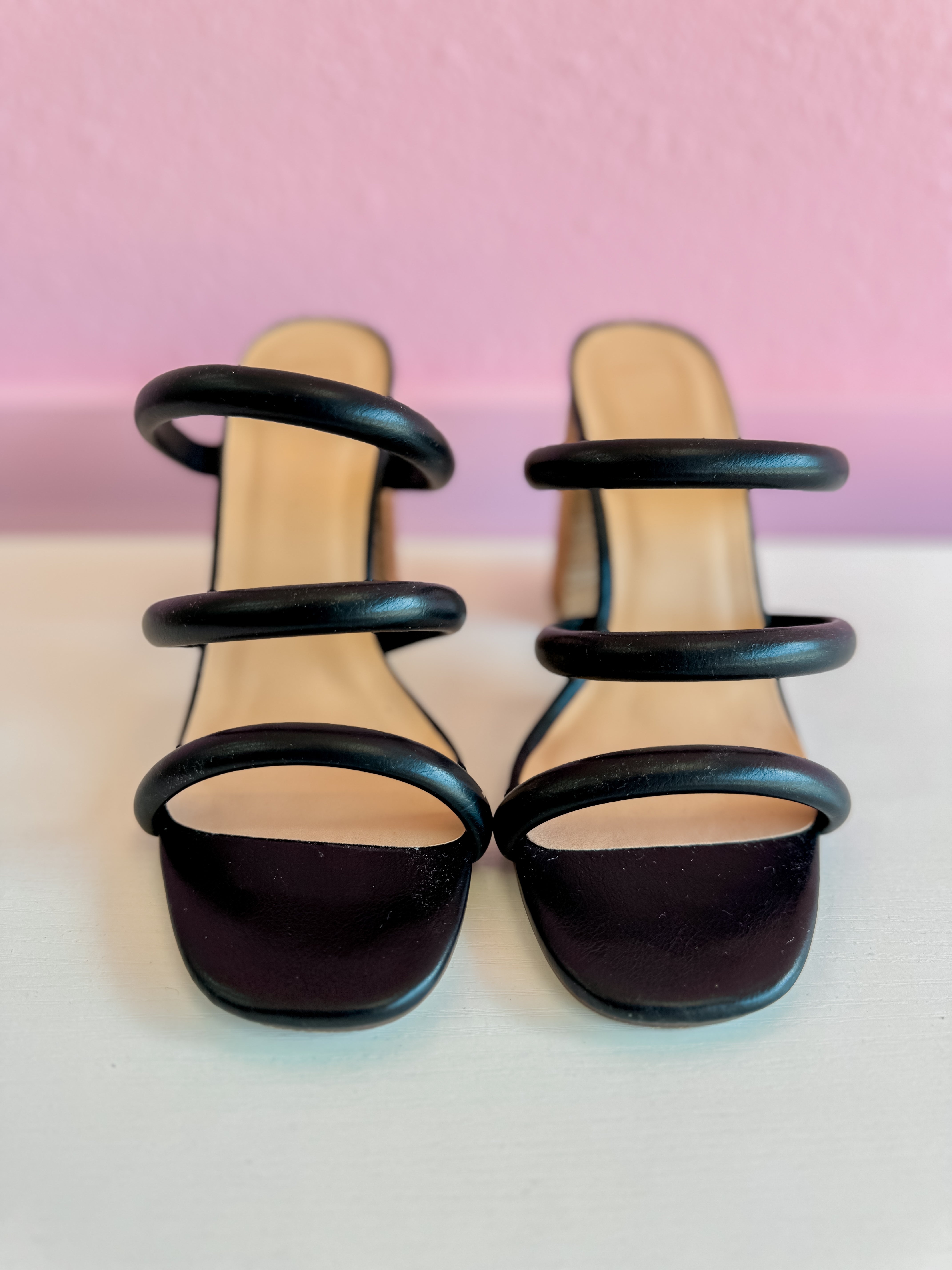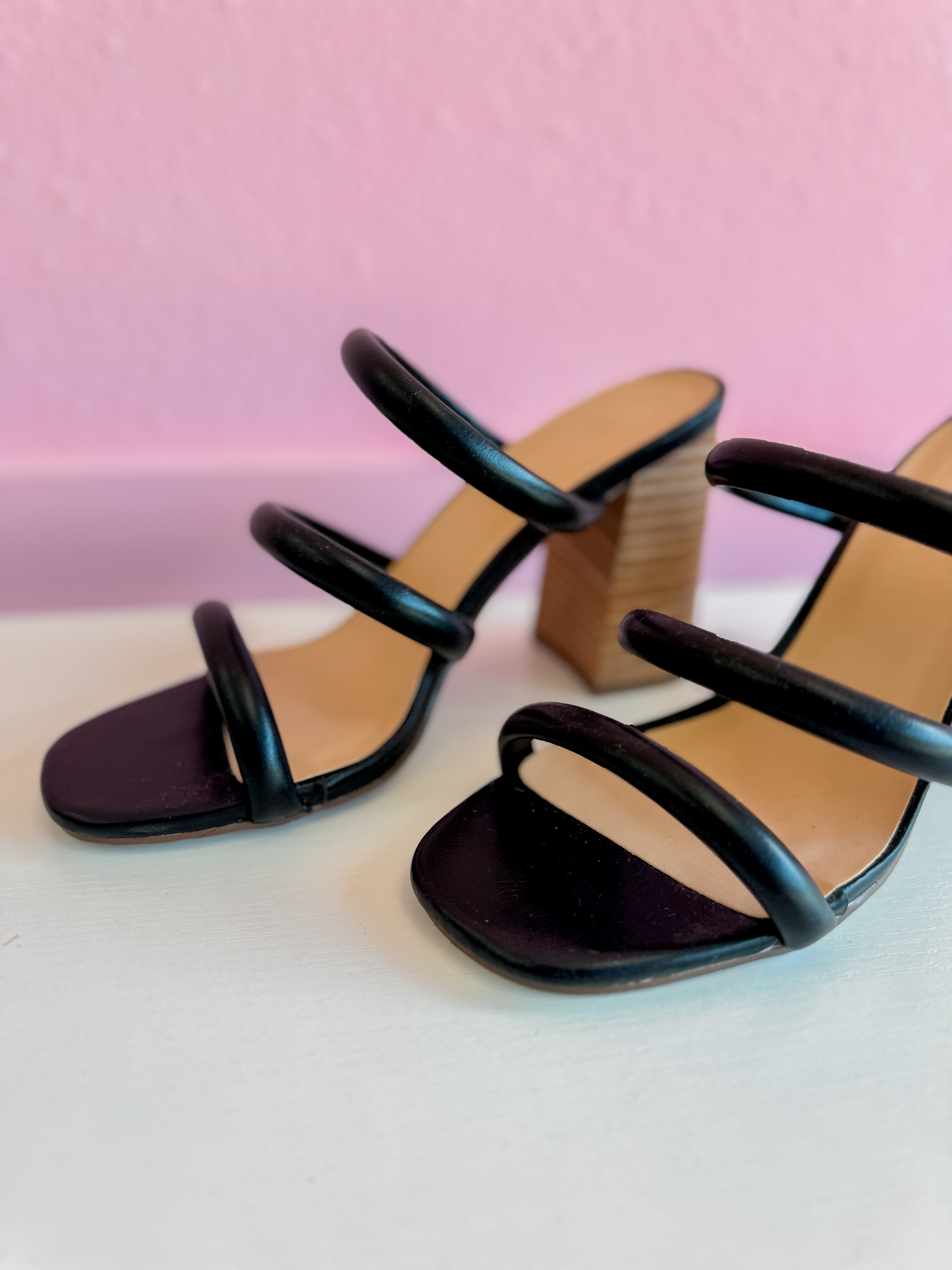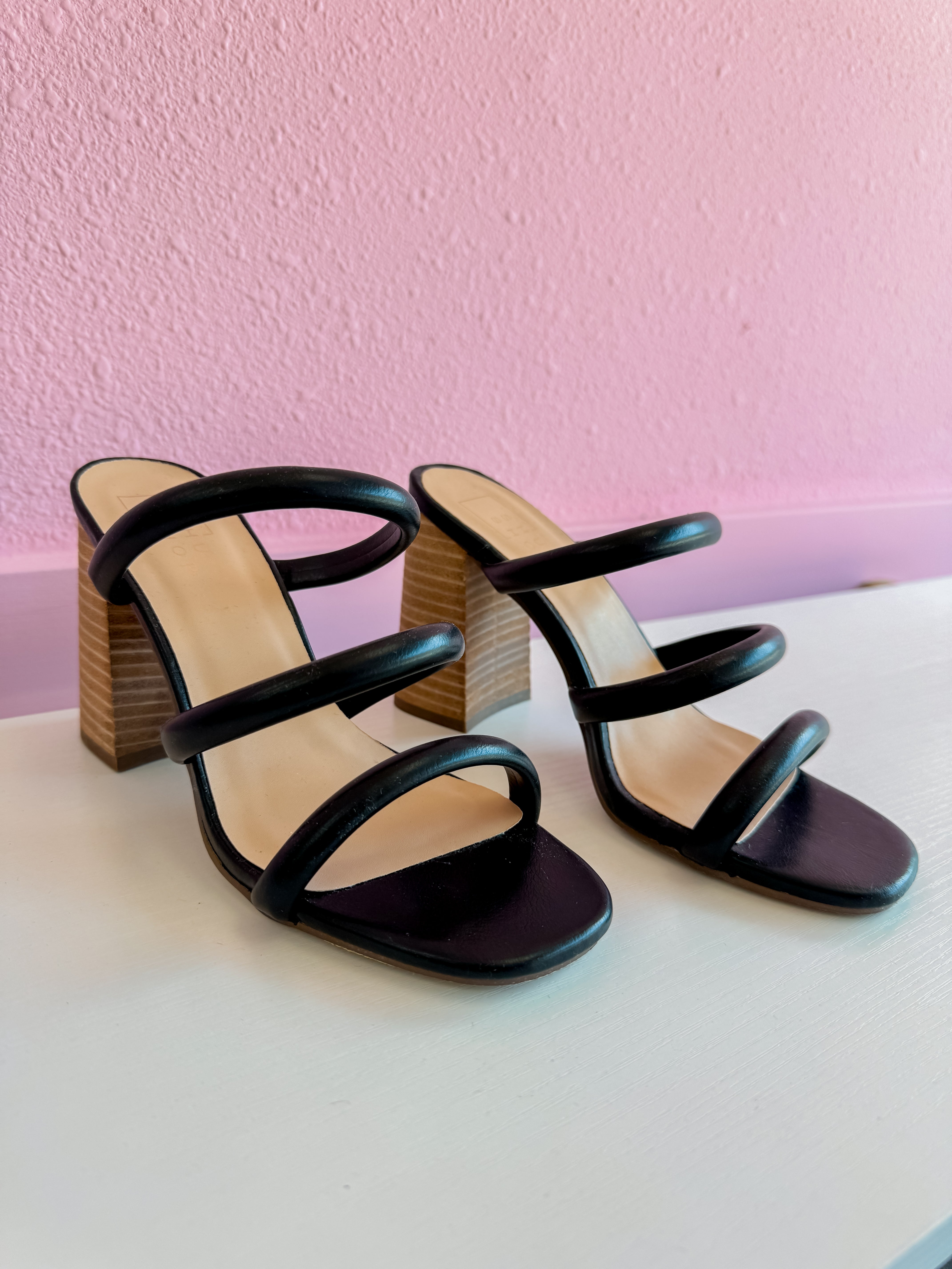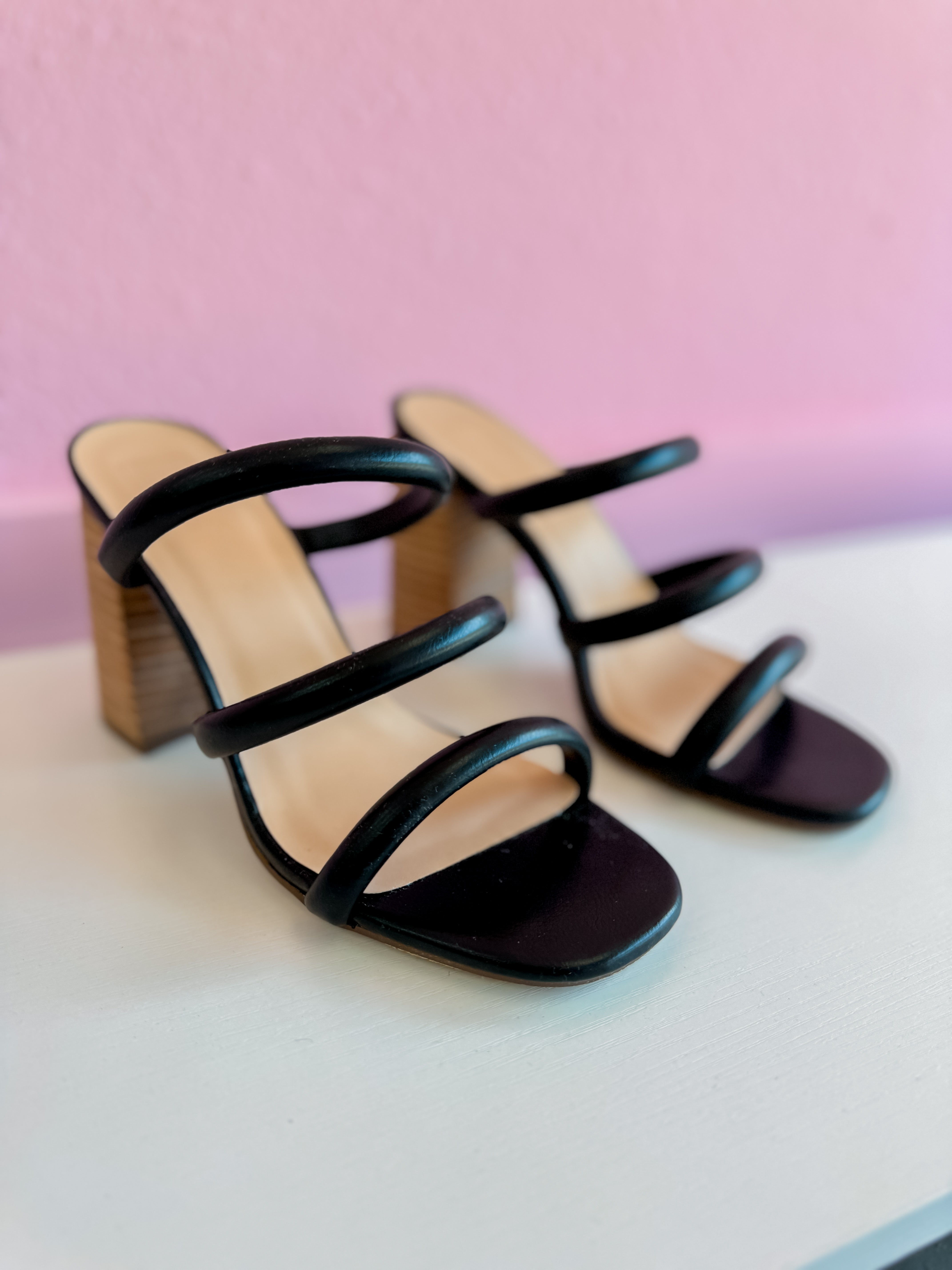 With its minimal leather upper, chunky stacked heel and cushioned footbeds, GINGER is the perfect high heel sandal to wear with floral dresses or a total denim look.