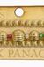 This bracelet set has three strands of gold tone fluted beads in different sizes. There are green, red and white beads in between the larger bead strand. One size fits most.