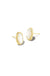 A polished pair of studs in our signature shape. The Grayson Gold Stud Earrings are sophisticated and unique, featuring our iconic silhouette inlaid with a genuine Ivory Mother of Pearl shell. Mother-of-Pearl is genuine shell material, most commonly found as the inner layer of a shell and the outer coating of pearls. Beautifully iridescent, it is known to inspire peace, tranquility, and healing.