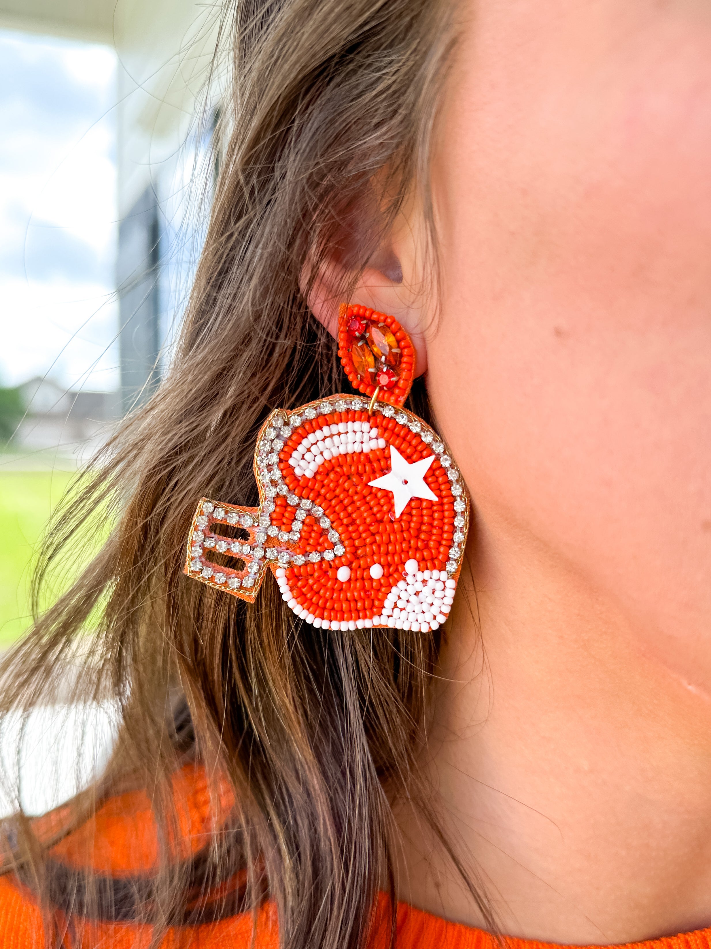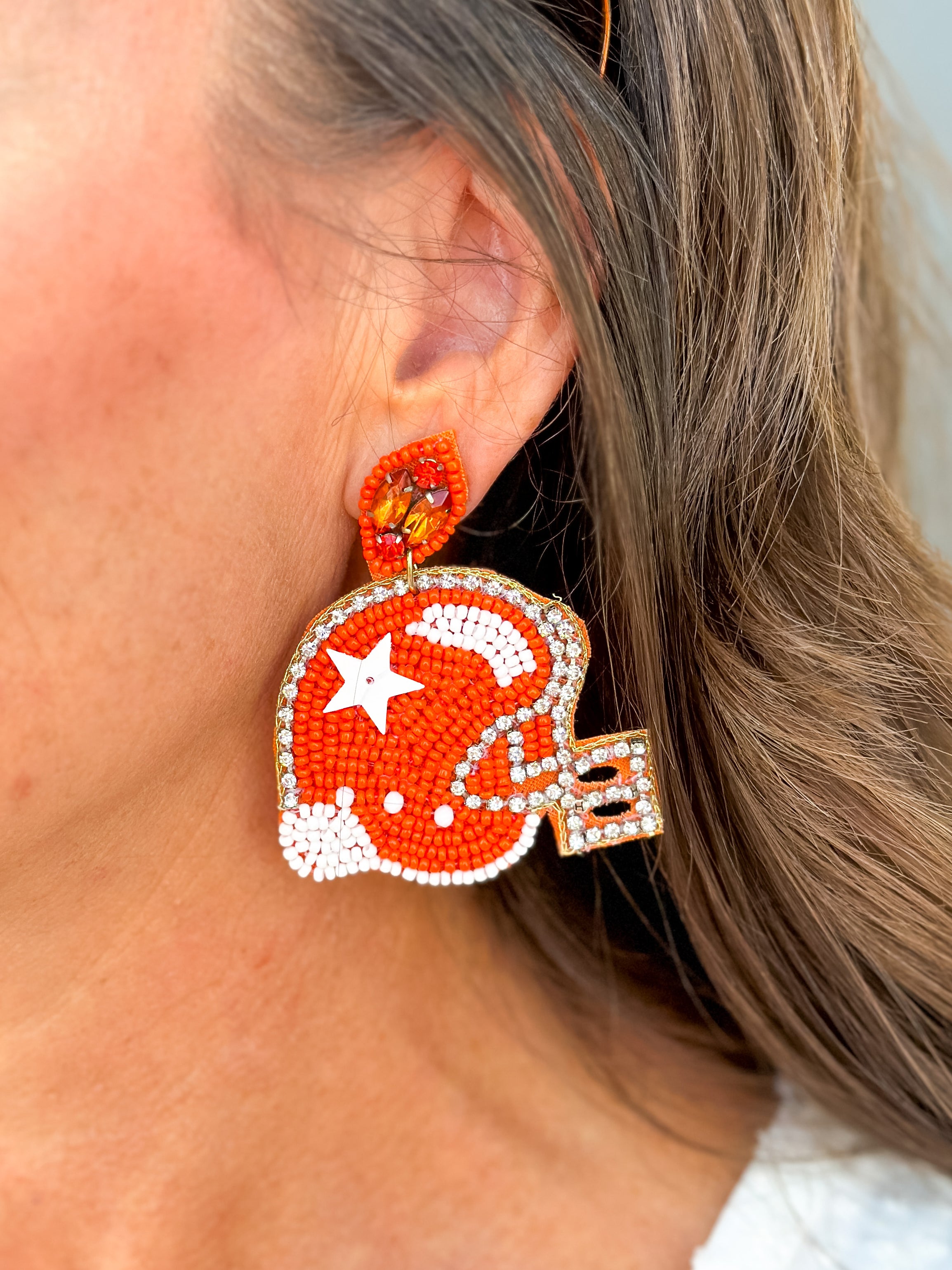 Introducing our Helmet Earrings, a unique and eye-catching addition to your game day jewelry collection. Designed to show off your team spirit and love for the game, our Helmet Earrings are a must-have accessory for game days, tailgates, and any sports-themed events. Whether you're cheering on your favorite team at the stadium or hosting a spirited tailgate party, these earrings will be your go-to statement piece to showcase your enthusiasm.