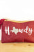 This maroon cosmetic bag has 'Howdy' printed in the middle with the state of Texas being used as the O. Search Keywords: Texas