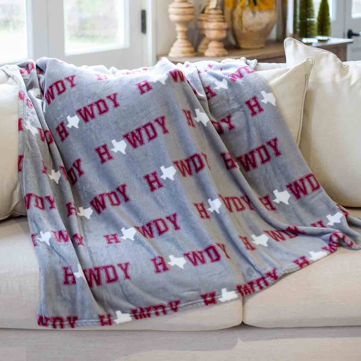 Chevron down icon Chevron down icon Zoom icon Click to expand Tap to zoom Howdy Throw Gray/Maroon/White 50x60 No reviews Find us on Facebook Find us on Pinterest Find us on Instagram $ 29.00 | / Availability: Translation missing: en.general.icons.icon_check_circle icon Only 1 left! 1 2 3 4 5 6 7 8 9 10+ Quantity Chevron down icon Quantity Add to cart Spinner icon Notify me when back in stock Email address Email me when available Search Keywords: A&M, Texas A&M, Gig Em, Aggie, Blanket, Decor