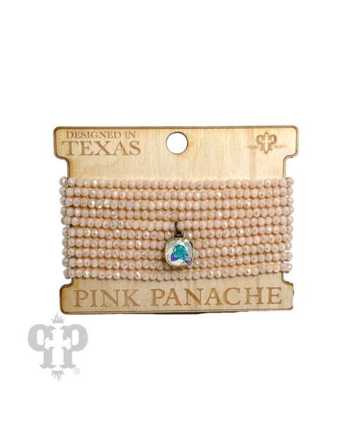 10-strand ivory cream faceted bead bracelet with 10mm bronze/AB crystal drop.