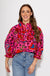 Embrace playful sophistication with this charming snakes top from Ivy Jane. Set against a vibrant hot pink background, the design features whimsical black and green abstract elements—delicate hearts, crisp apples, and serpentine motifs—all punctuated with striking blue accents. This eye-catching piece blends bold graphics with wearable style, perfect for anyone who loves statement fashion with personality. Whether you're dressing up your everyday look or making an impression, this top delivers artistic flair that stands out from the crowd.
