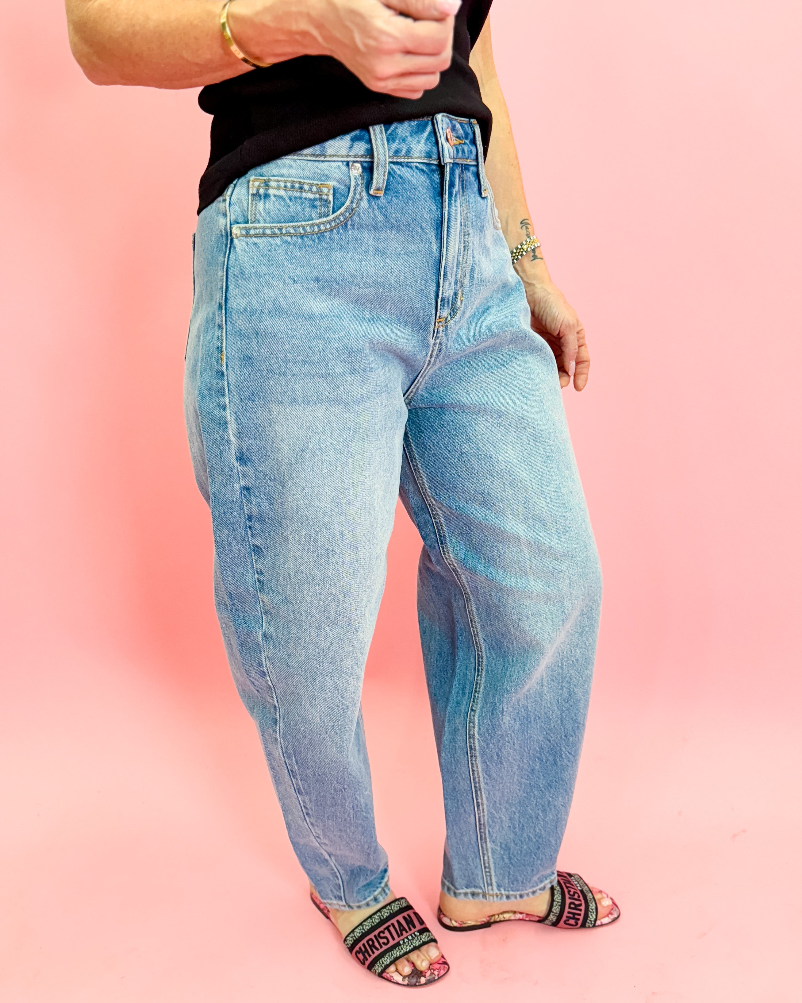HIGH RISE BALLON FIT JEANS IN MEDIUM VINTAGE Leg Opening: 13 1/4" Front Rise: 12 1/2" Inseam: 26"