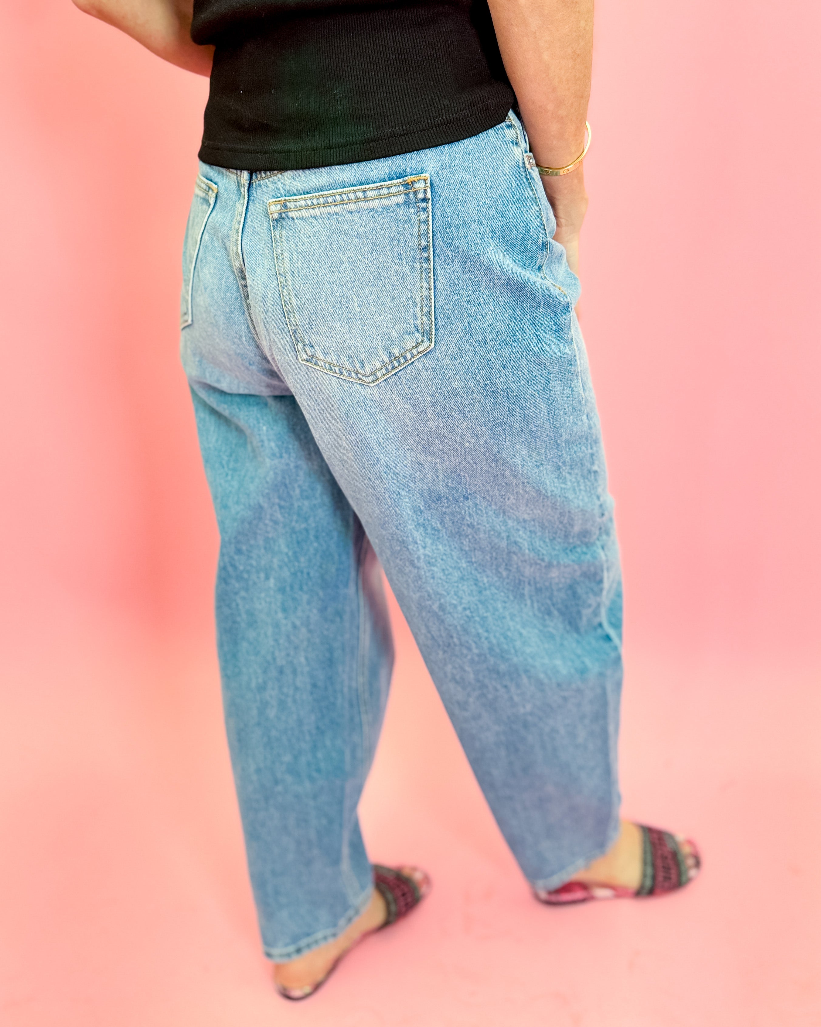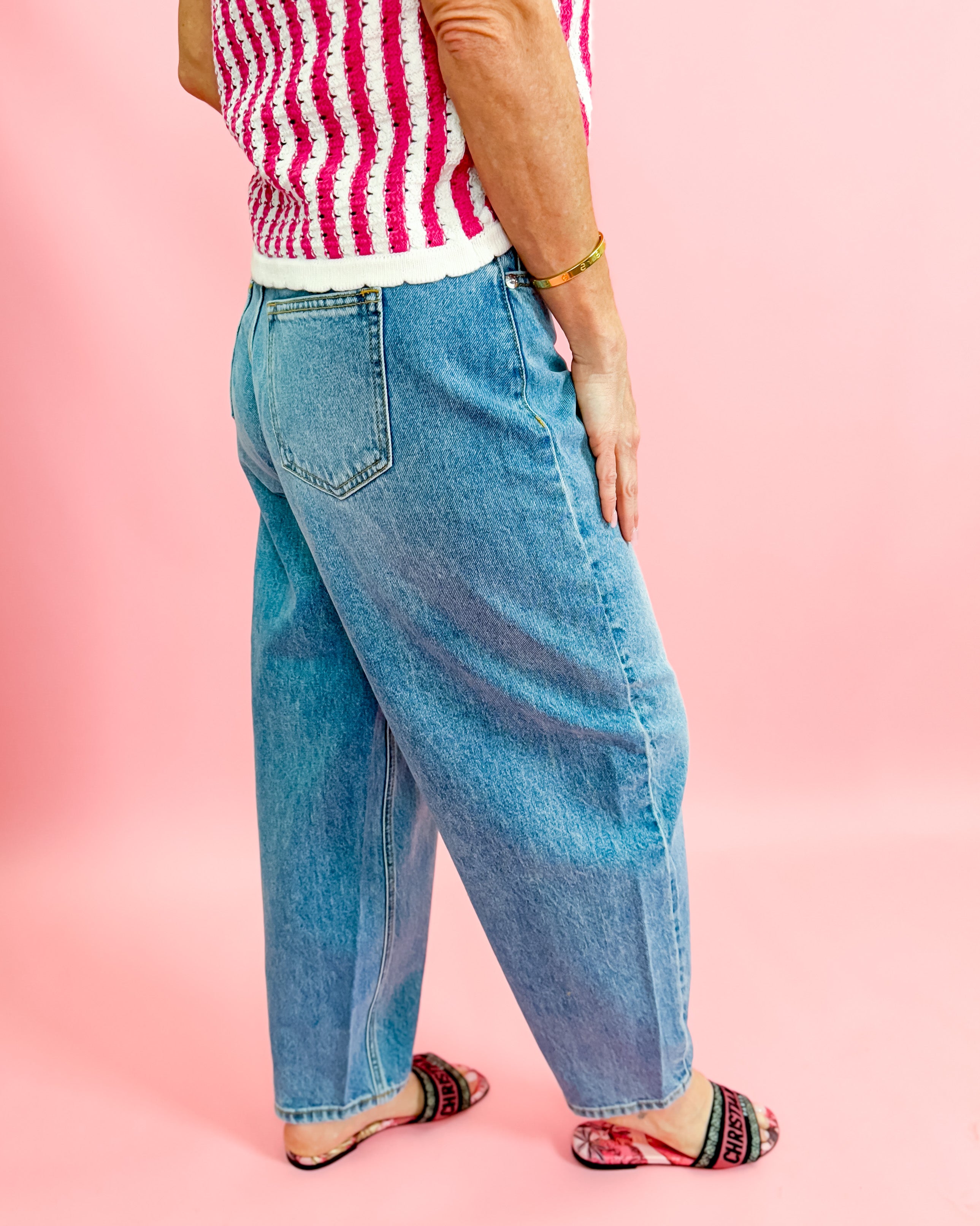 Introducing our High Rise Barrel Medium Vintage Jeans – a timeless blend of style and comfort. These jeans feature a flattering high-rise fit and a medium vintage wash, offering a classic yet on-trend look. Embrace the versatility of these jeans, perfect for pairing with your favorite tops and creating effortlessly chic ensembles. Elevate your denim collection with this stylish and comfortable wardrobe staple.