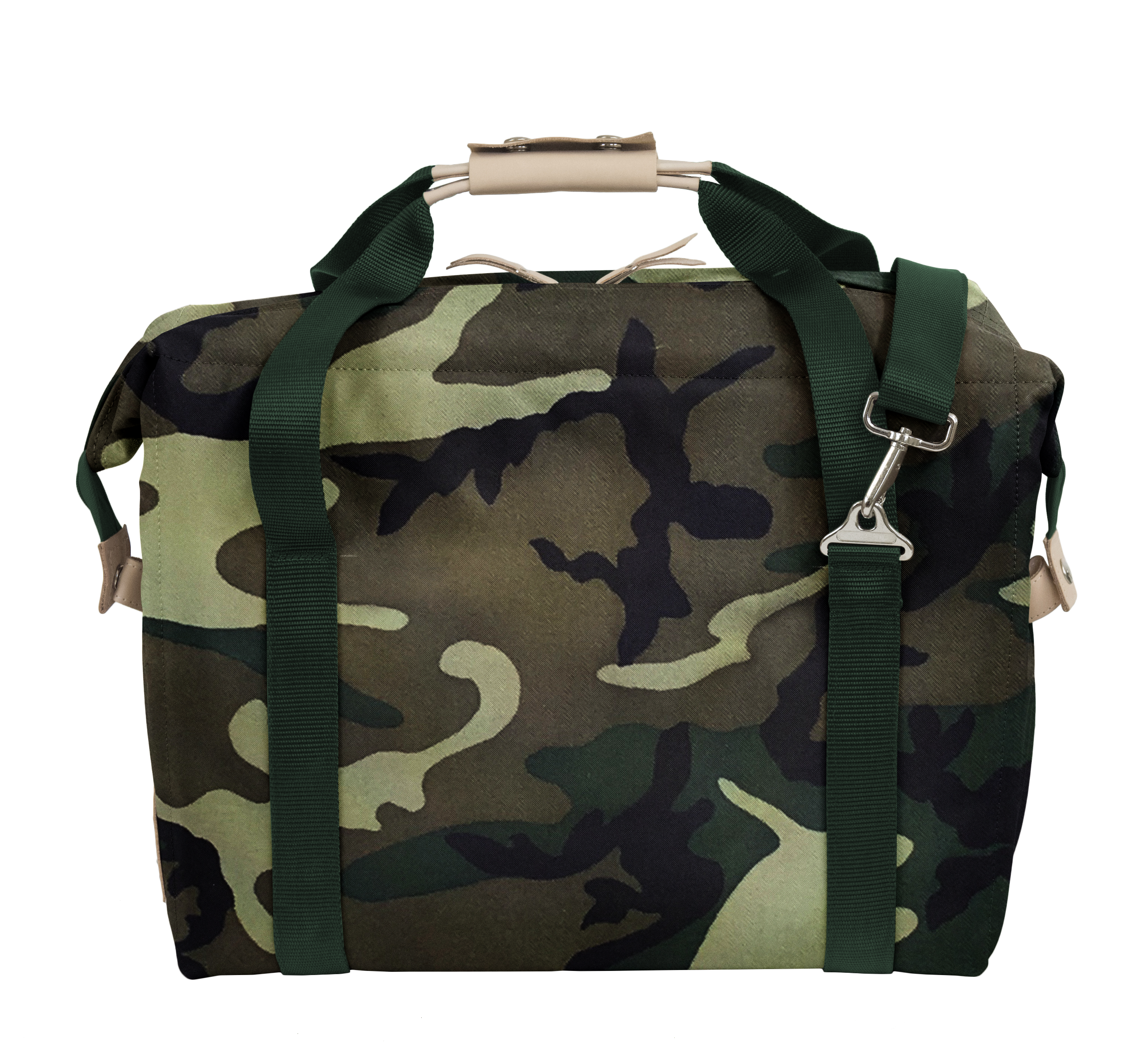 - Webbing handles and a detachable shoulder strap with Natural Leather detail
