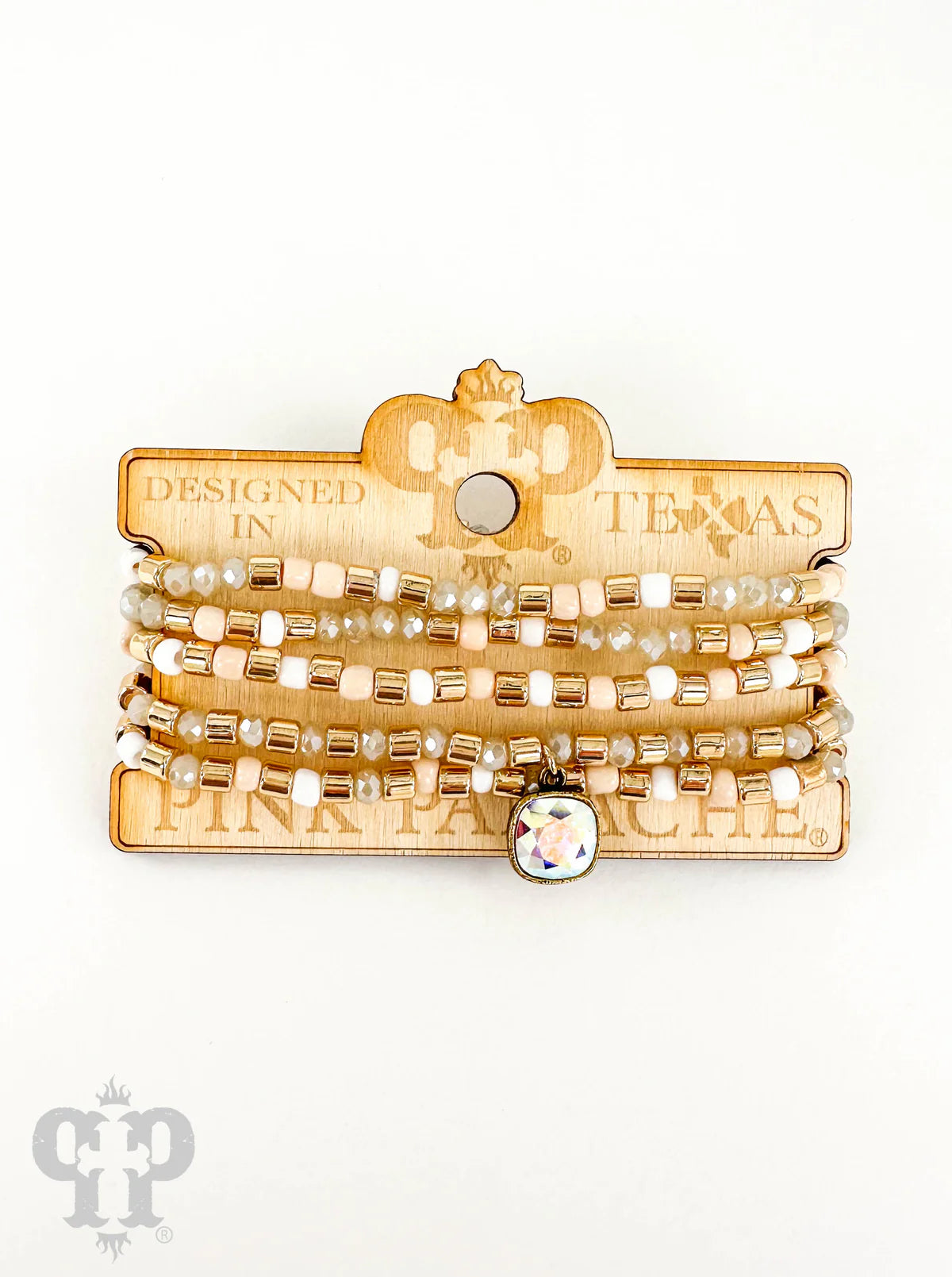 Light Pink Five Strand Bead Bracelet Stack