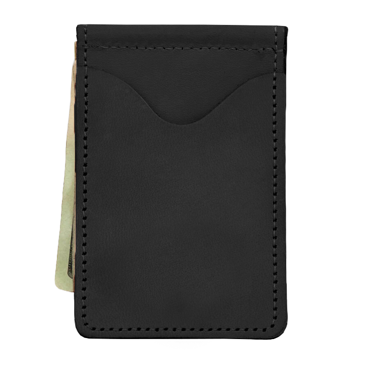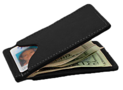 Our all leather money clip which securely holds all your bills and credit cards. Its sleek look makes it easy to carry in your pocket or in a purse.
