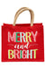 Spread holiday cheer and replace your average gift bag with a reusable gift tote made of woven jute. This tote features fun, colorful "Merry & Bright" script on front.