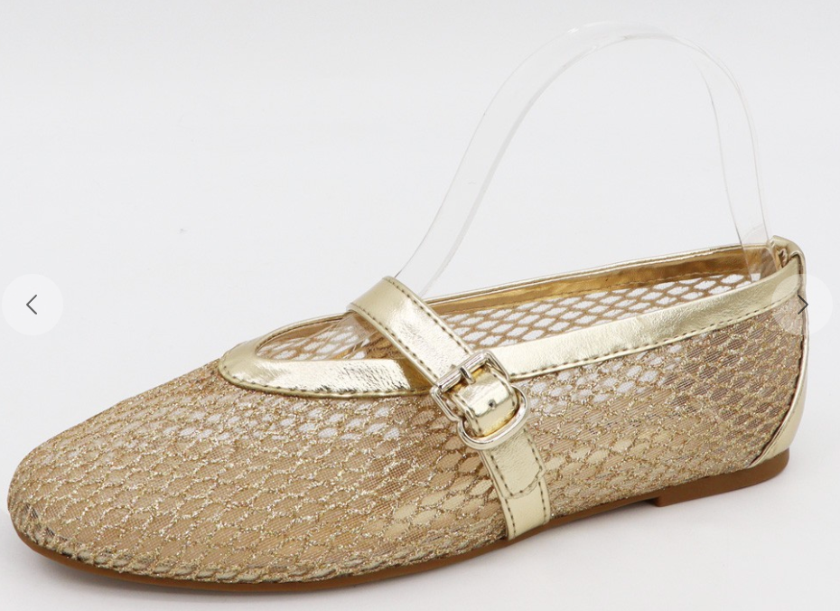 Step into style with our Mesh Mary Jane in Gold! These gorgeous shoes feature a unique mesh design that adds a touch of elegance to any outfit. With a comfortable Mary Jane strap and a beautiful gold color, you'll be walking in fashion and comfort all day long. Elevate your wardrobe with these must-have shoes!