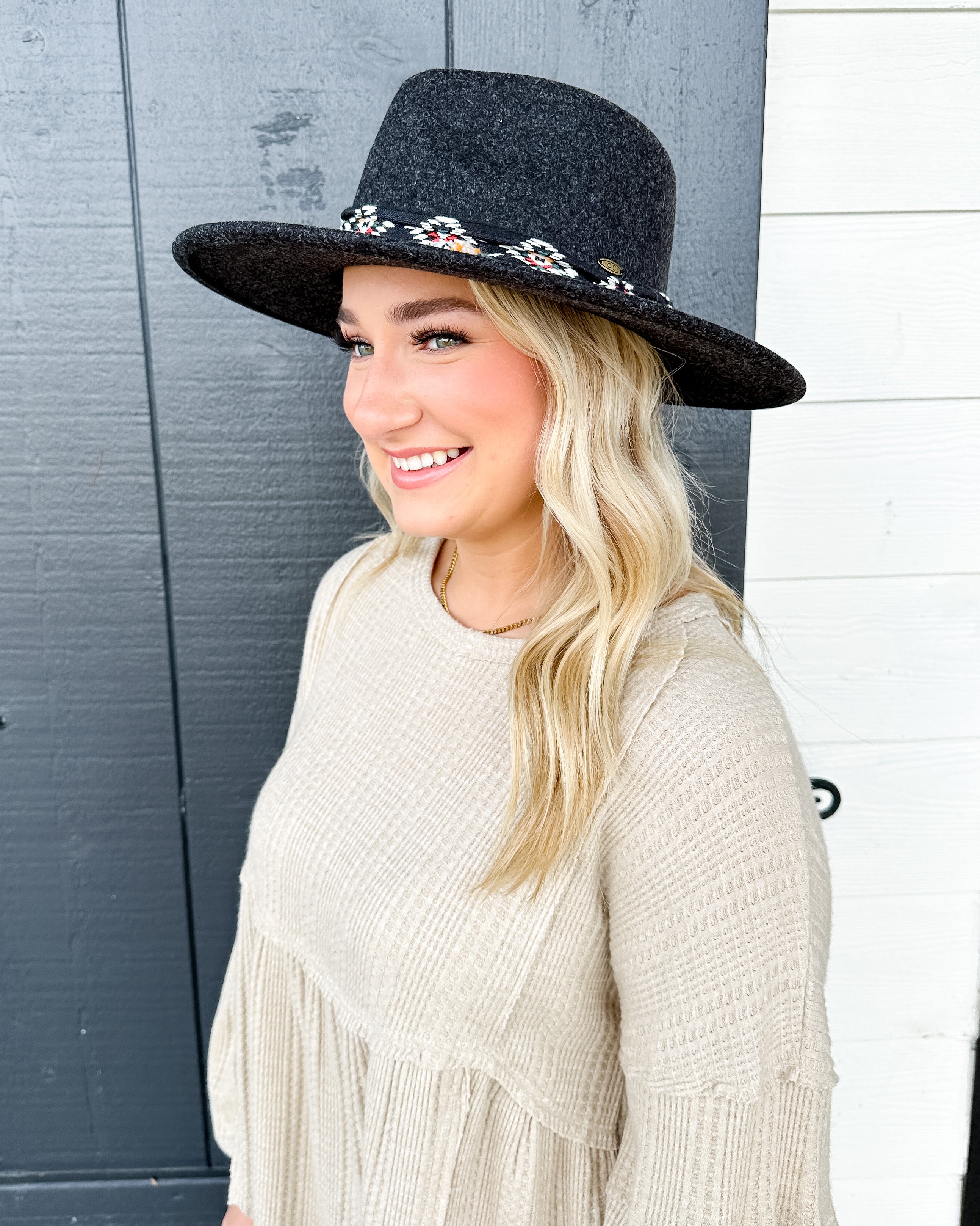 With its classic Panama brim design, this hat provides excellent sun protection while adding a touch of sophistication to any outfit. The Aztec Trim Band adds a unique and trendy twist to the timeless style, making it a standout accessory.