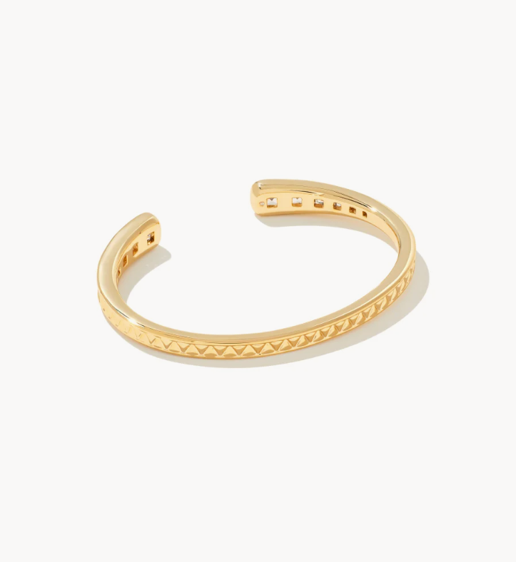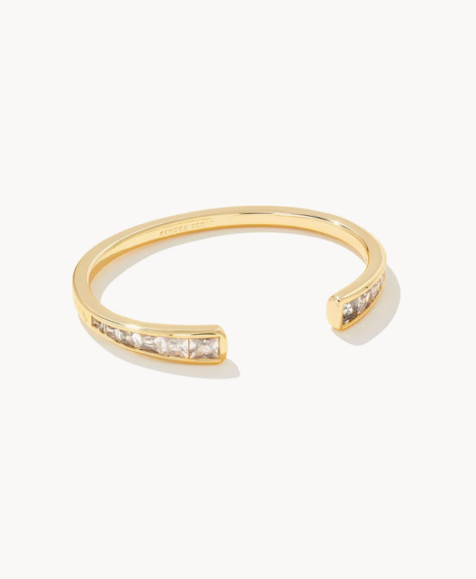 The Parker Gold Cuff Bracelet in White Crystal brings the “party” to your arm party. Sophisticated shine and an adjustable silhouette make this glamorous piece a jewelry box favorite.