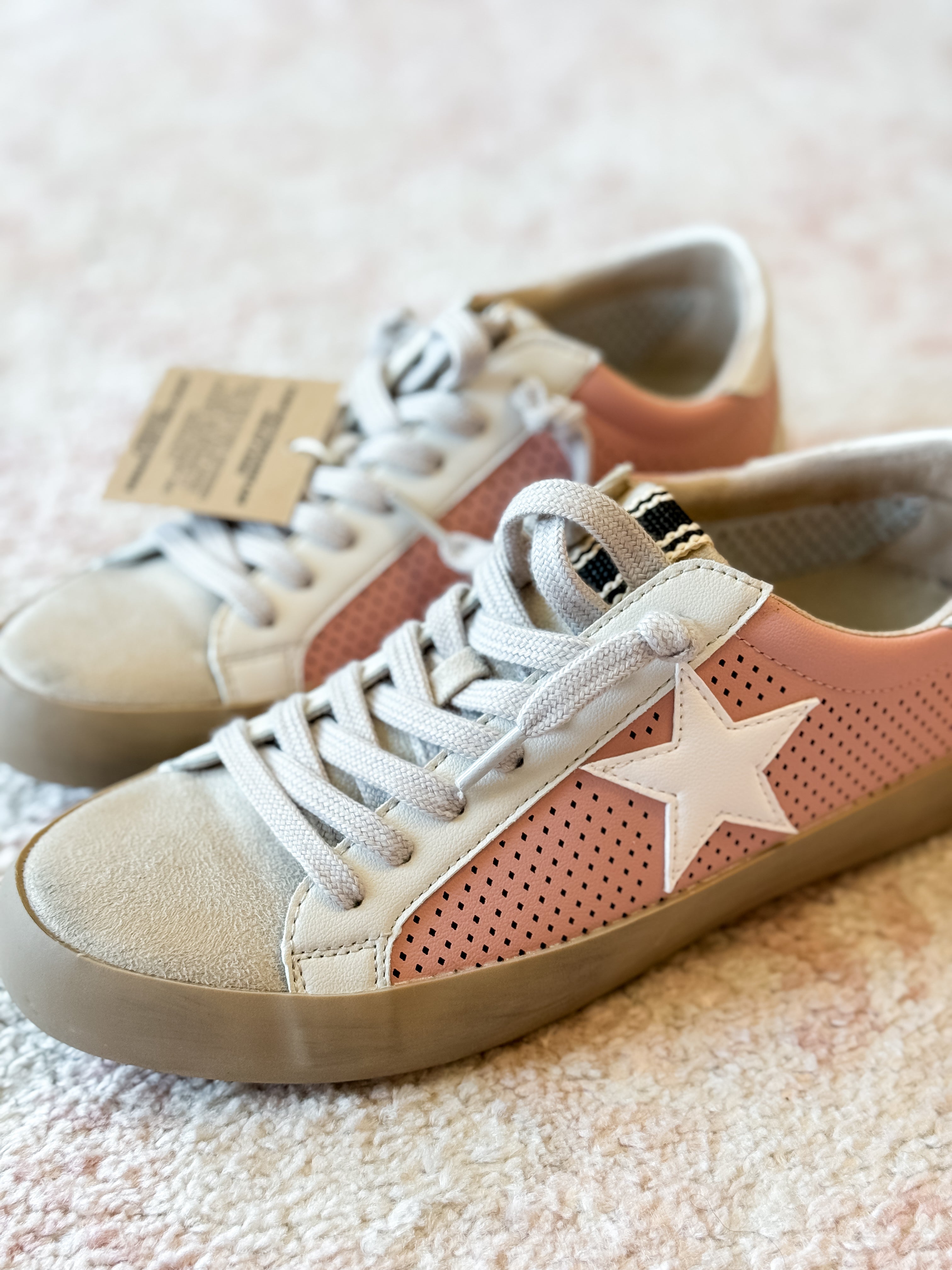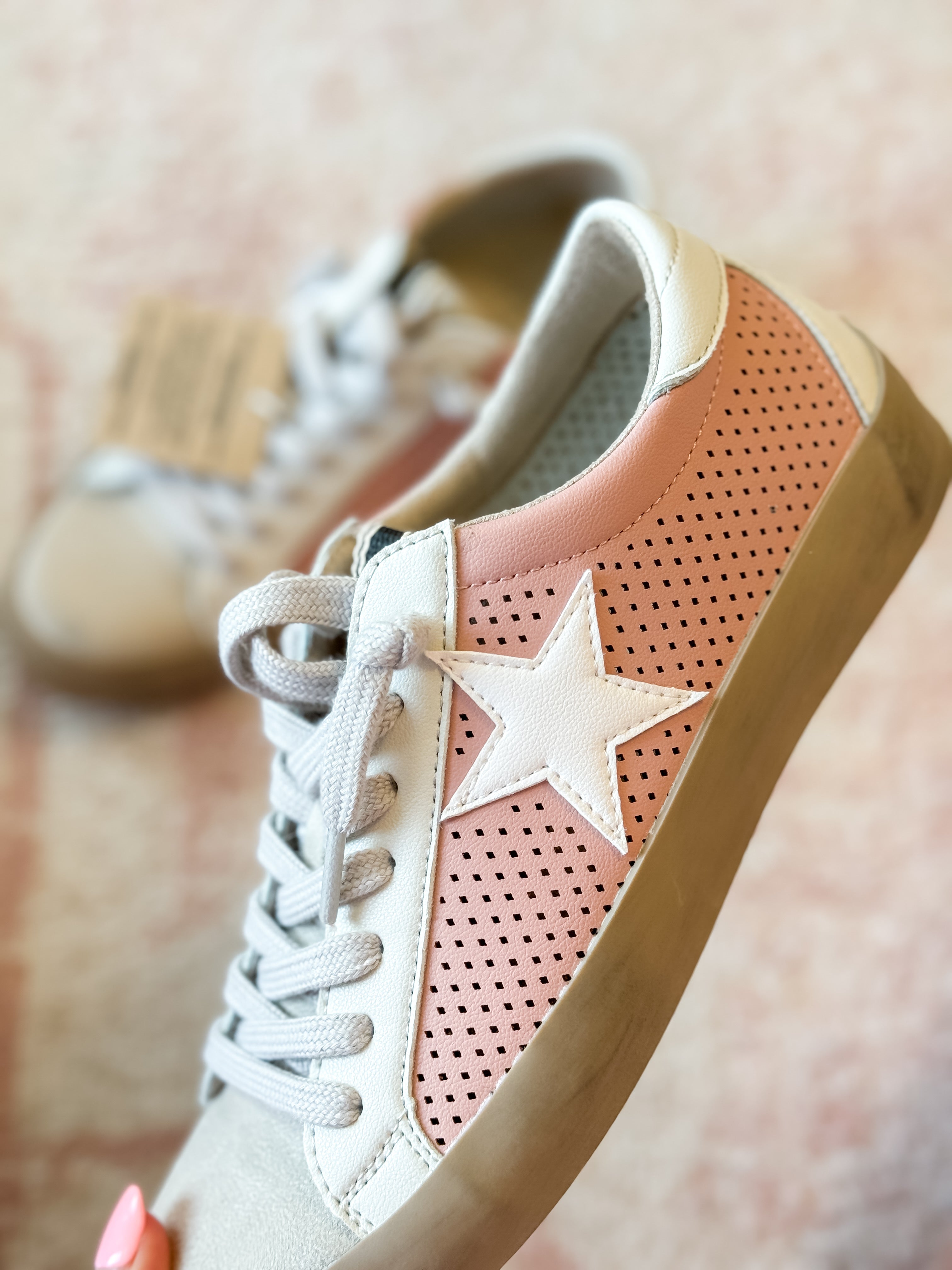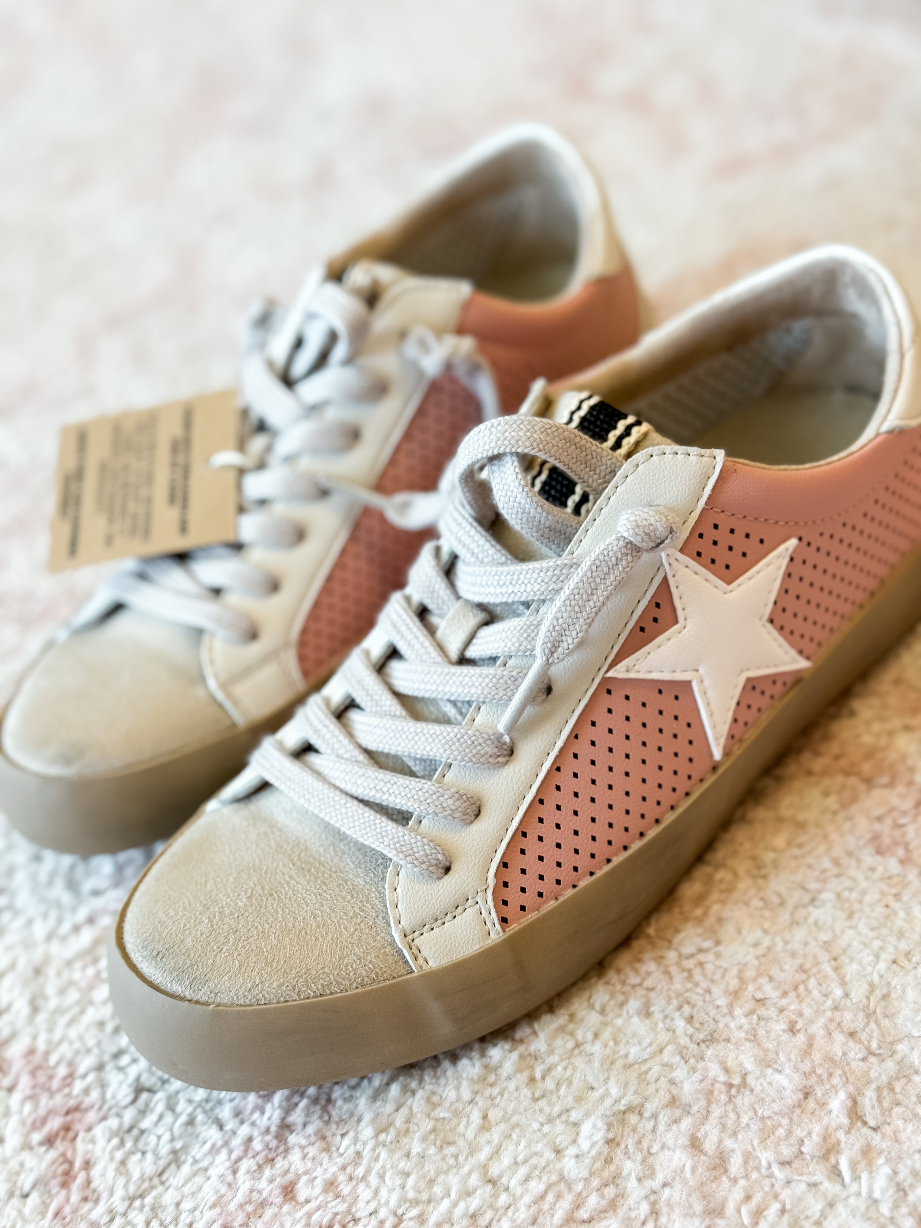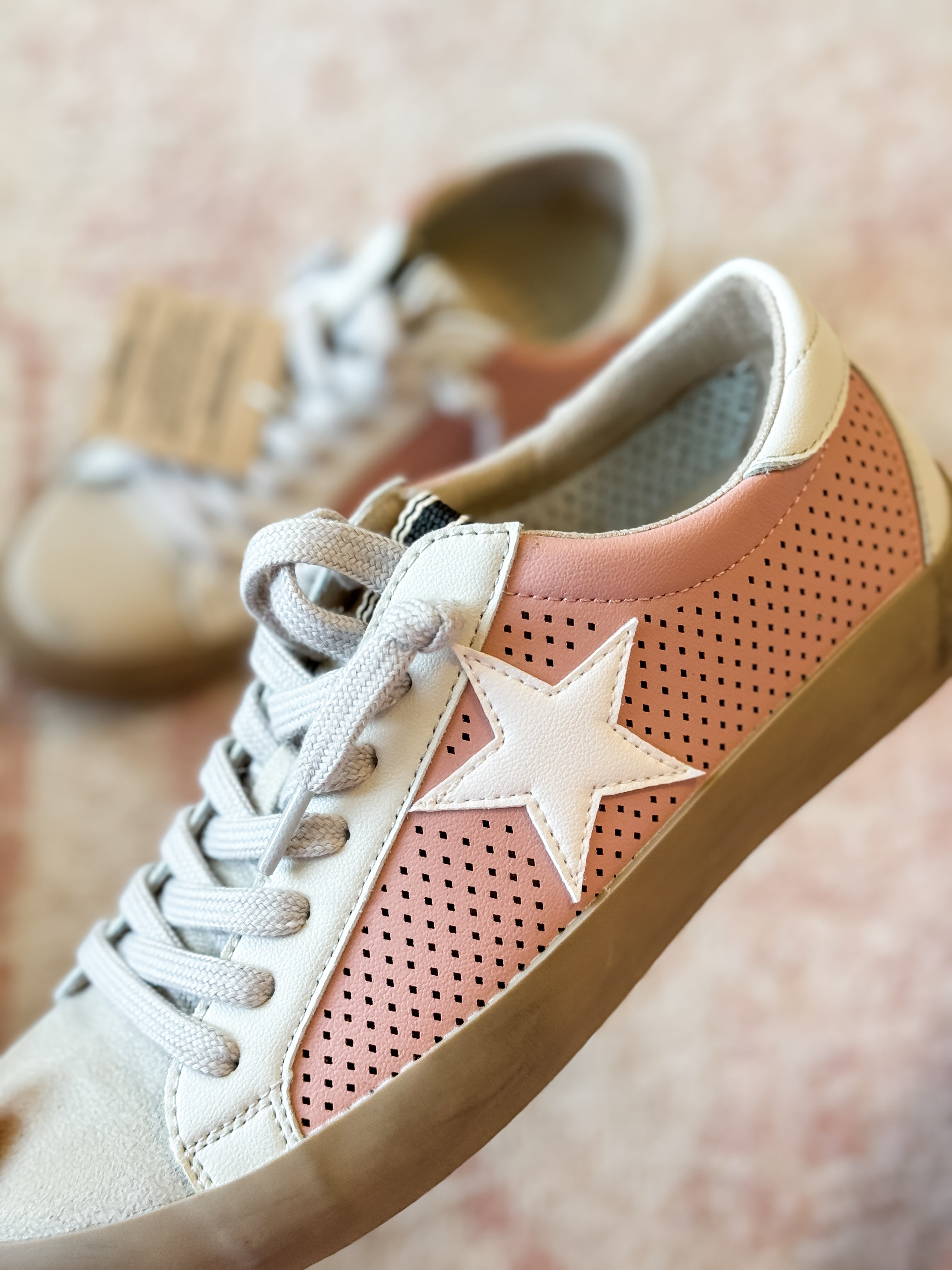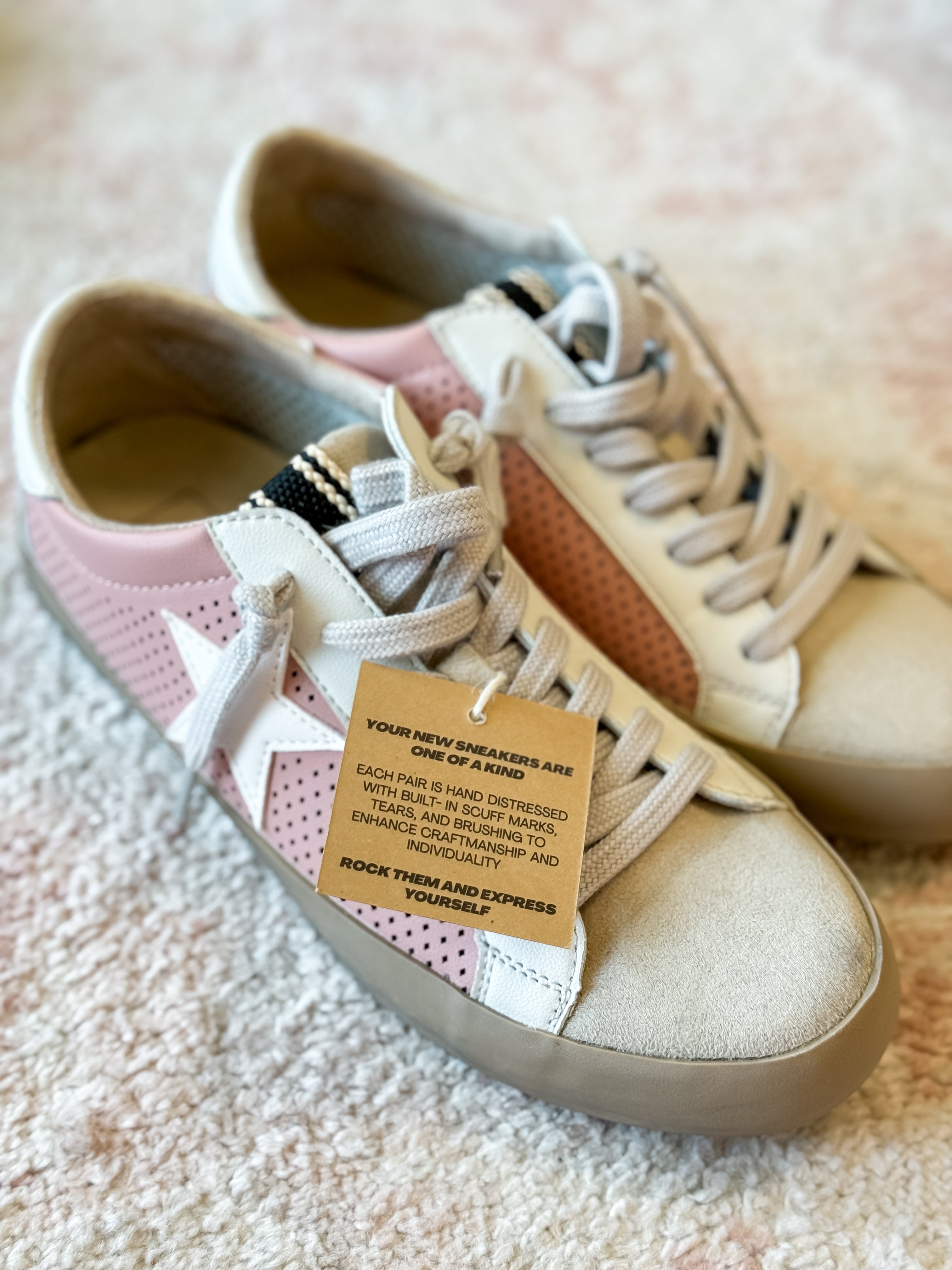 The PAULA sneaker is a perfect blend of vintage and modern styles that offers both comfort and durability. It features a round toe and a sturdy sole that ensures optimal comfort and longevity. It is available in multiple color combinations that can match any outfit. The design incorporates high-quality materials such as buttery faux leather and suede, making it both reliable and fashionable. The unique punctured paneled construction of this pair adds depth and texture to its overall look, making it stand out from other shoes.