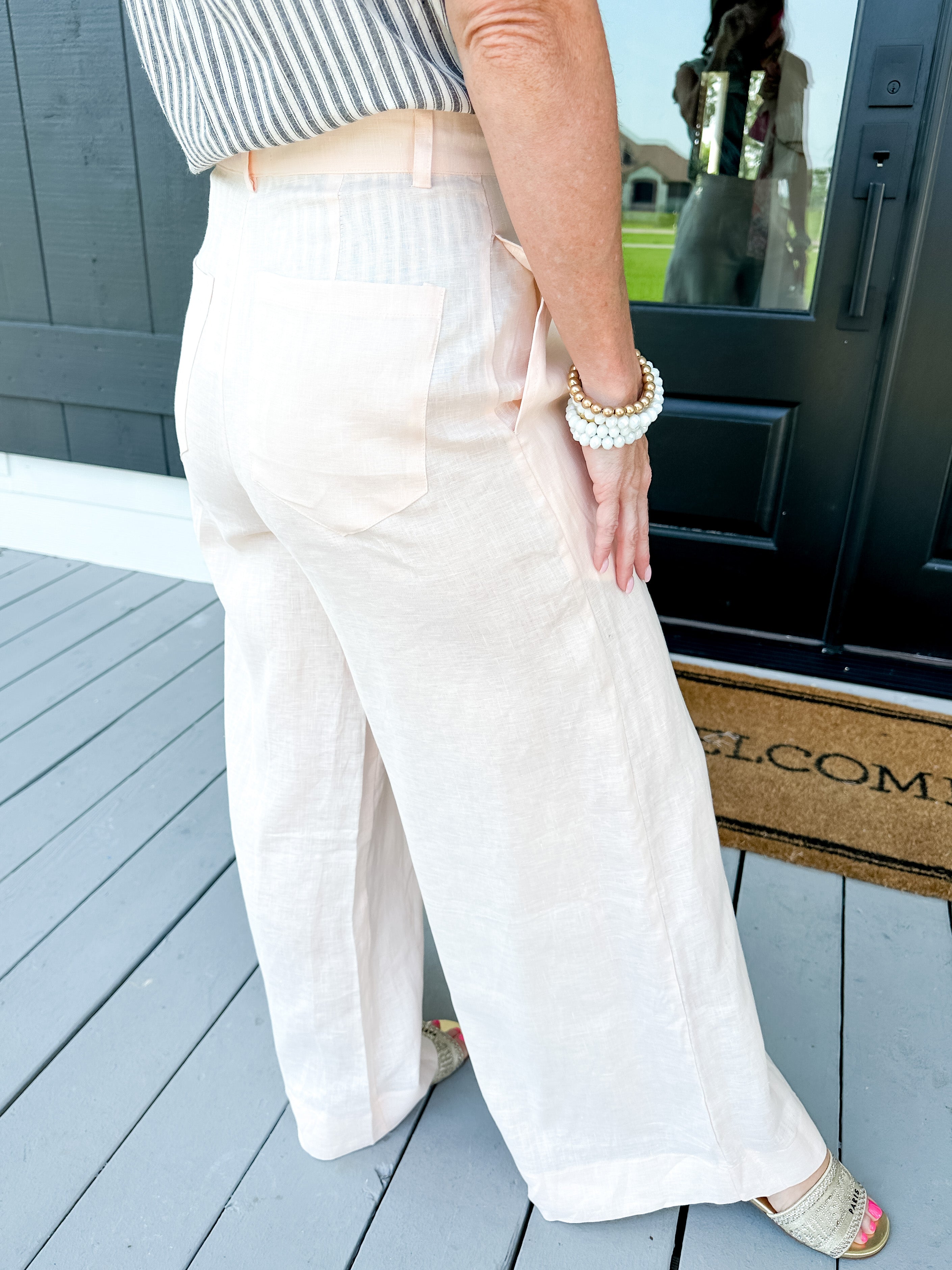 For an impactful ensemble, these lightweight linen-blend pants boast a high-waist silhouette and are finished with voluminous wide-legs and handy side pockets.