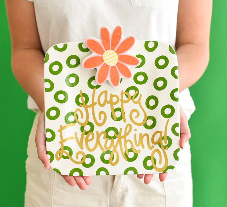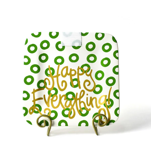 Stir up happy feelings with the vibrant color of our Peridot Happy Everything! Mini Square Platter. The bold green circles throughout a white background are cheerfully punctuated with our signature Happy Everything! You will love the bold colors and playful patterns this platter brings to your tablescape and happy home décor. Share this attachable Mini Platter with a friend or add it to your own collection as a stylish base for all your Mini Attachments.