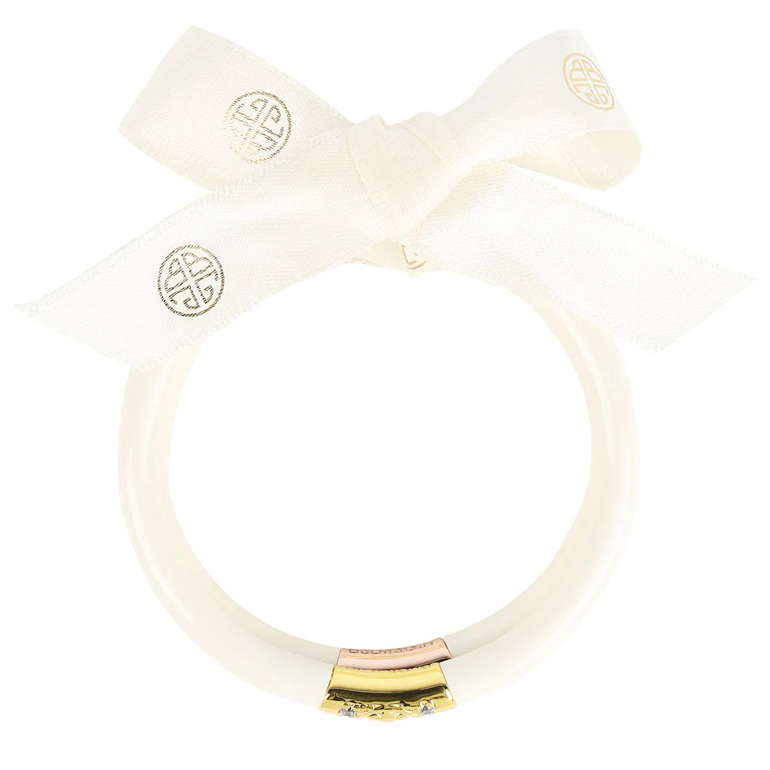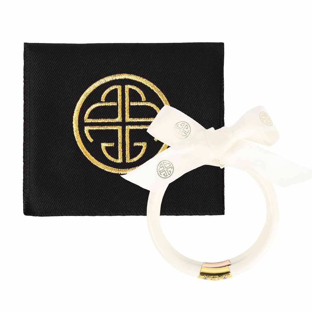 BuDhaGirl’s Three Kings All Weather Bangles® (AWB®) - Ivory are beautiful orbs that hold all of our extraordinary qualities…they are weightless, soundless, waterproof, and TSA proof while being amazingly glamorous. Available in a set of 3 each Small, Medium and Large. Each set has our exclusive Lotus prayer bead in yellow gold, white gold, and rose gold…thus the name Three Kings, paying tribute to the three hues of gold.