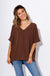 Breezy, effortless, and made for real life. This woven airflow V-neck top features a dolman short sleeve and a loose, oversized fit that’s all about comfort. Whether you're tackling errands or meeting friends for lunch, it pairs perfectly with denim for an easy, laid-back look. Lightweight and flowy with a lived-in feel—this is your new go-to grab-and-go top.