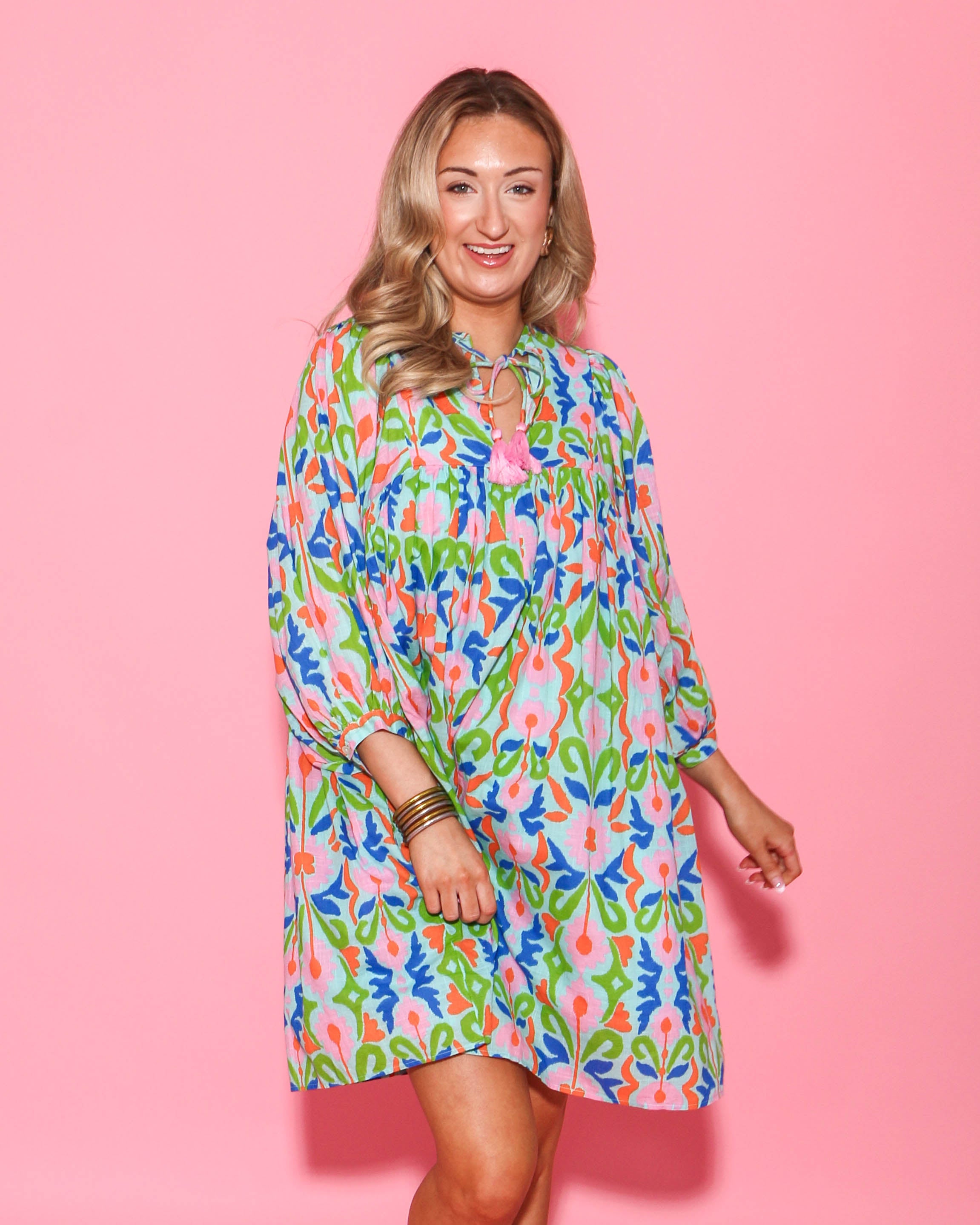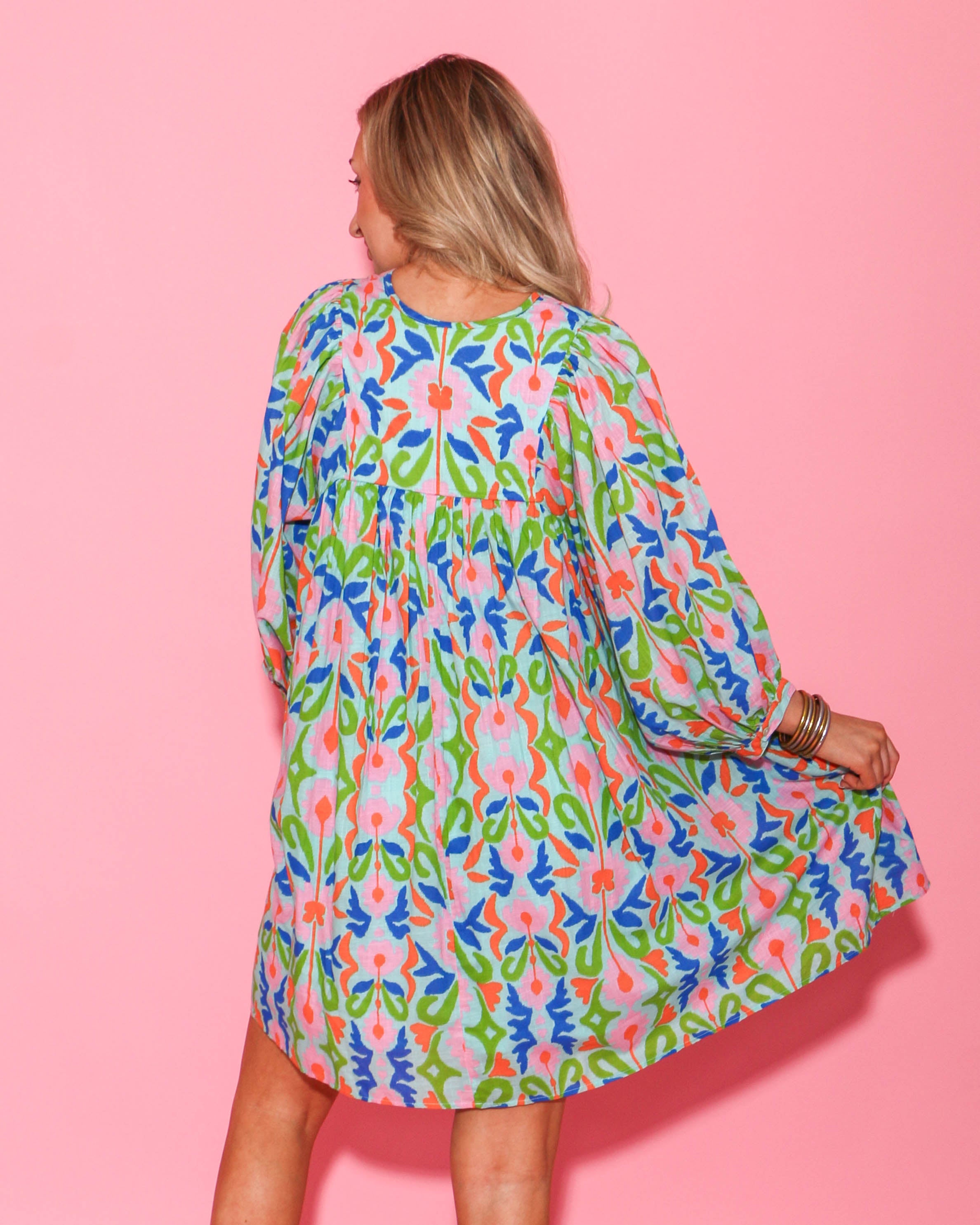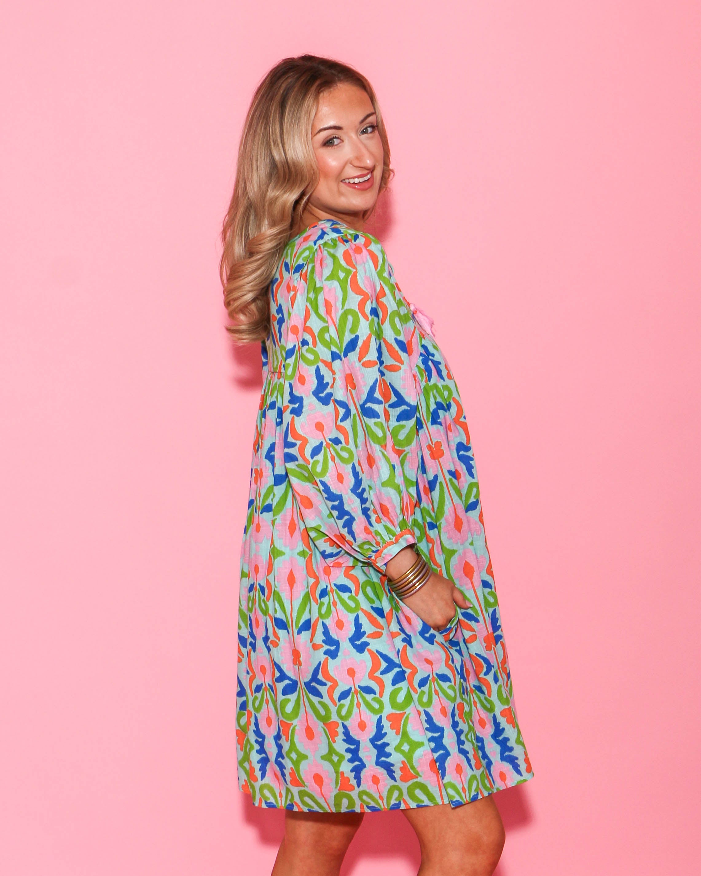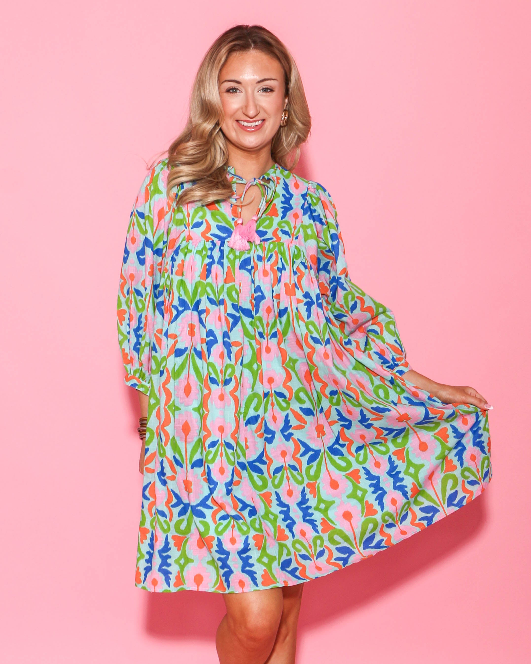 Experience a burst of refreshing colors with the Ivy Jane dress. Made for those who appreciate vibrant fashion, this dress is perfect for any occasion. Let the colors speak for themselves as you embrace your unique style. Add this dress to your wardrobe and feel confident and inspired every time you wear it!
