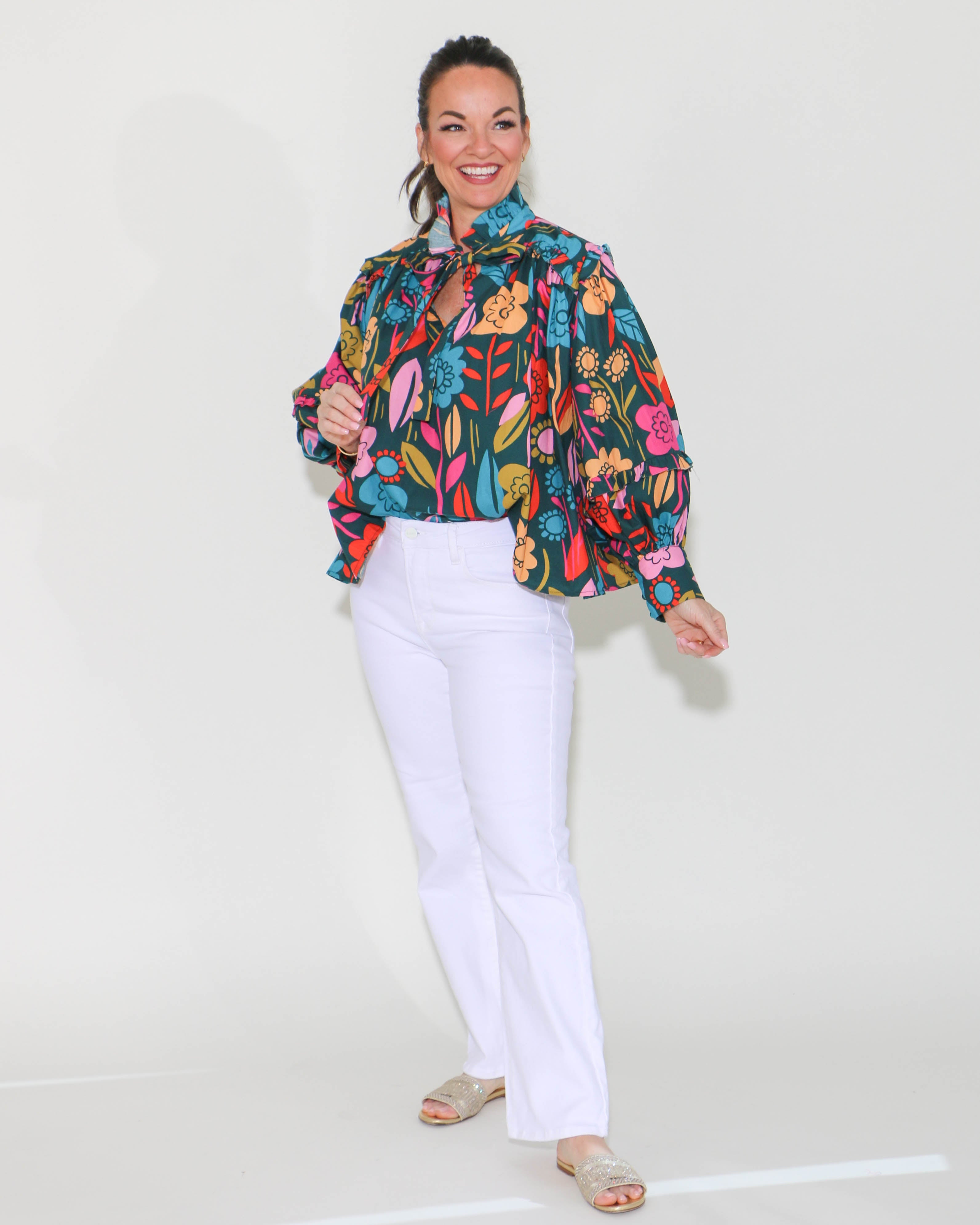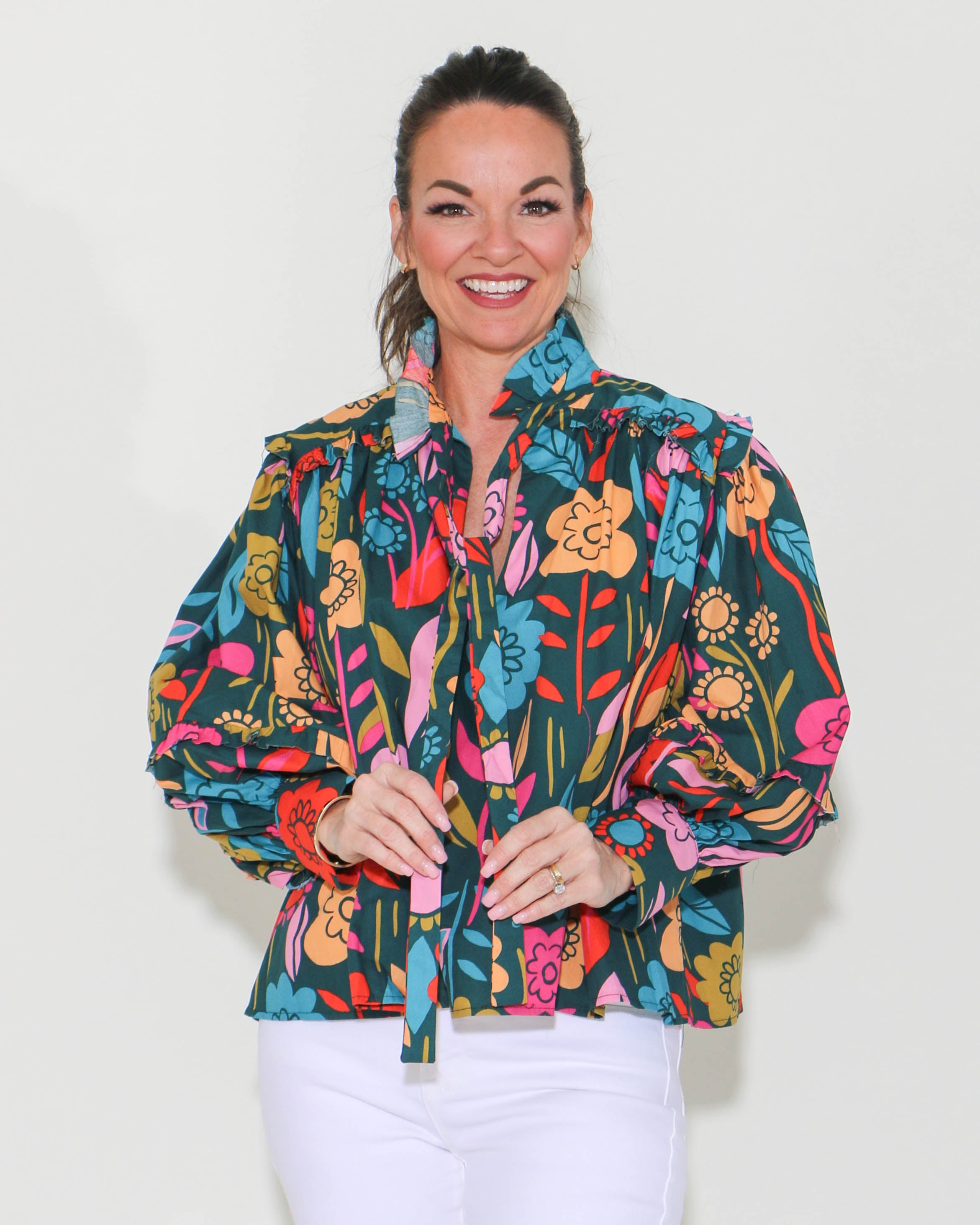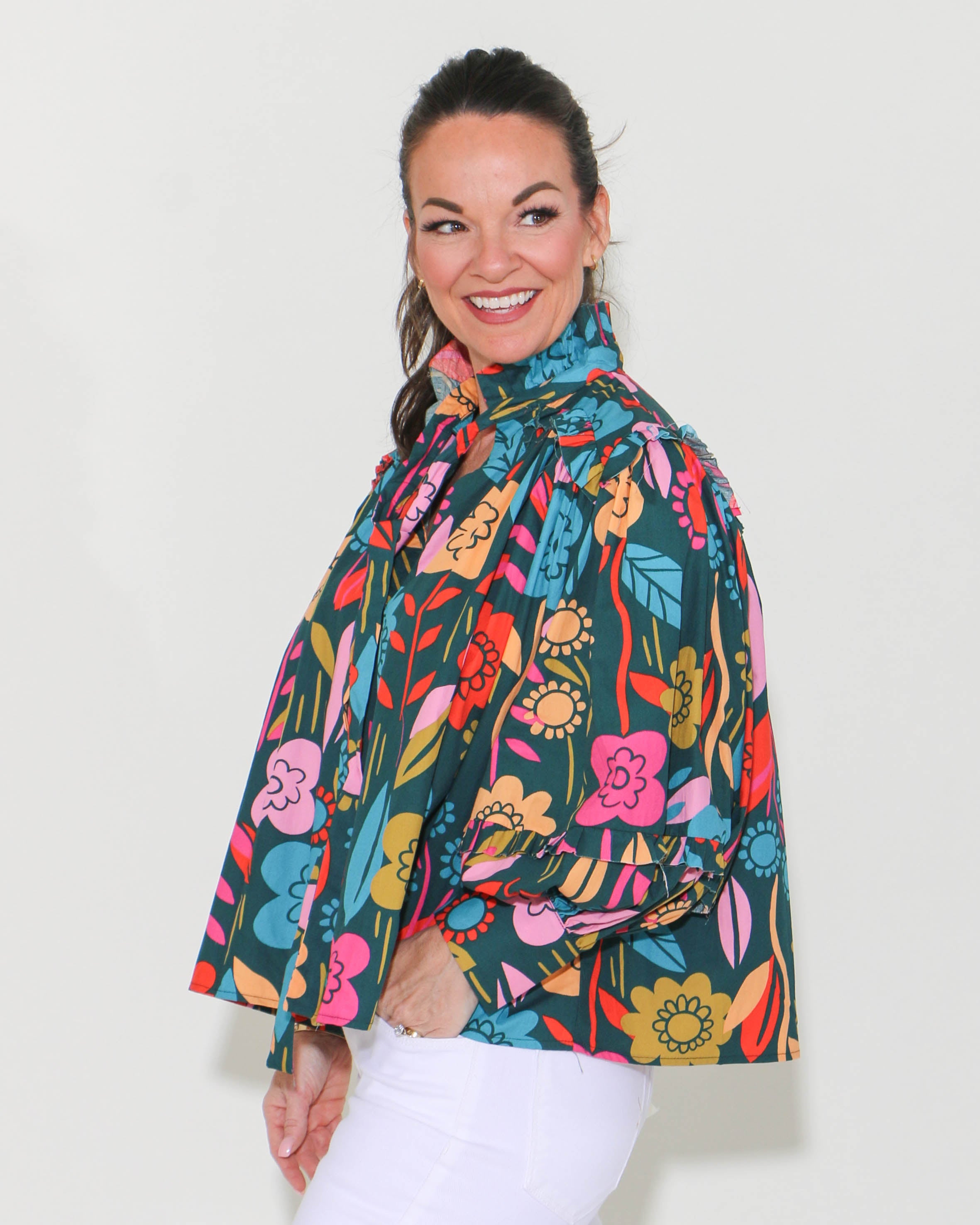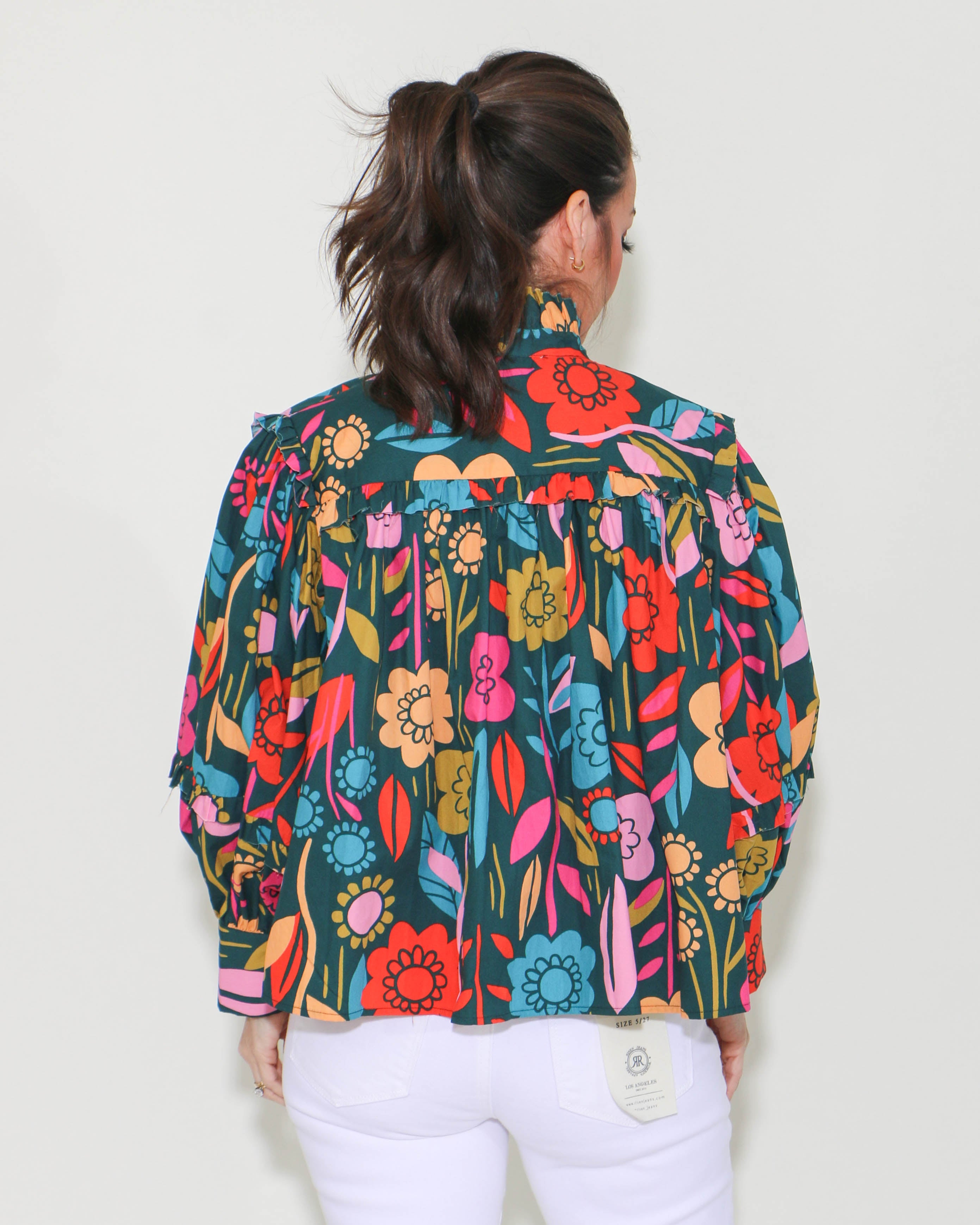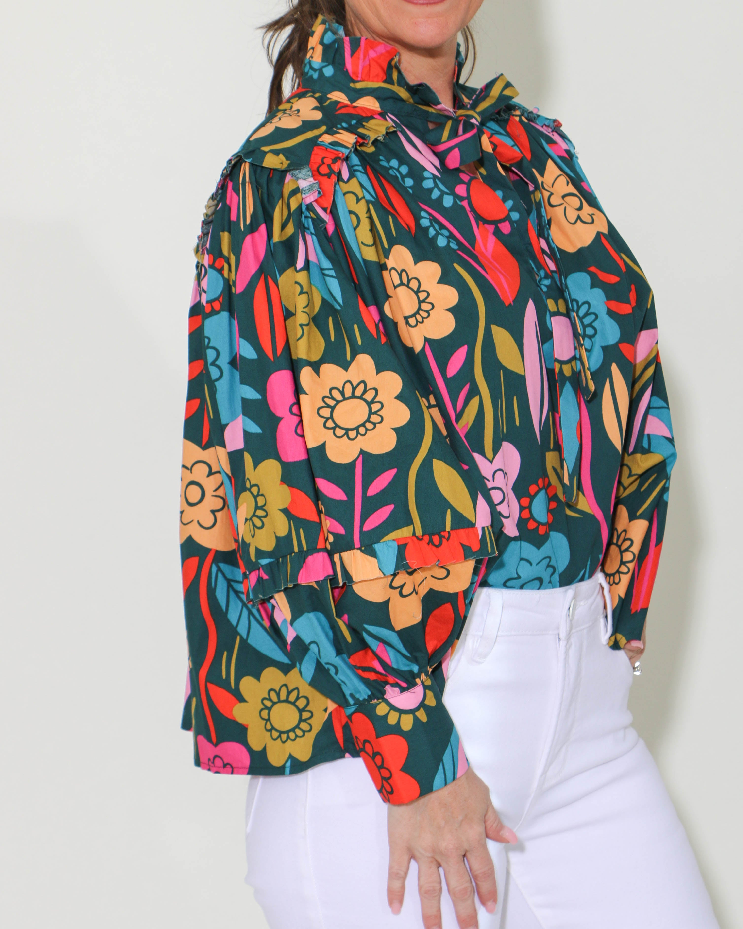 A "Retro Garden Ruffle V-neck Top" is a fashionable and charming garment with a vintage-inspired design. It likely features a v-neckline adorned with ruffle detailing, adding a feminine touch. The term "retro garden" suggests a floral or botanical print reminiscent of past eras, adding to the vintage aesthetic of the top. Overall, this top offers a nostalgic yet stylish look, perfect for adding flair to your outfit.