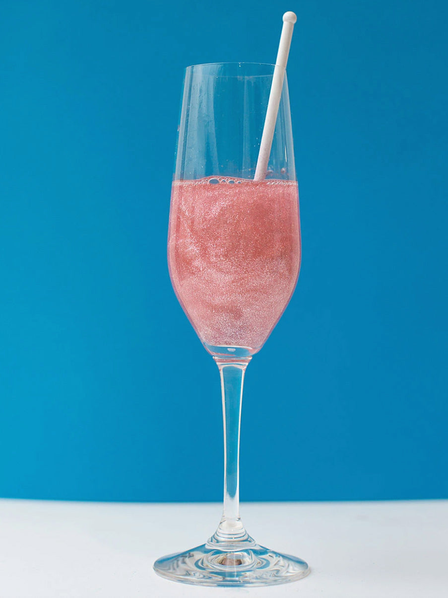 Our best selling shimmer pairs nicely with a glass of rosé, hot pink pumps and your best gal pals. But for real, we love adding this shimmer to any white wine or bubbly cocktail for an added element of fun!