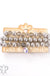 This bracelet has three strands of crystal and textured round beads. The charm is a 10mm Austrian crystal in a setting custom made for Pink Panache in the USA.