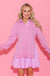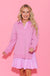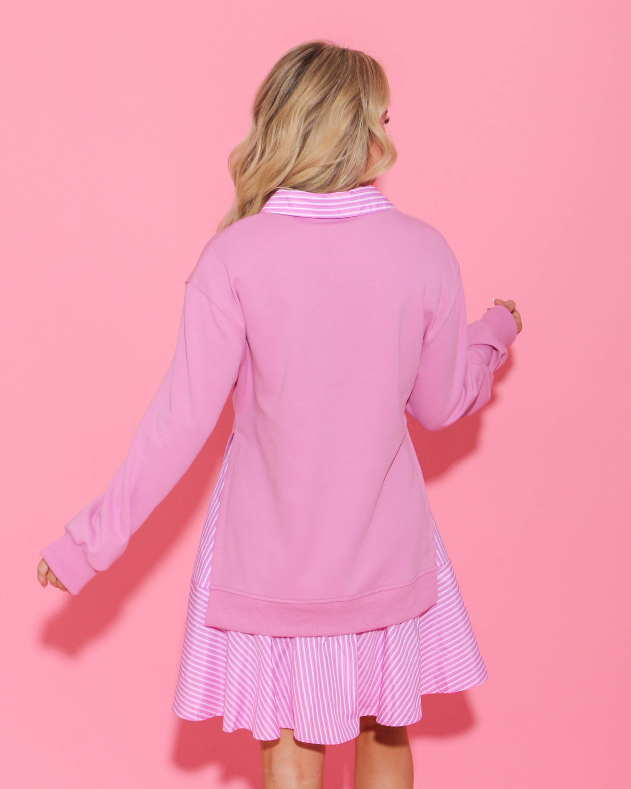 Solid Long Sleeve Twofer Mini Dress in Pink